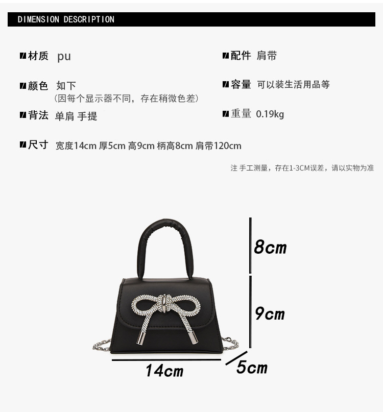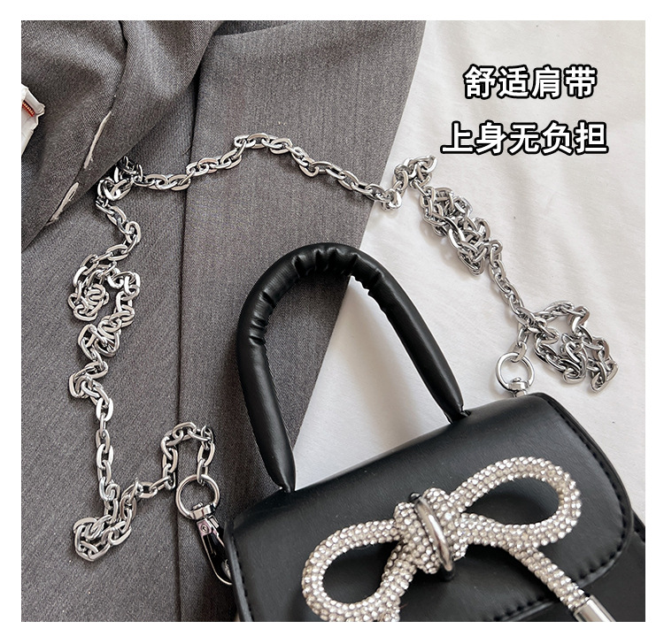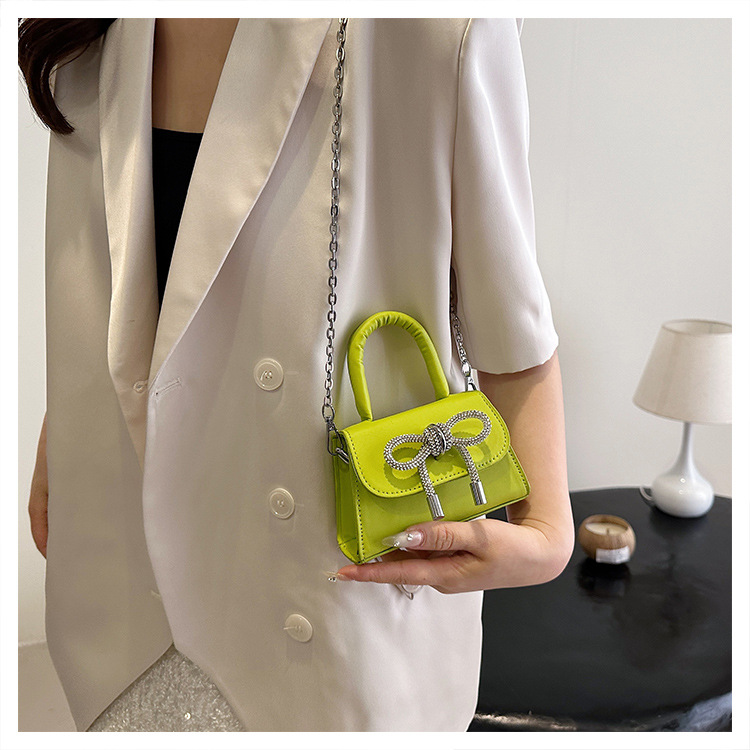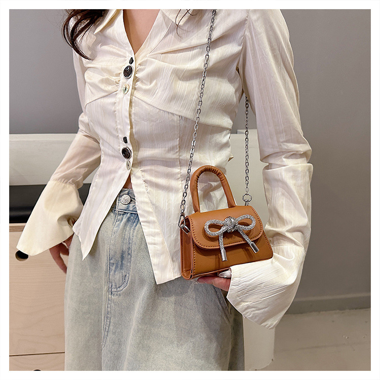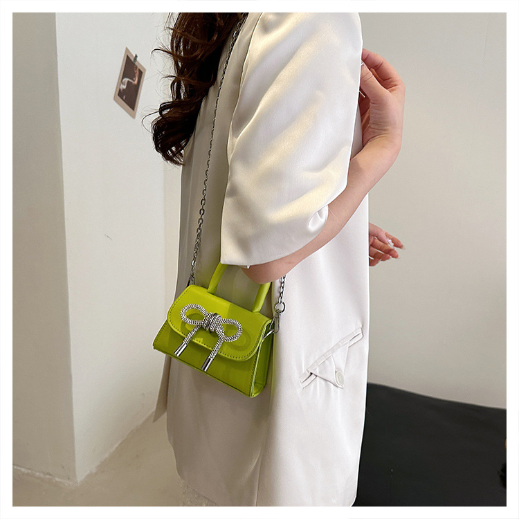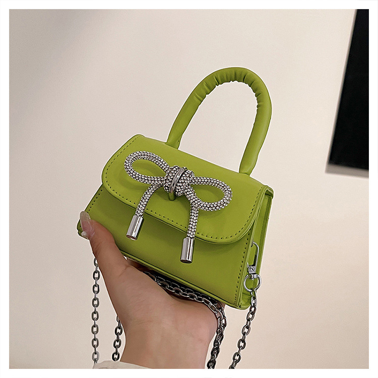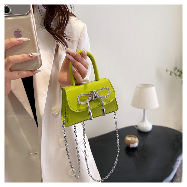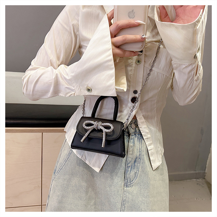 리본 장식 한국 스타일 세련된 작은 사각형 가방 여성용 2026 신상 미니 핸드백 심플 체인 숄더/크로스백스토어 가기