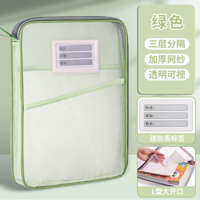 두꺼운 이중 나일론 메쉬 문서 가방 주제 분류 가방 학생 시험지 봉투 도서 보관 가방 주제 가방스토어 가기