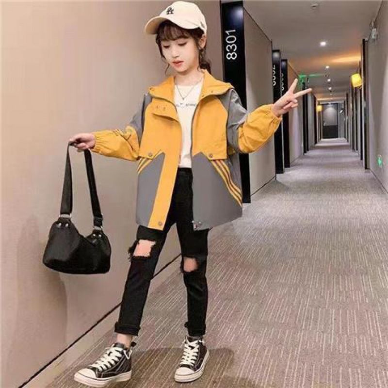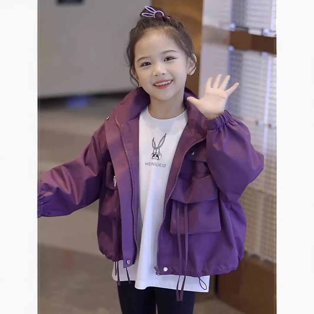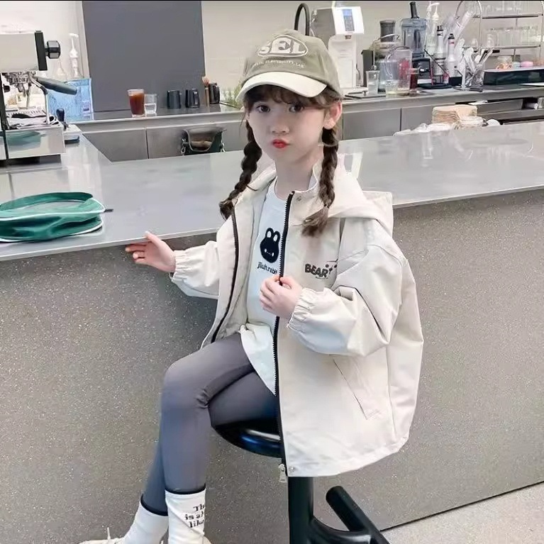 2024 새로운 봄 후드 탑 얇은 옷 소녀 코트 봄과 가을 루소 옷 소녀 어린이 봄 옷스토어 가기
