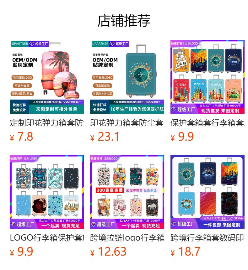 국경 간 디지털 인쇄 수하물 케이스 보호 커버 두꺼운 공기 층 맞춤형 여행 트롤리 케이스 커버 SML 탄성 커버스토어 가기