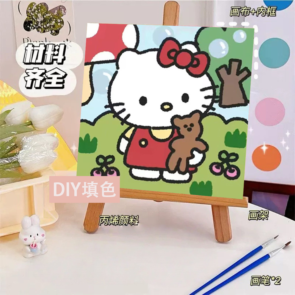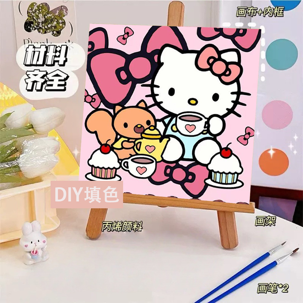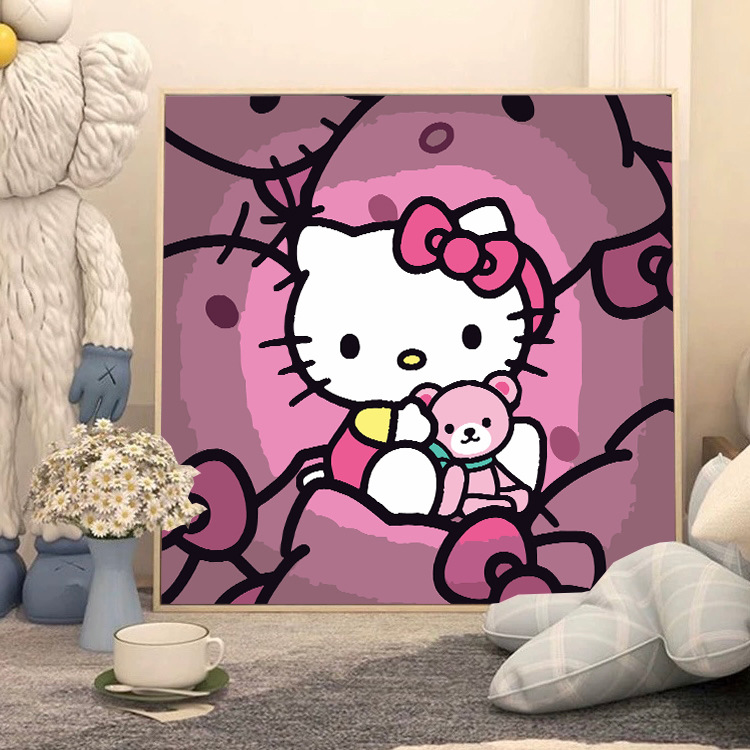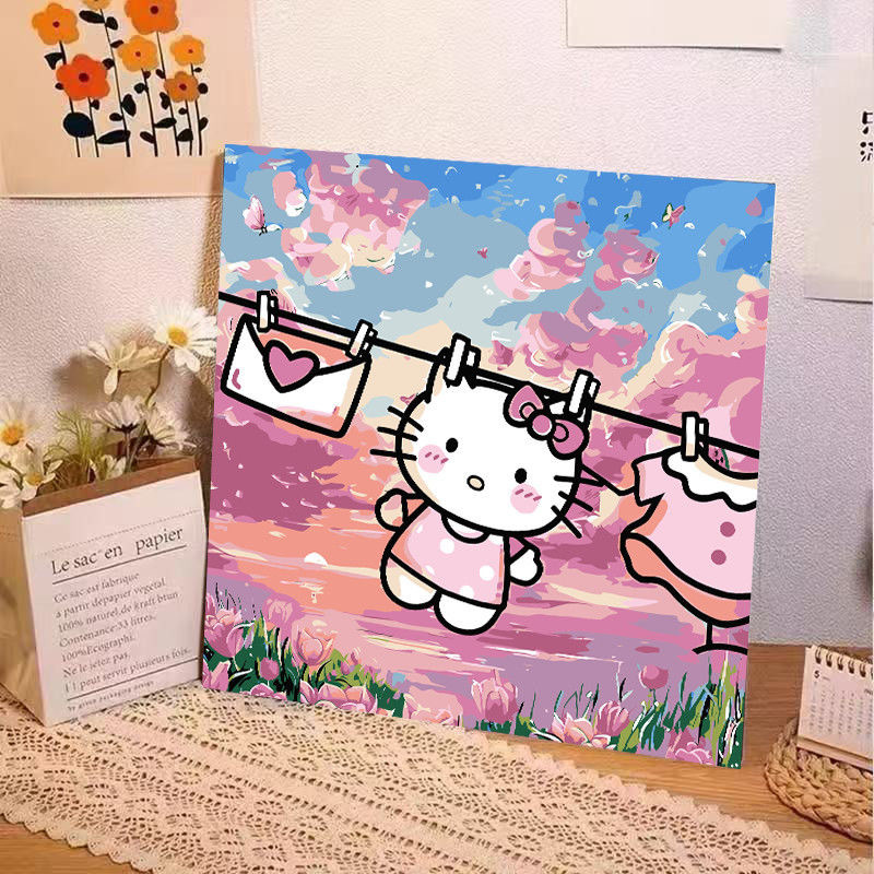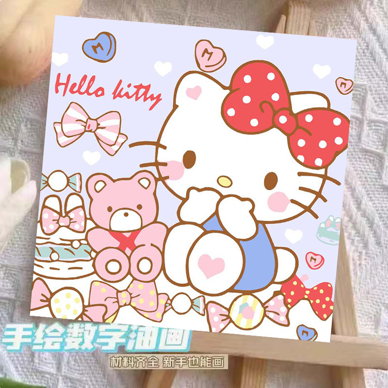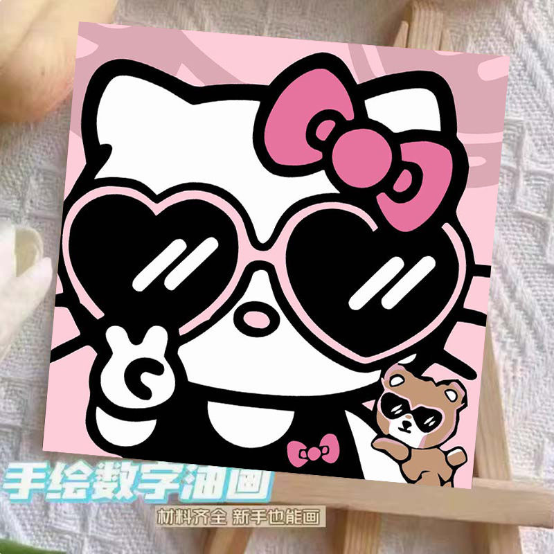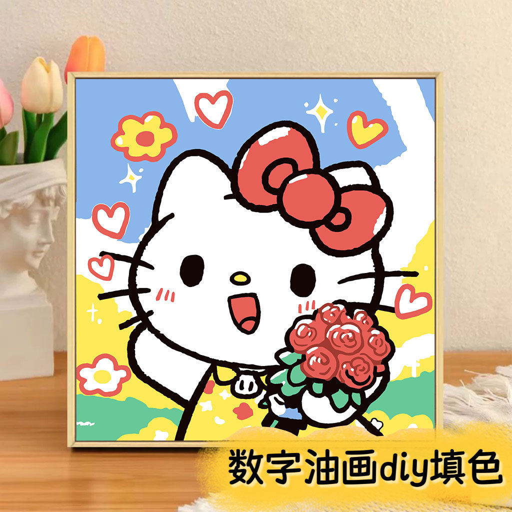 헬로 키티 디지털 유화 diy 손으로 채워진 색상 어린이 간단한 낙서 야시장 마구간 유화 제조 업체 도매