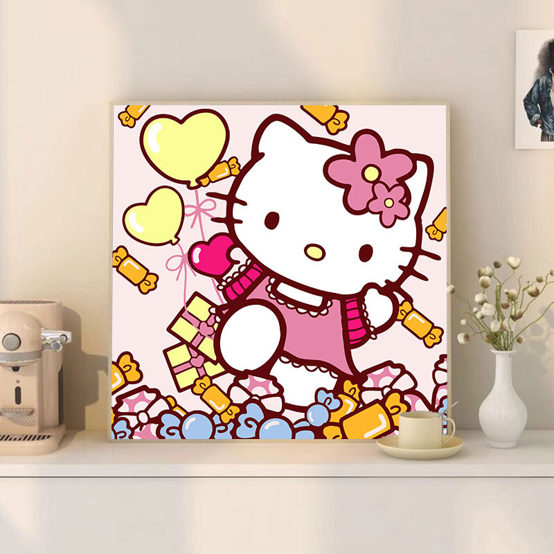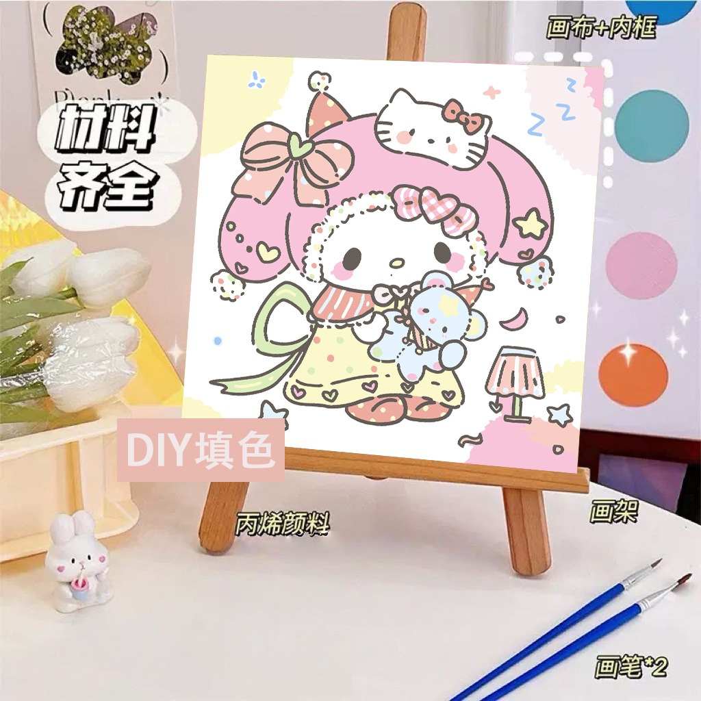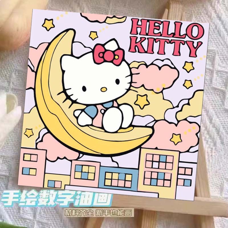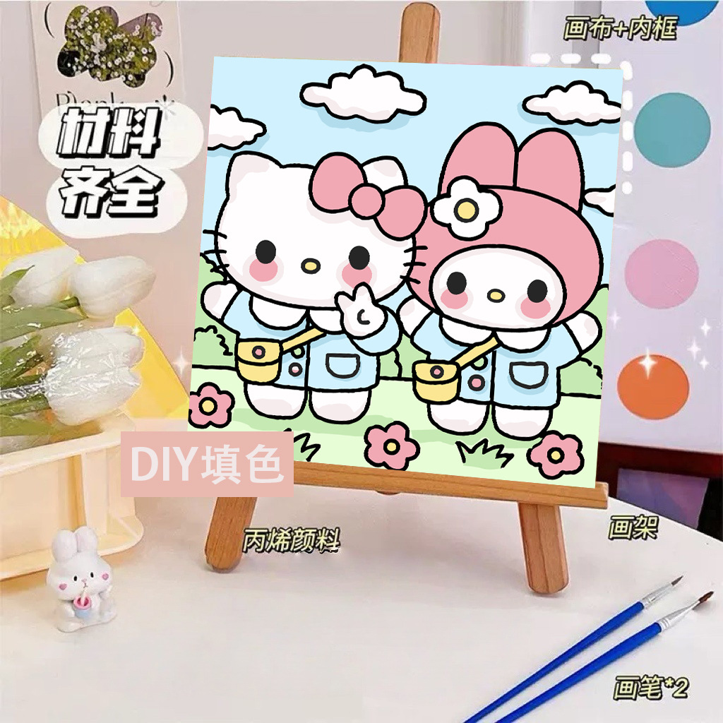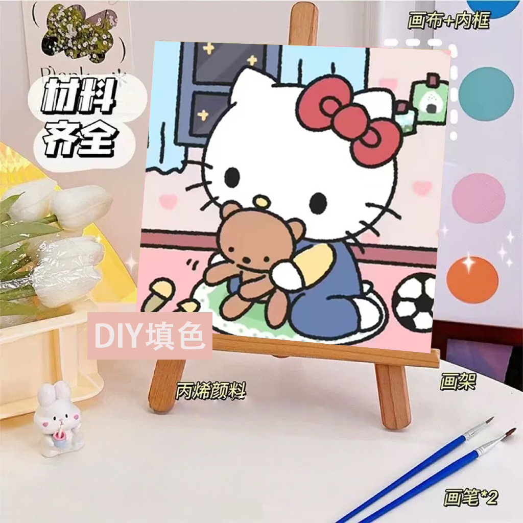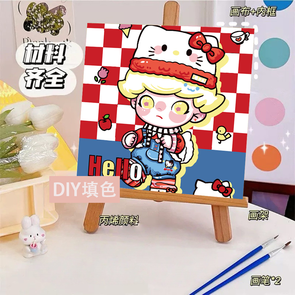 헬로 키티 디지털 유화 diy 손으로 채워진 색상 어린이 간단한 낙서 야시장 마구간 유화 제조 업체 도매