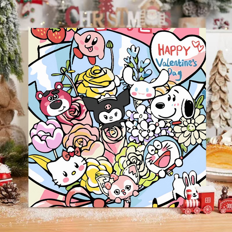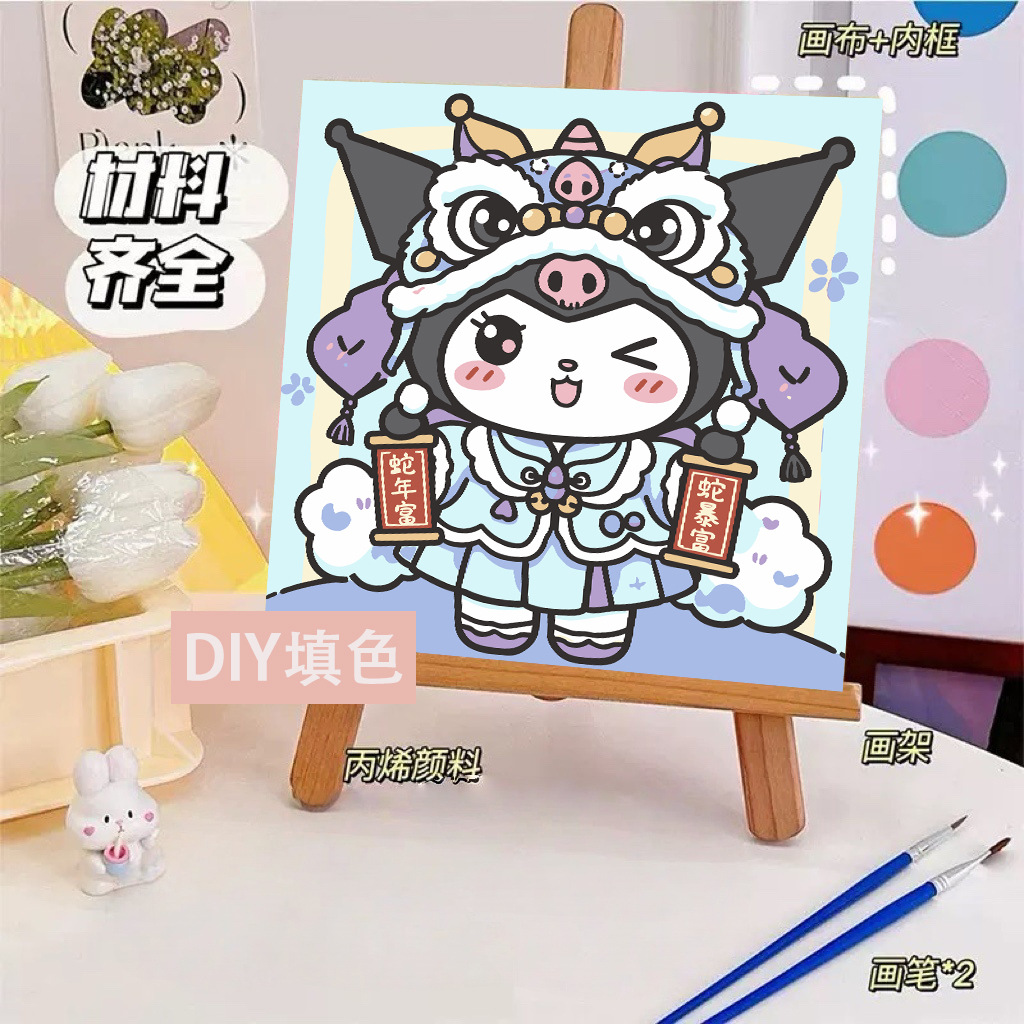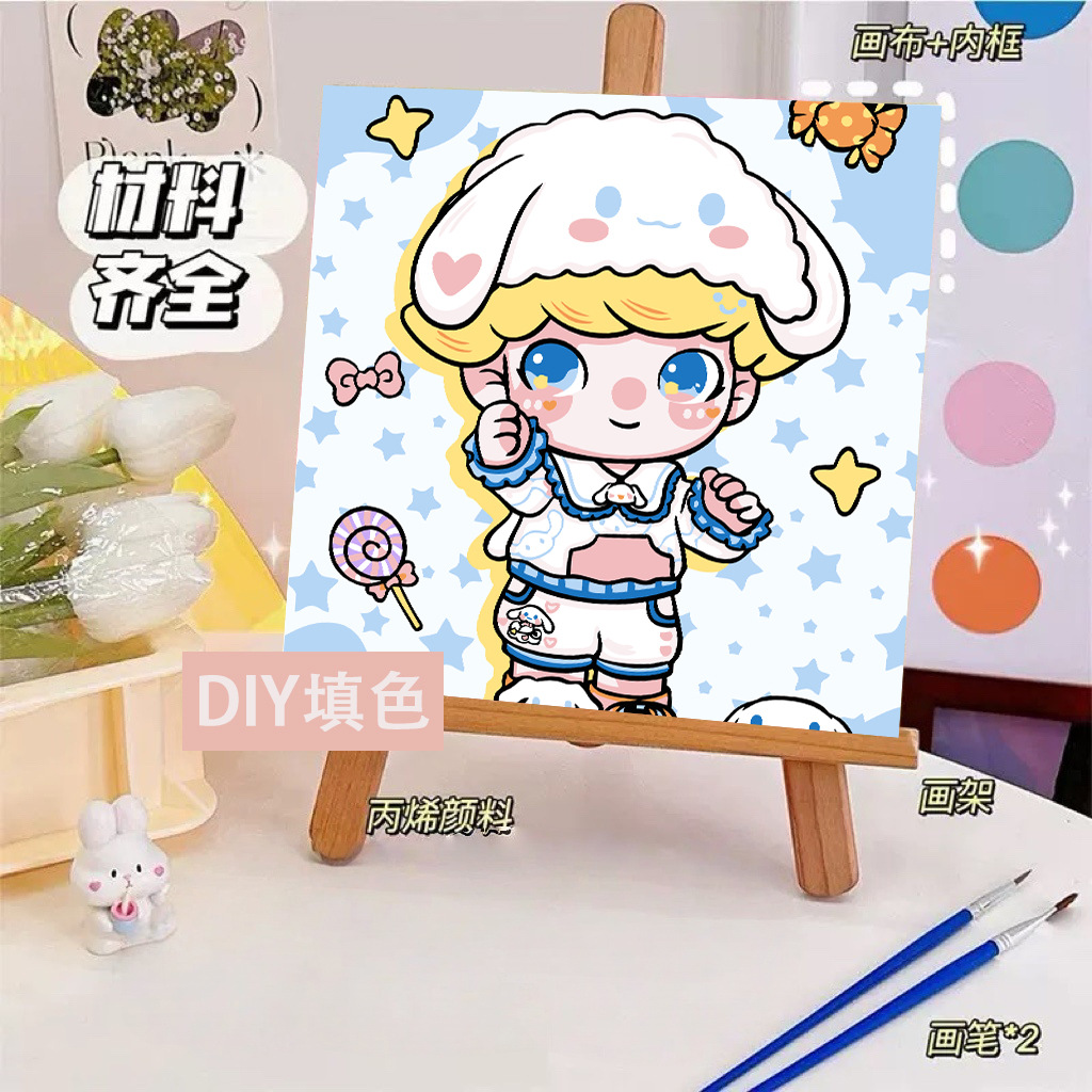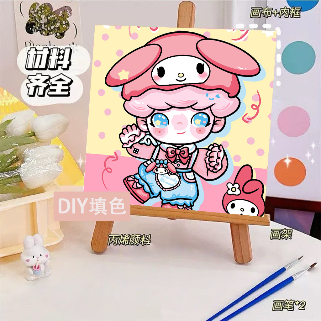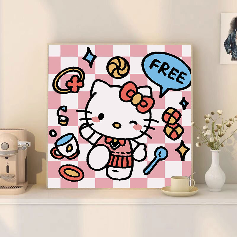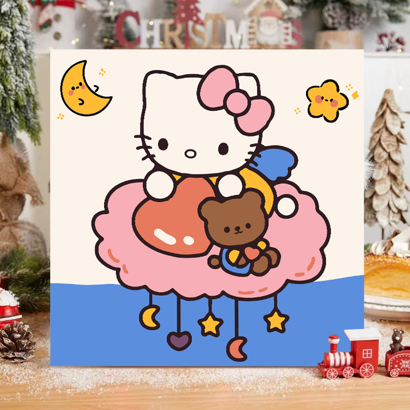 헬로 키티 디지털 유화 diy 손으로 채워진 색상 어린이 간단한 낙서 야시장 마구간 유화 제조 업체 도매