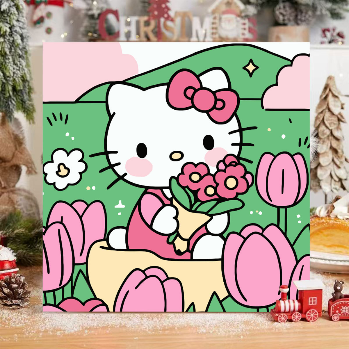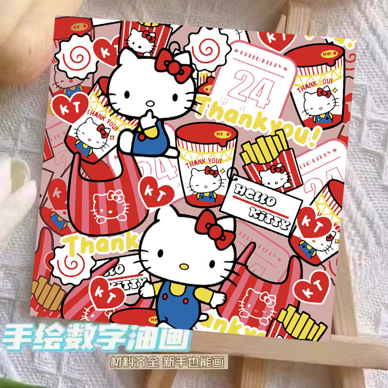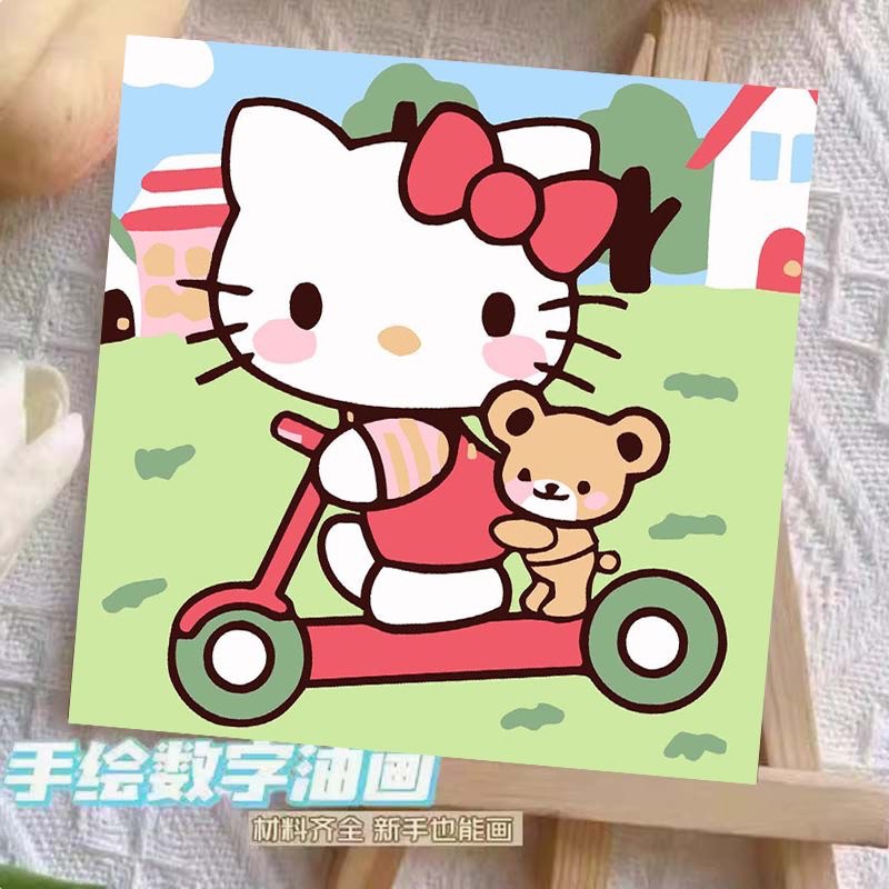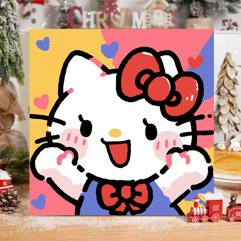 헬로 키티 디지털 유화 diy 손으로 채워진 색상 어린이 간단한 낙서 야시장 마구간 유화 제조 업체 도매스토어 가기