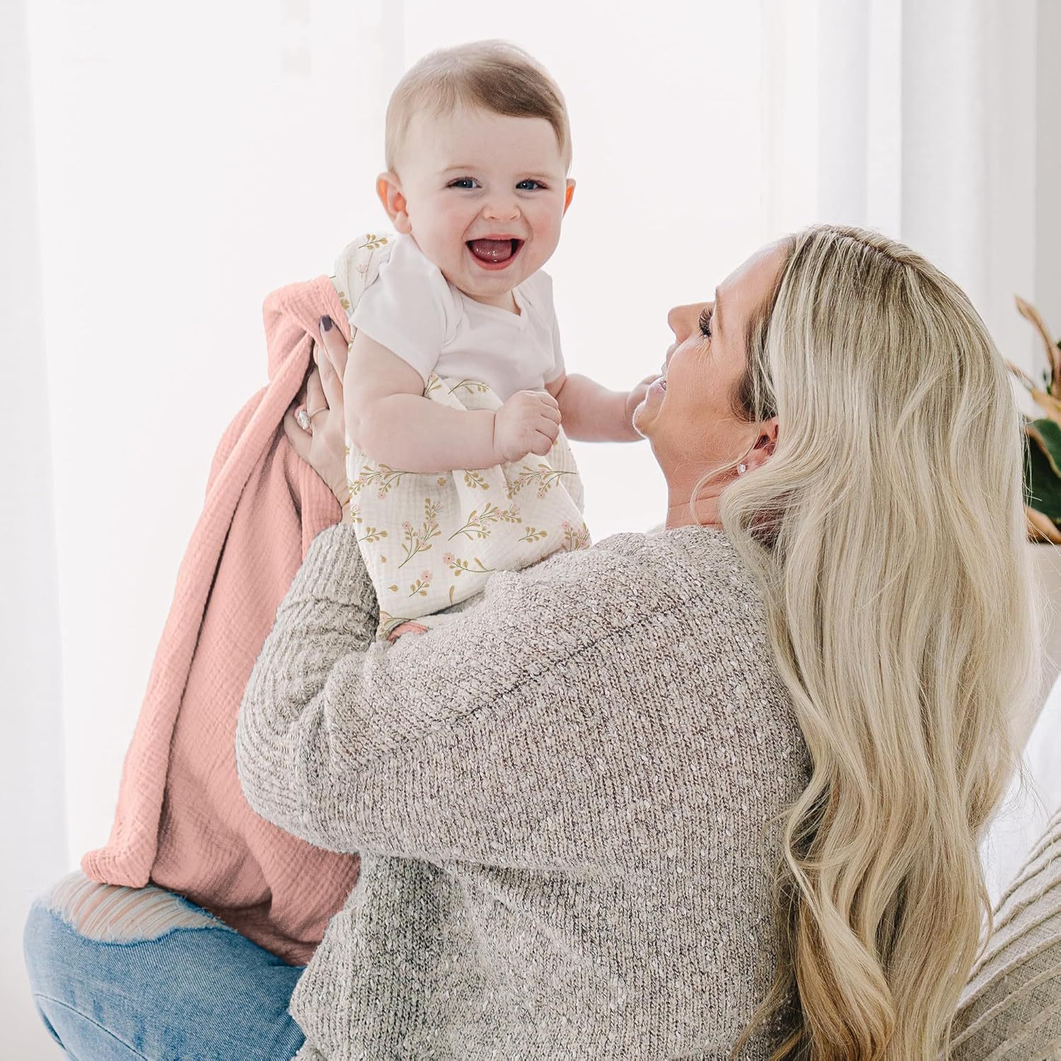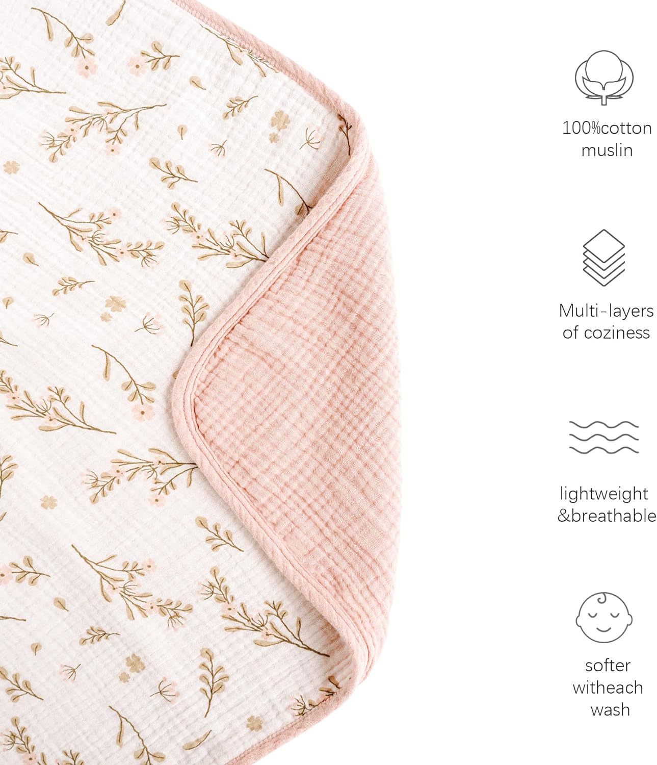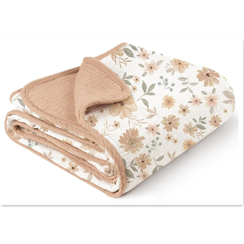 • 핑크색 꽃이 달린 4겹 거즈 담요