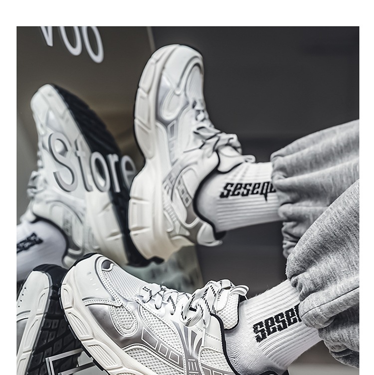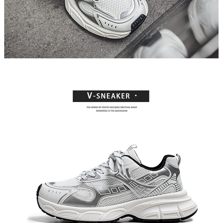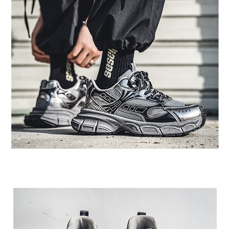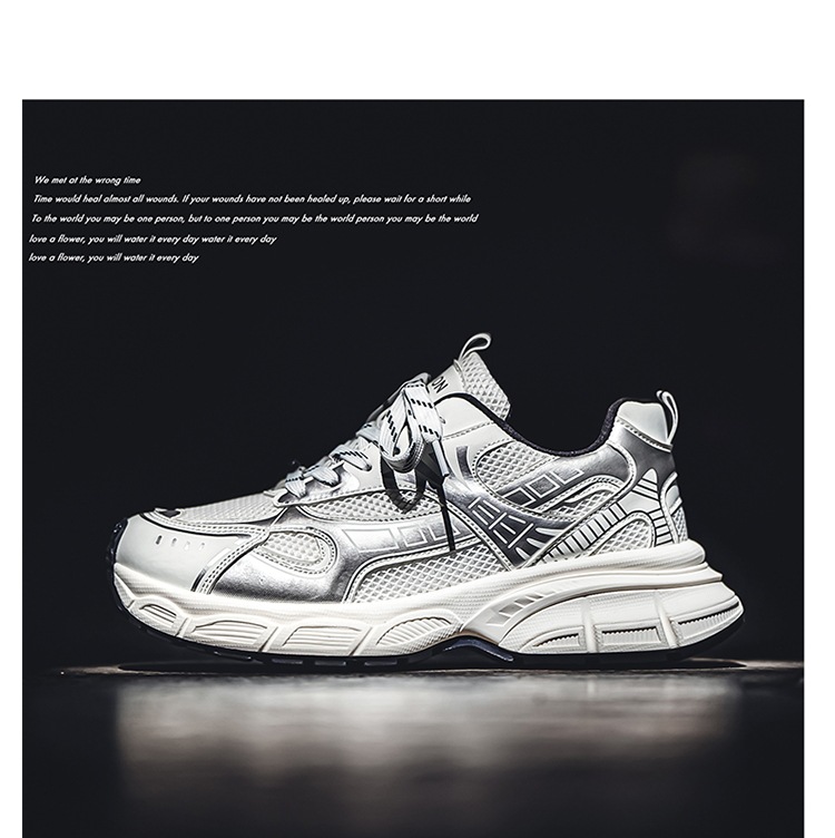 국경 간 남성 신발 여름 통기성 얇은 메쉬 스포츠 캐주얼 두꺼운 단독 높은 발 큰 넓은 지방 실버 아빠 트렌디 신발스토어 가기