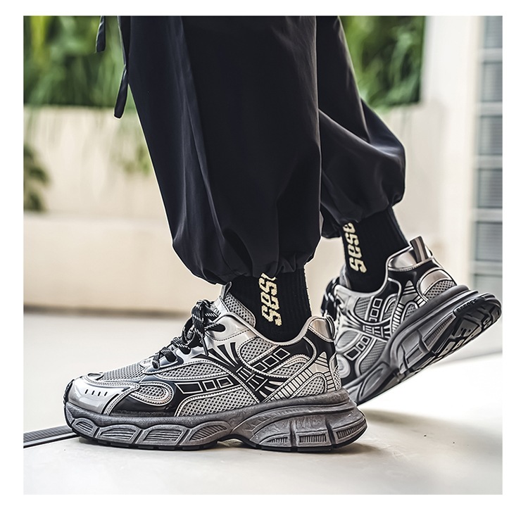 국경 간 남성 신발 여름 통기성 얇은 메쉬 스포츠 캐주얼 두꺼운 단독 높은 발 큰 넓은 지방 실버 아빠 트렌디 신발