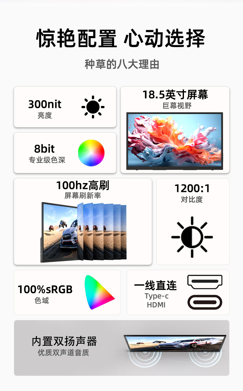 EIMIO18.5 인치 100HZ 휴대용 디스플레이 엔터테인먼트 스위치 컴퓨터 서브 스크린 1080IPS HD스토어 가기