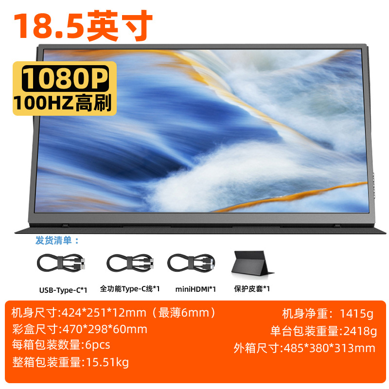 EIMIO18.5 인치 100HZ 휴대용 디스플레이 엔터테인먼트 스위치 컴퓨터 서브 스크린 1080IPS HD