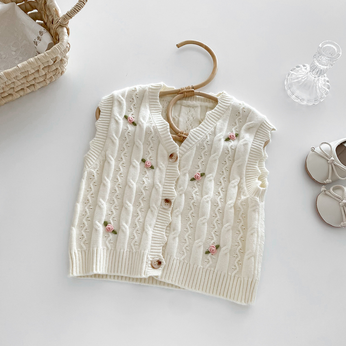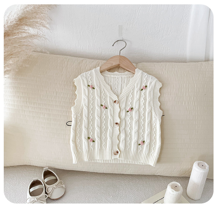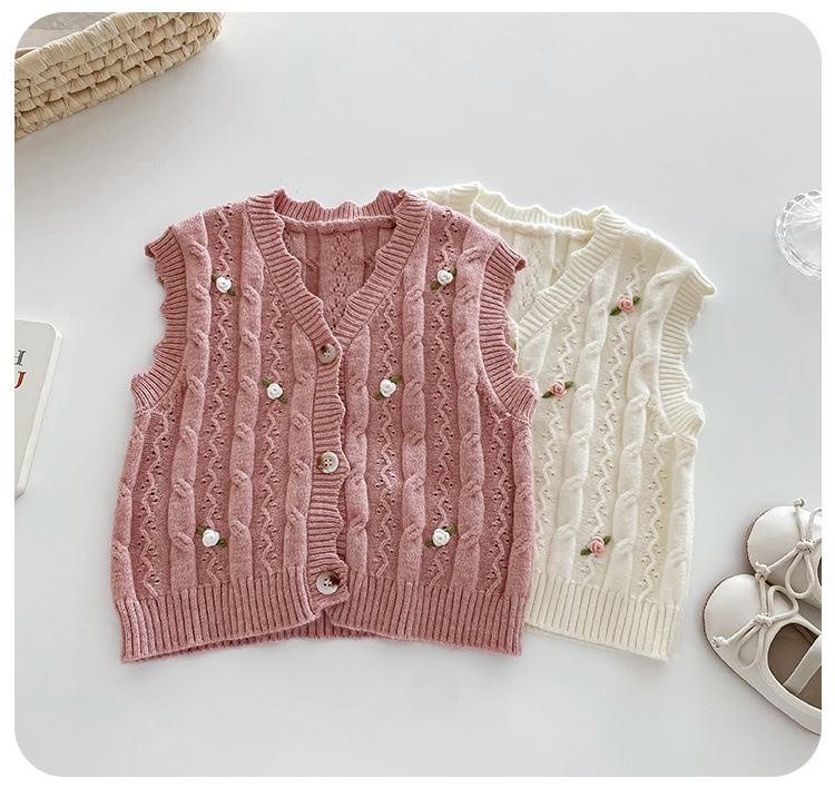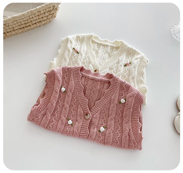 한국 스타일 여자 아기 자수 꽃무늬 니트 조끼 봄 가을 아기 옷 민소매 니트 가디건 세련된 조끼
