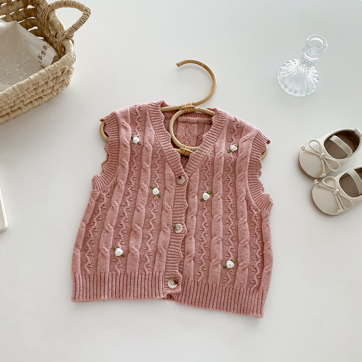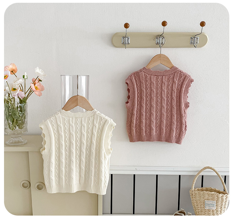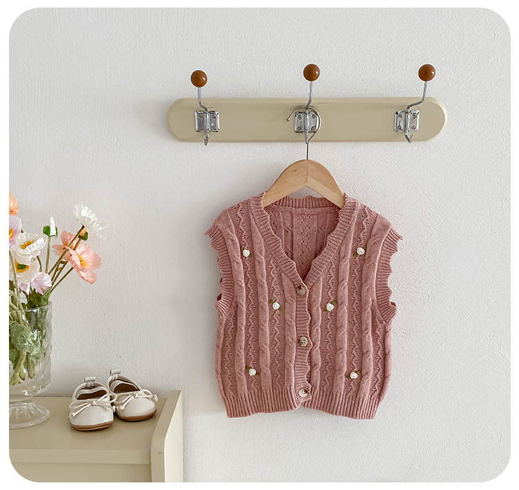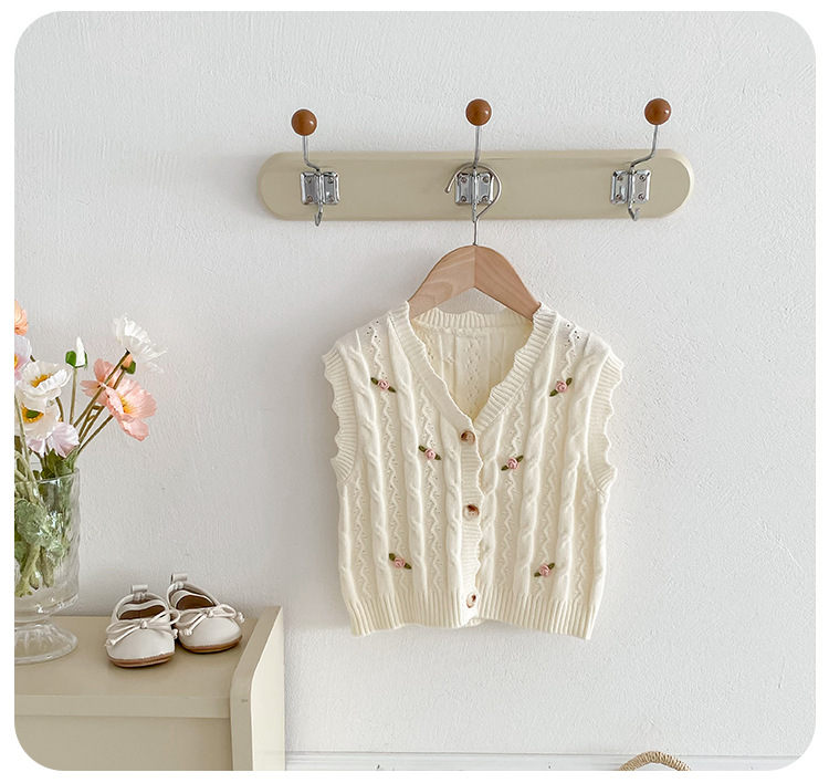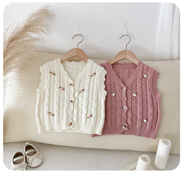 한국 스타일 여자 아기 자수 꽃무늬 니트 조끼 봄 가을 아기 옷 민소매 니트 가디건 세련된 조끼스토어 가기