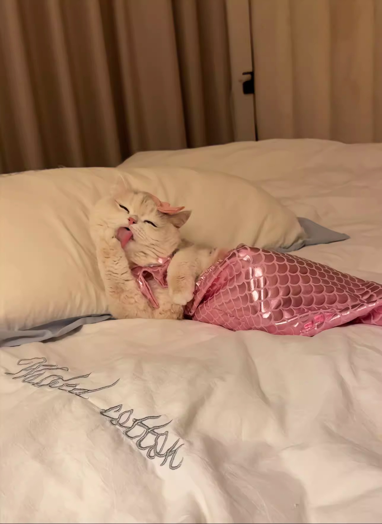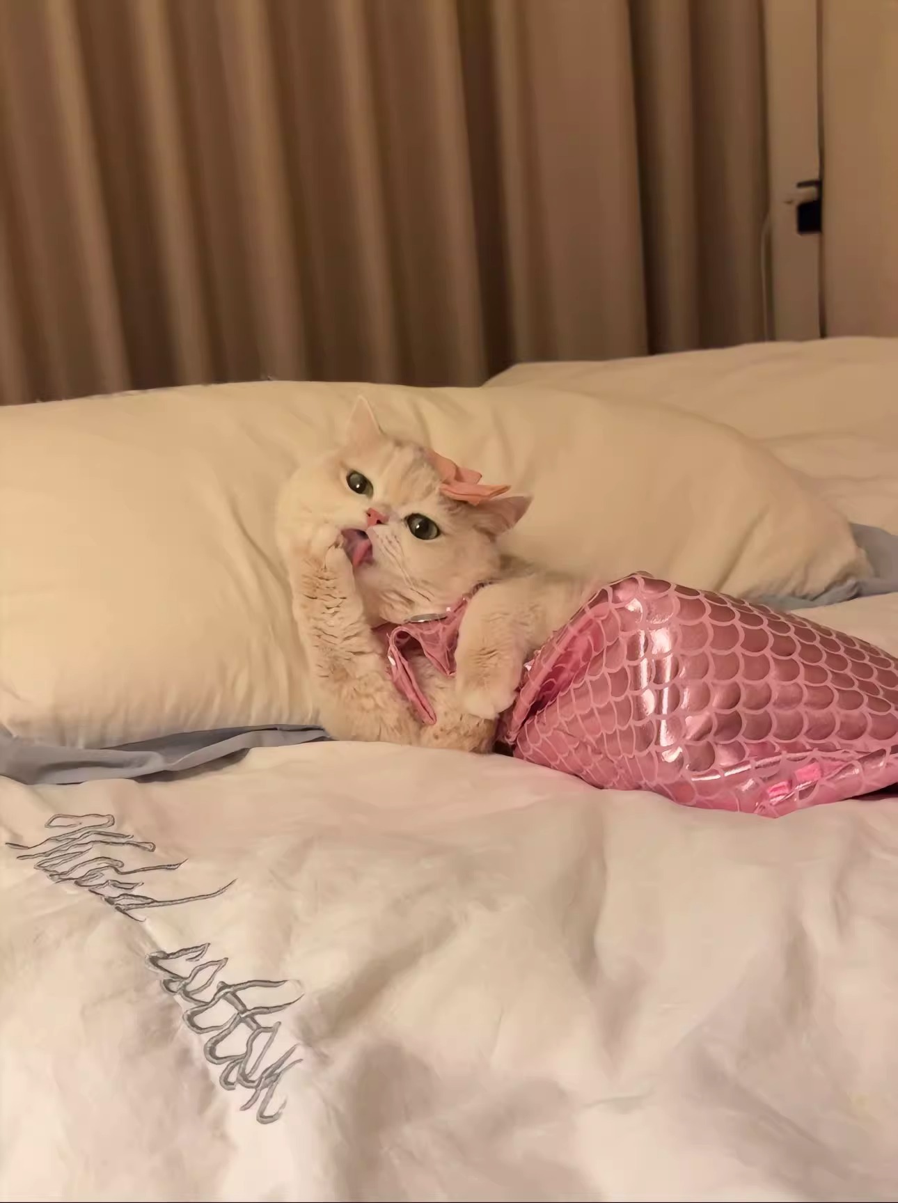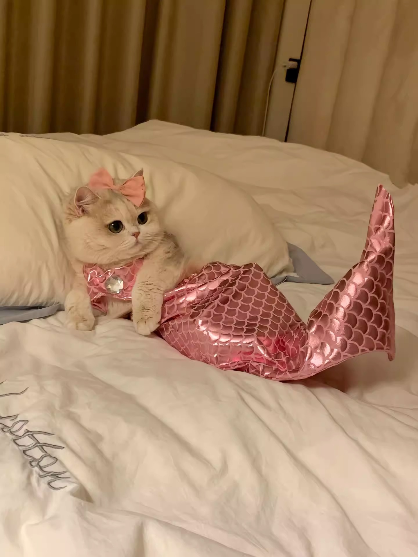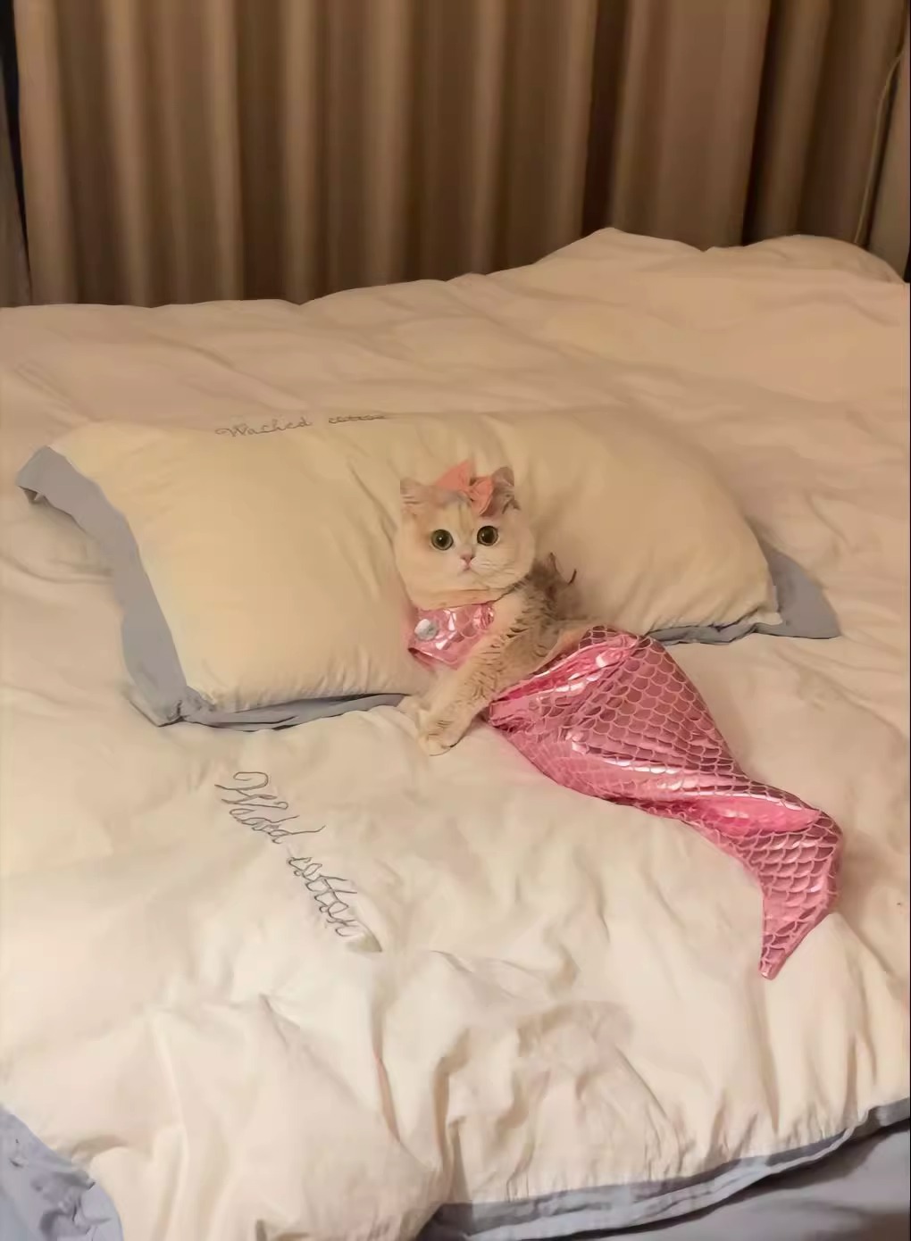 같은 고양이 옷 인어 재미있는 애완 동물 고양이 꼭두각시 물고기 꼬리 장식 재미있는 사진 옷의 소리를 흔들어