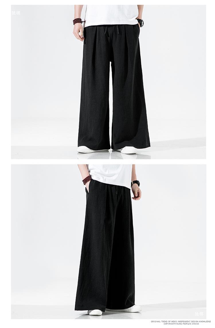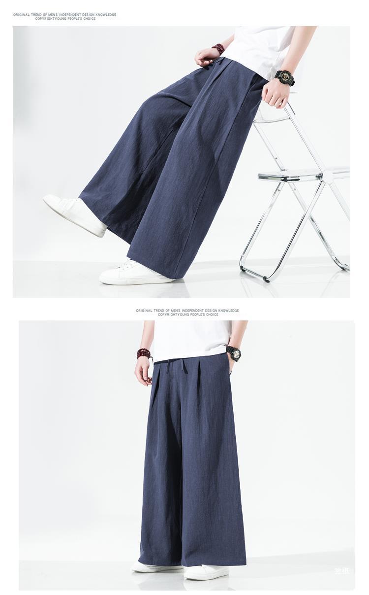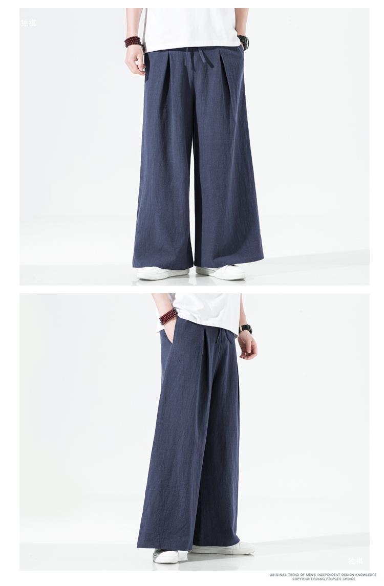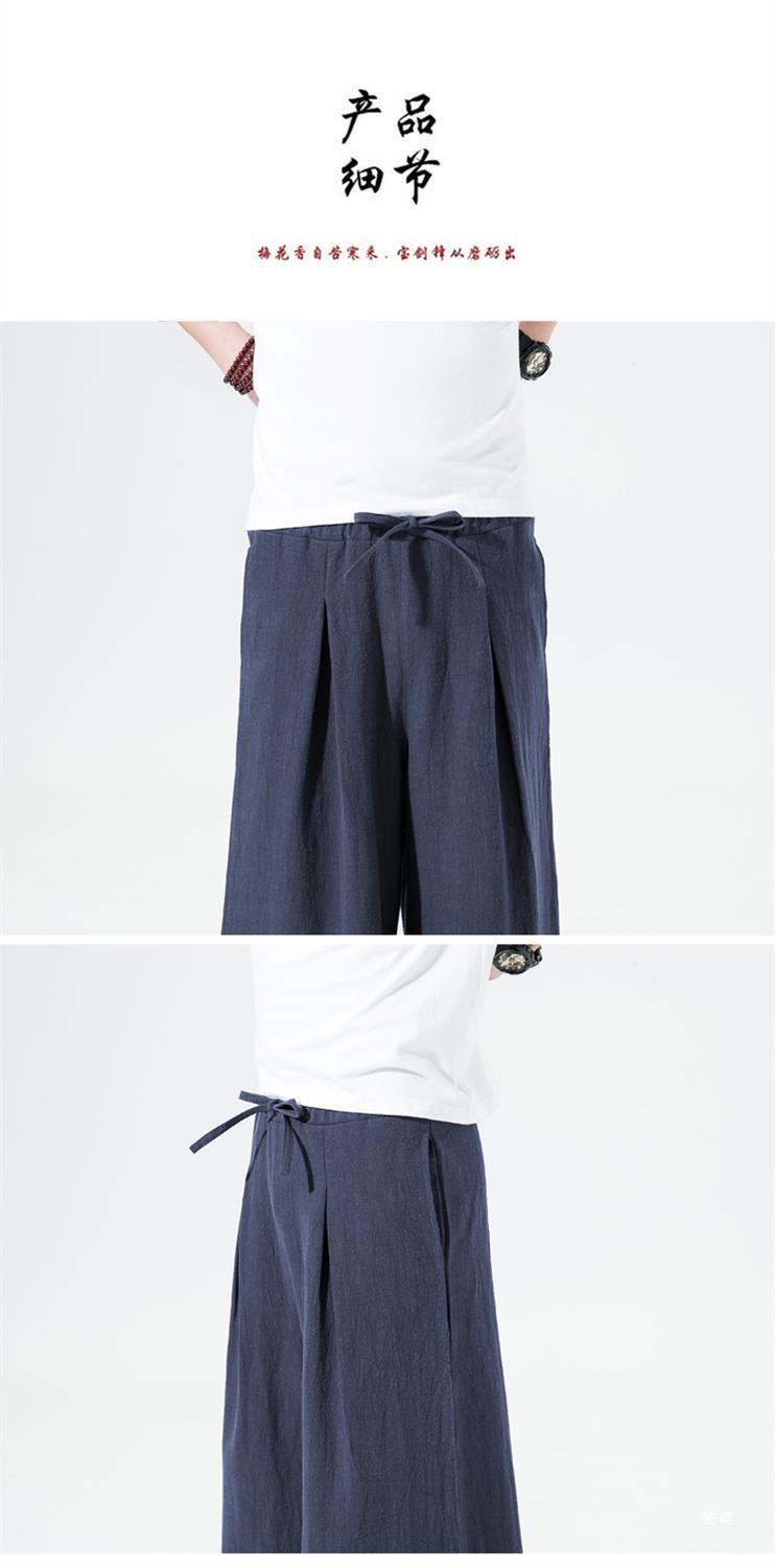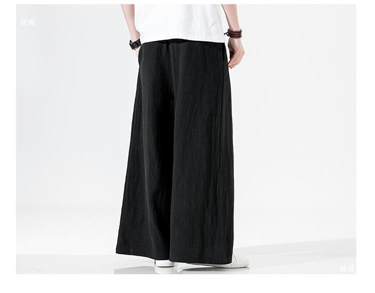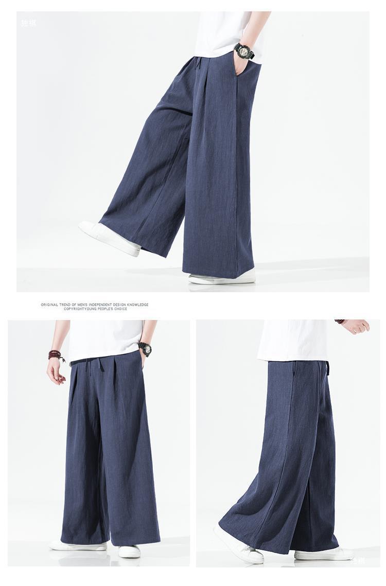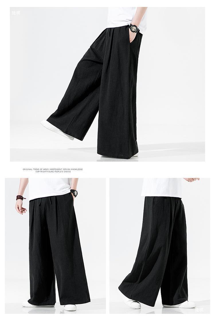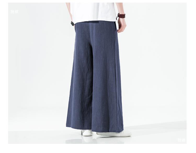 중국 스타일 리넨 바지 남성용 루즈 플레어 바지 캐주얼 플러스 사이즈 지방 남성 와이드 레그 컬롯 바지 펜던트 면 및 린넨 바지 명상스토어 가기