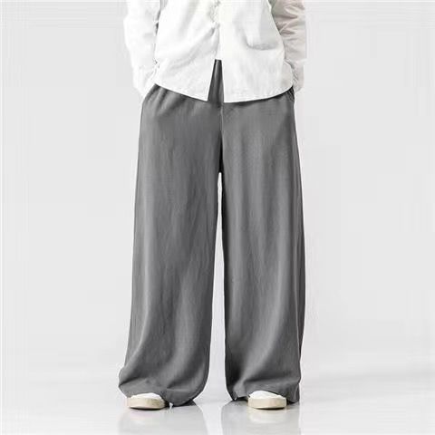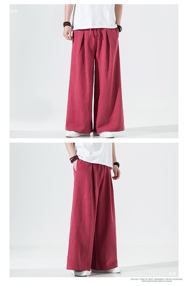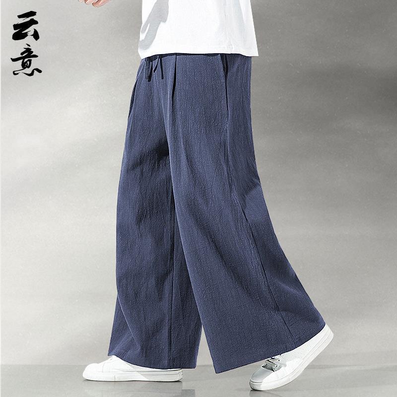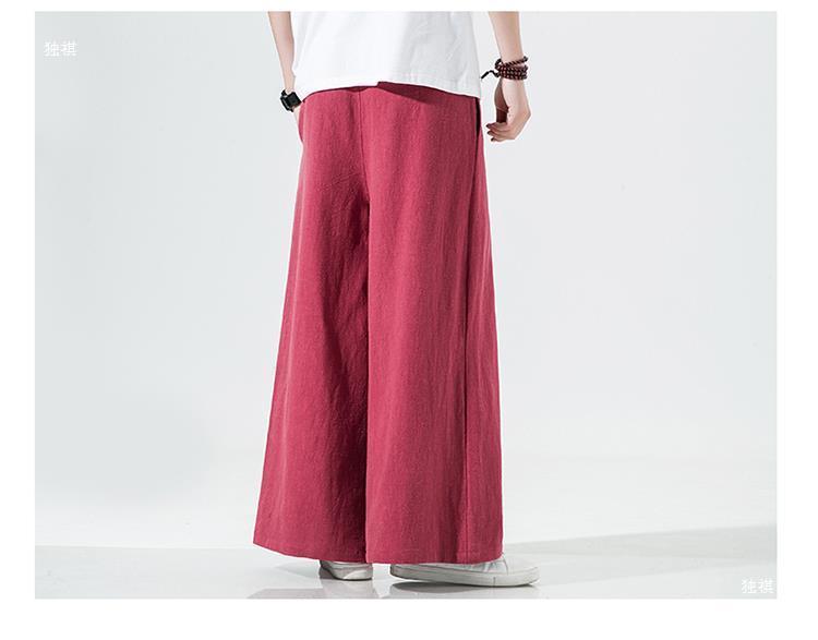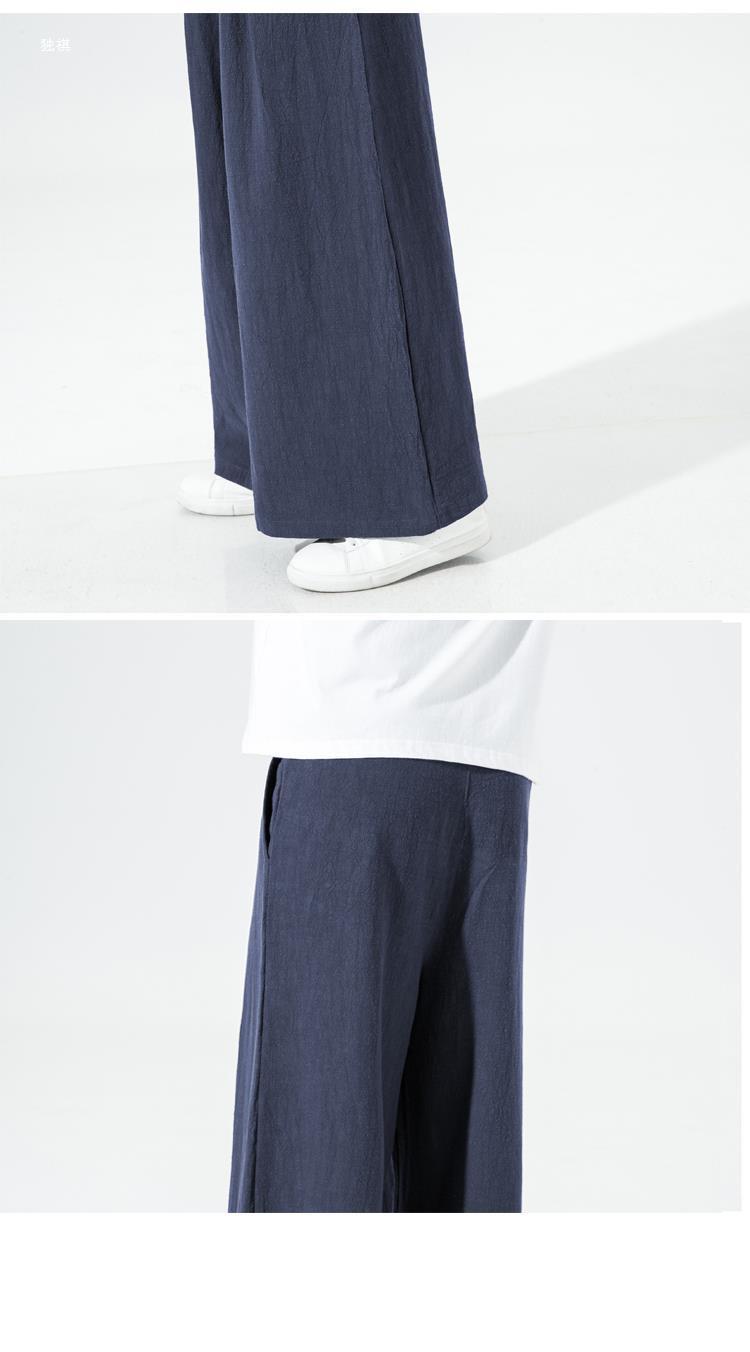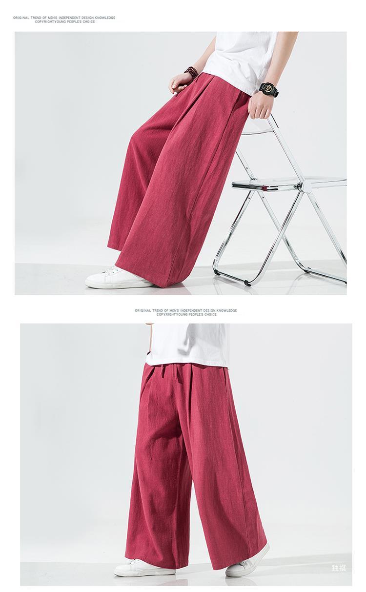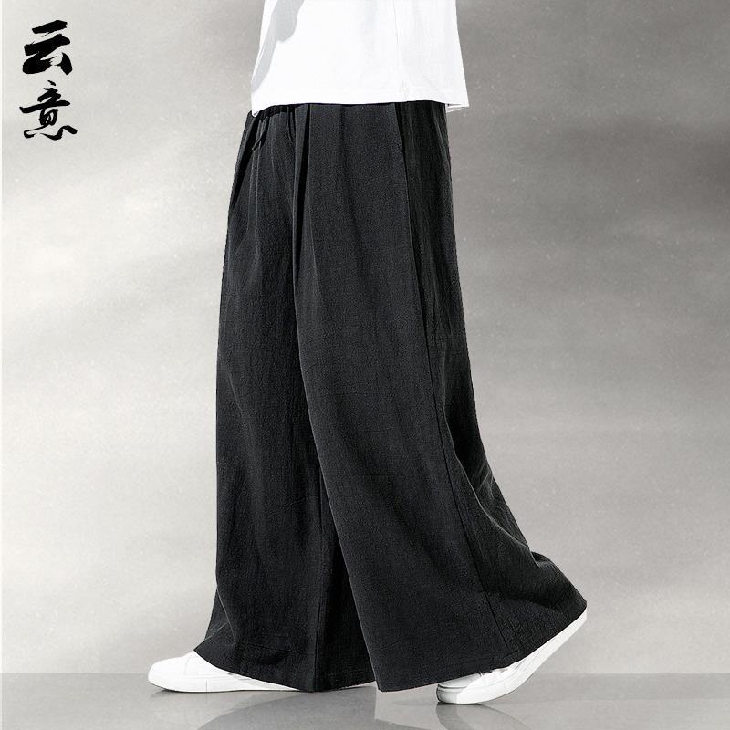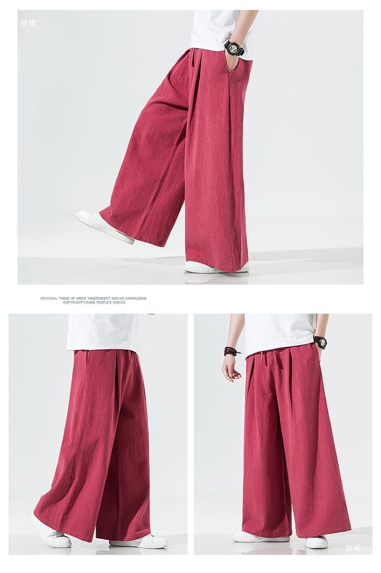 중국 스타일 리넨 바지 남성용 루즈 플레어 바지 캐주얼 플러스 사이즈 지방 남성 와이드 레그 컬롯 바지 펜던트 면 및 린넨 바지 명상스토어 가기