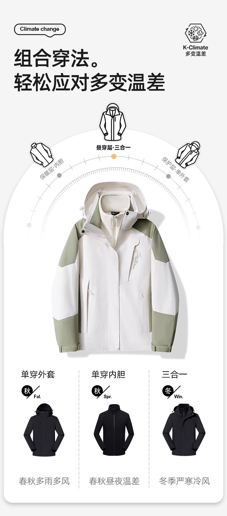 • 남성용 카키 [3-in-1 탈착식 라이너]