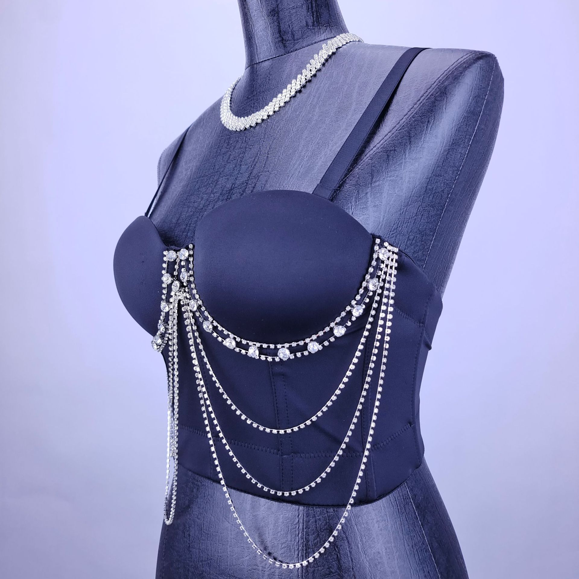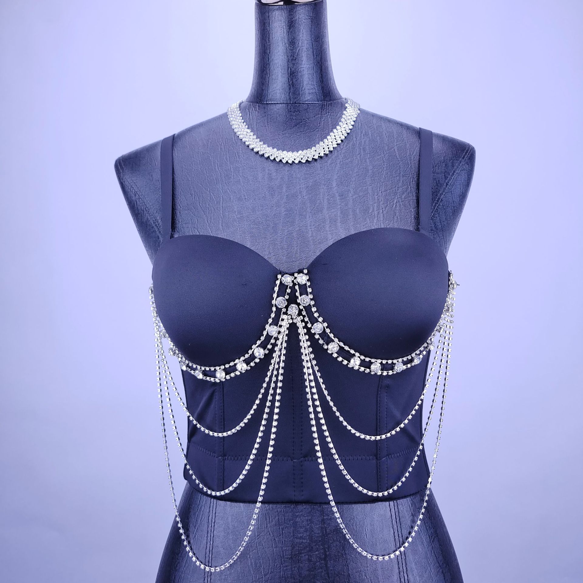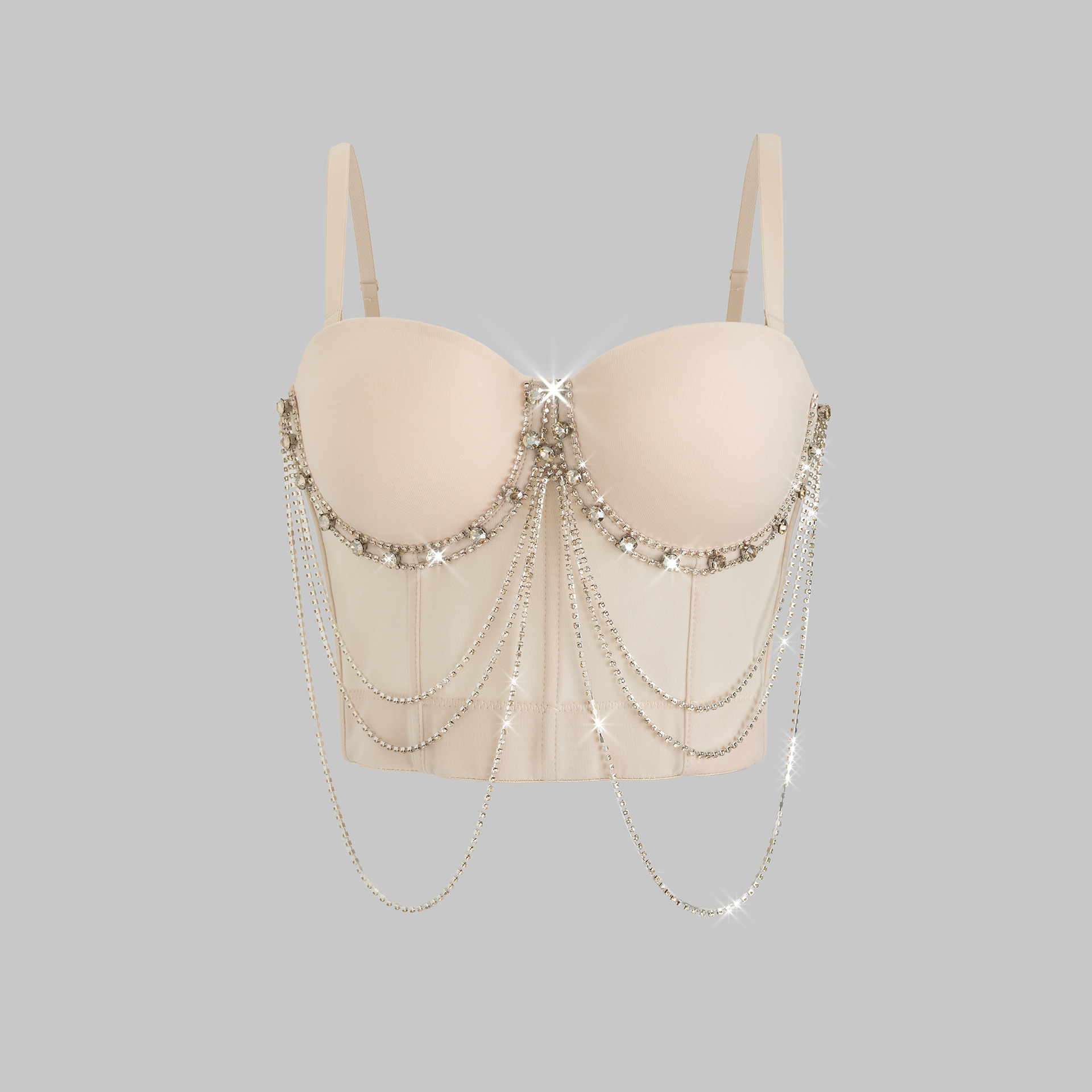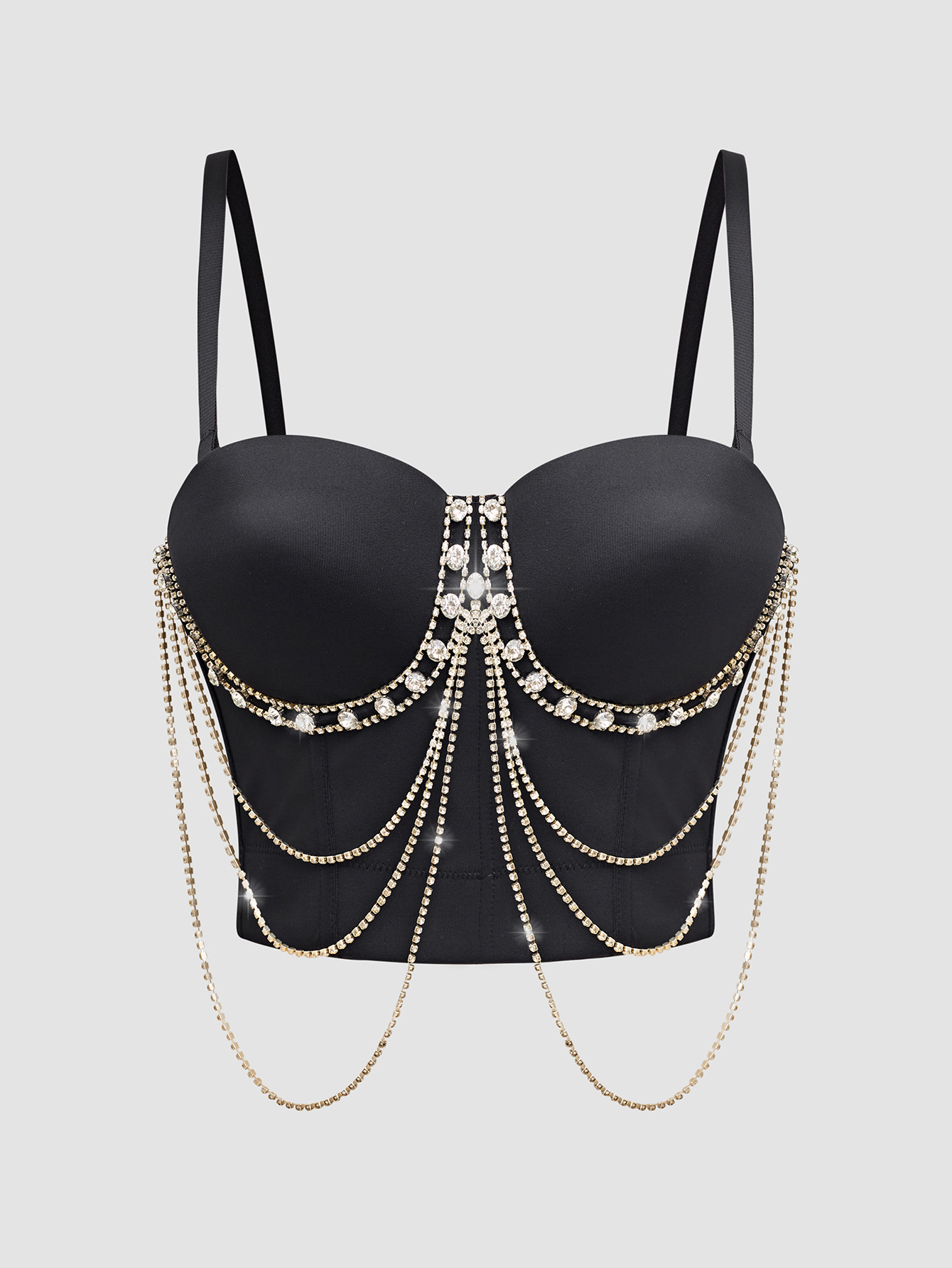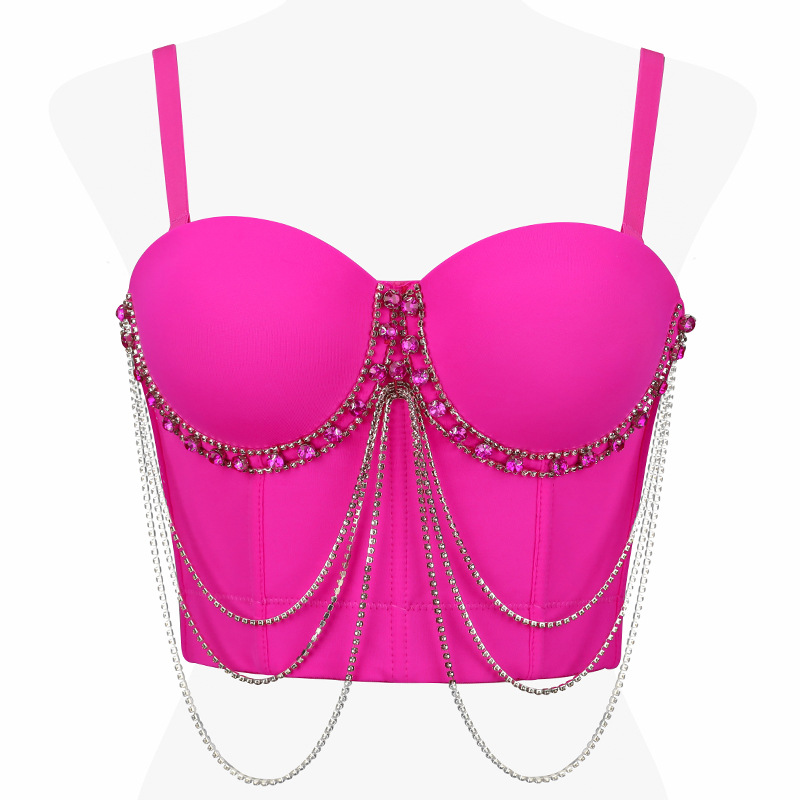 루추궈 섹시한 체인 스트랩 라인스톤 브라탑 일체형 아우터웨어 뷔스티에 신상 고급 여성용 탑 DB1561