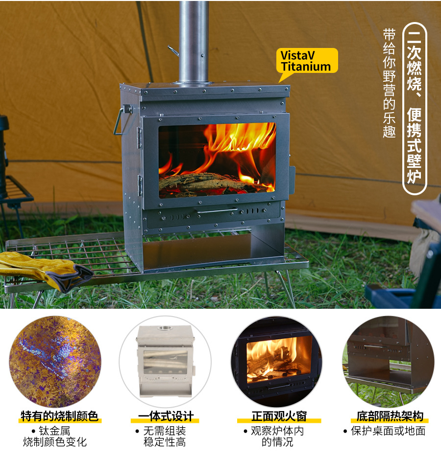 패스트 드래곤 야외 녹색 스토브 티타늄 벽난로 0.6mm 야외 나무 스토브 캠핑 스토브 휴대용 난방 텐트 스토브