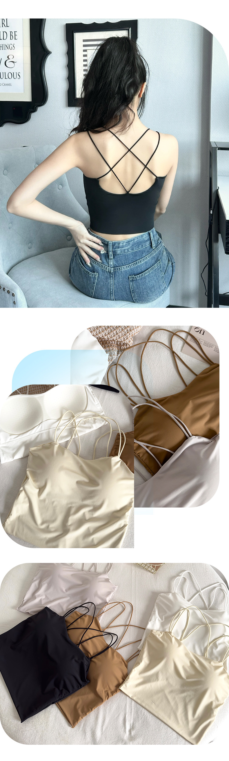 아이스 실크 아름다운 백 튜브 탑 슬링 조끼 여자 여름 내베이스 브라, 가슴 패드 뜨거운 소녀의 외부 착용 탑스토어 가기