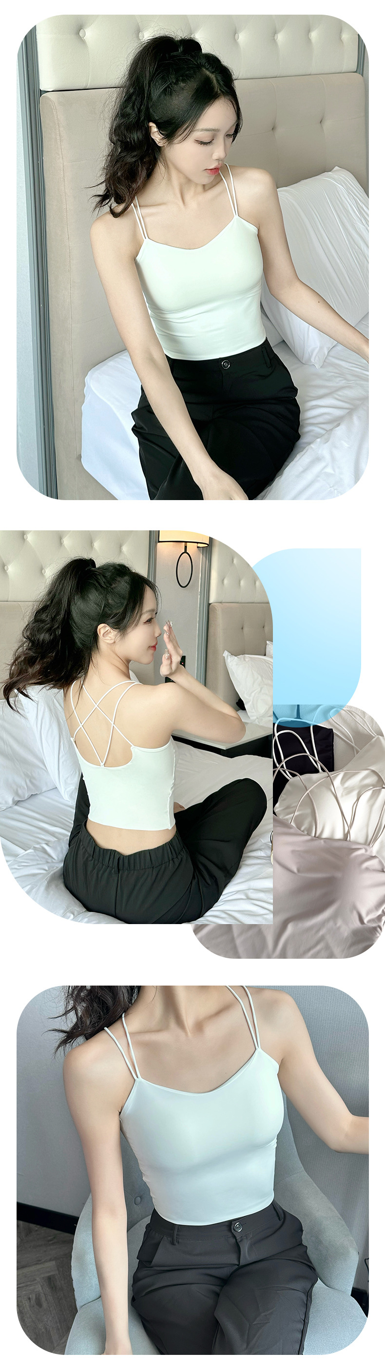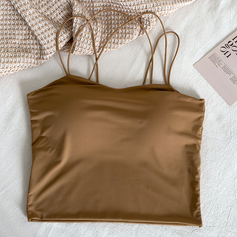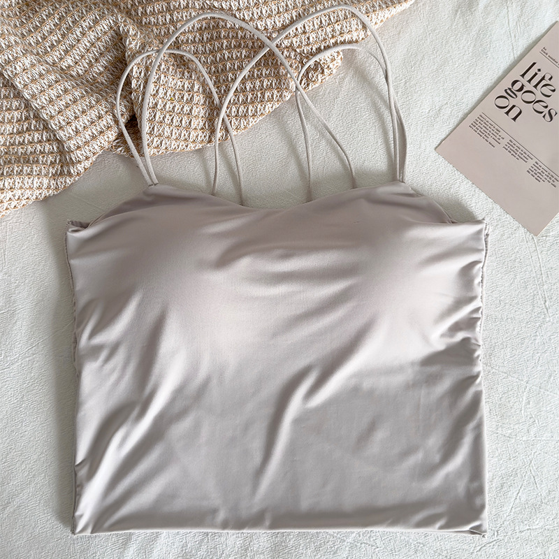 아이스 실크 아름다운 백 튜브 탑 슬링 조끼 여자 여름 내베이스 브라, 가슴 패드 뜨거운 소녀의 외부 착용 탑