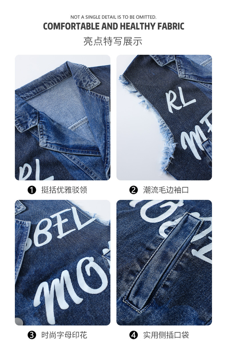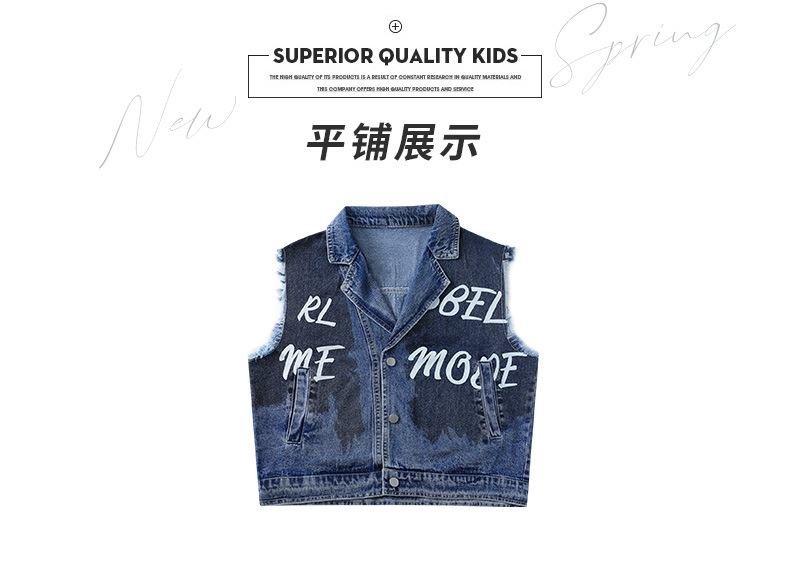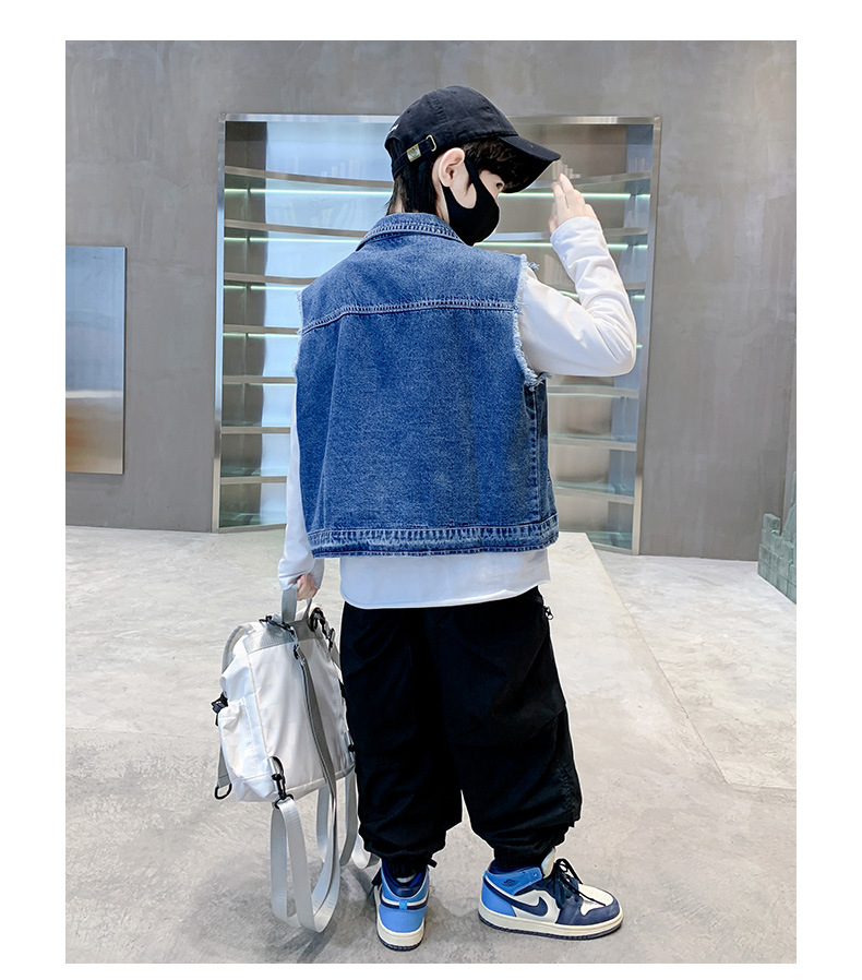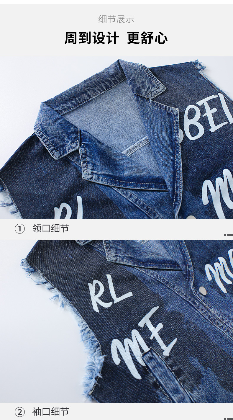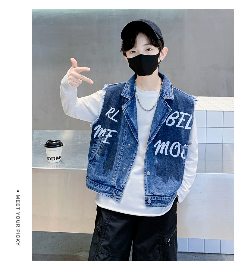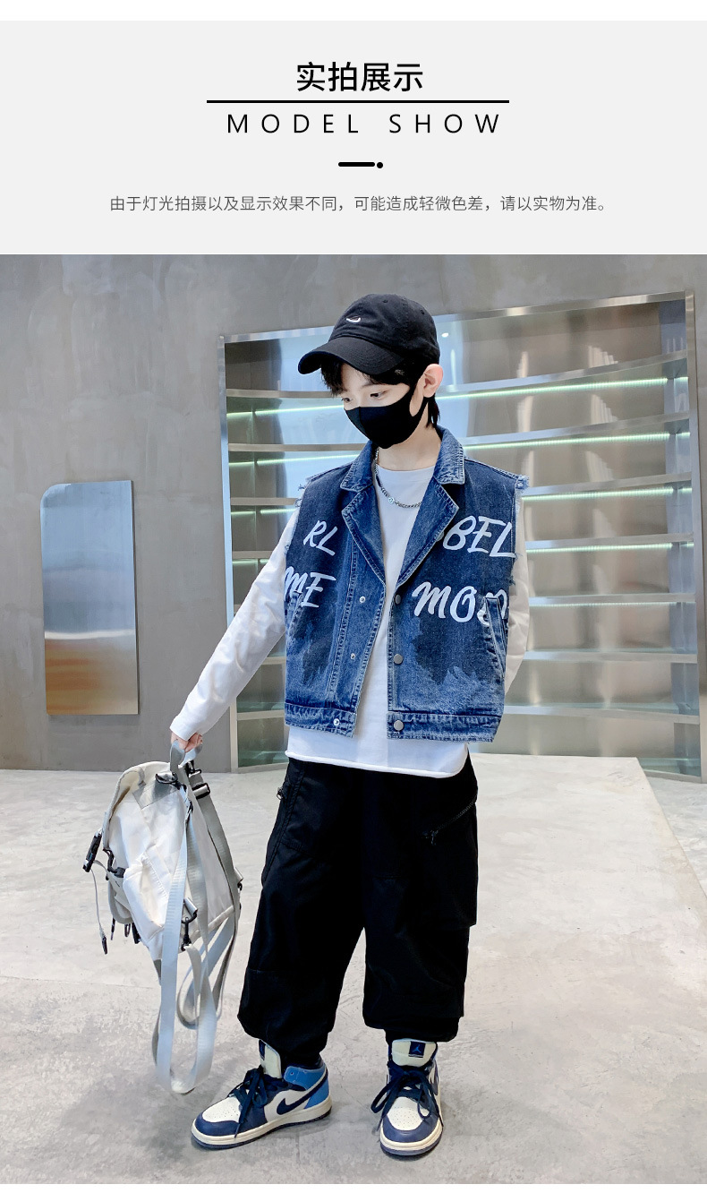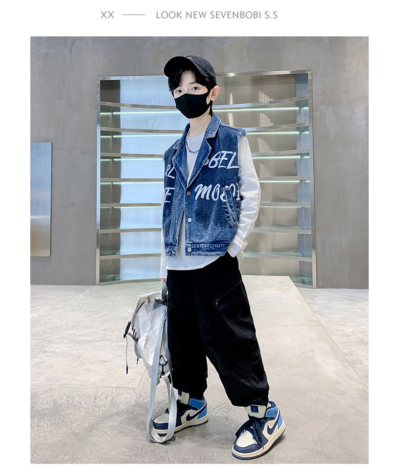 소년 데님 조끼 코트 봄과 가을 2024 새로운 세련된 유행 편지 민소매 조끼 최고 가을 패션스토어 가기