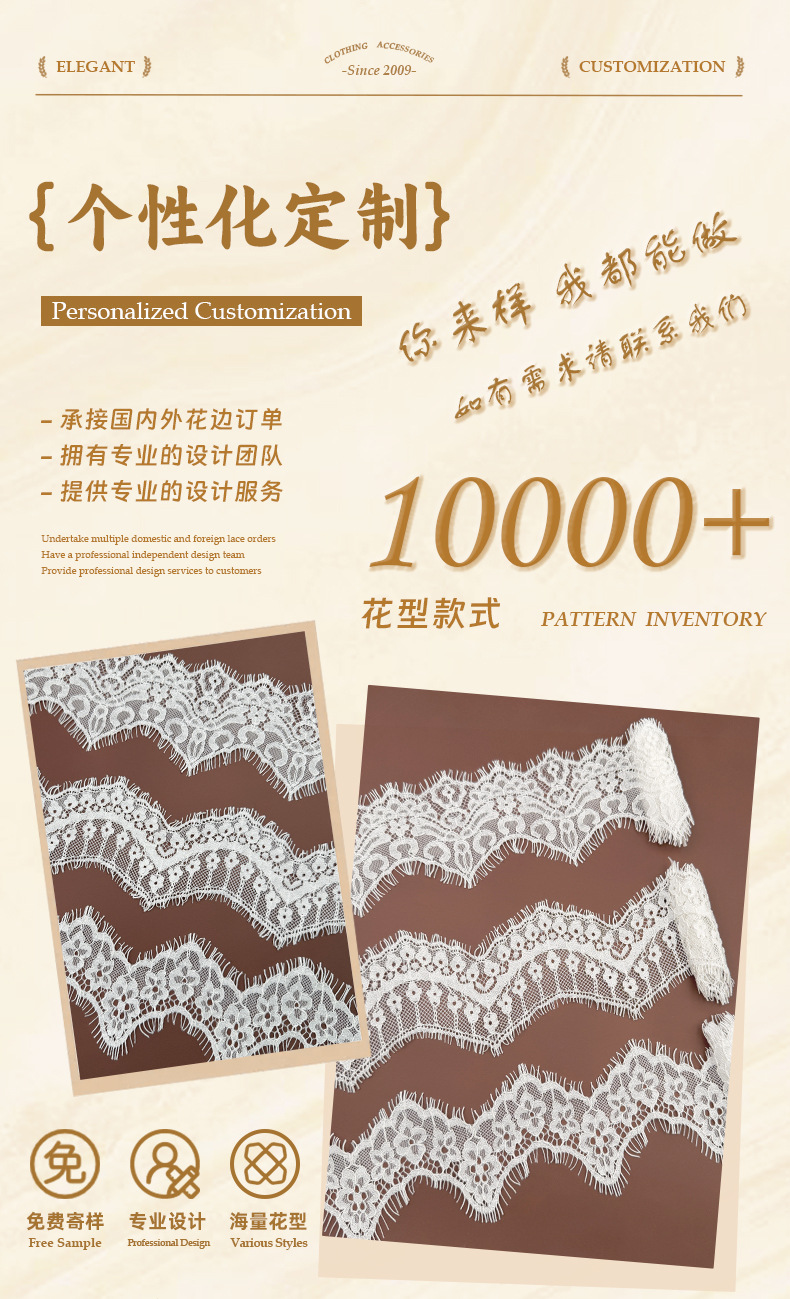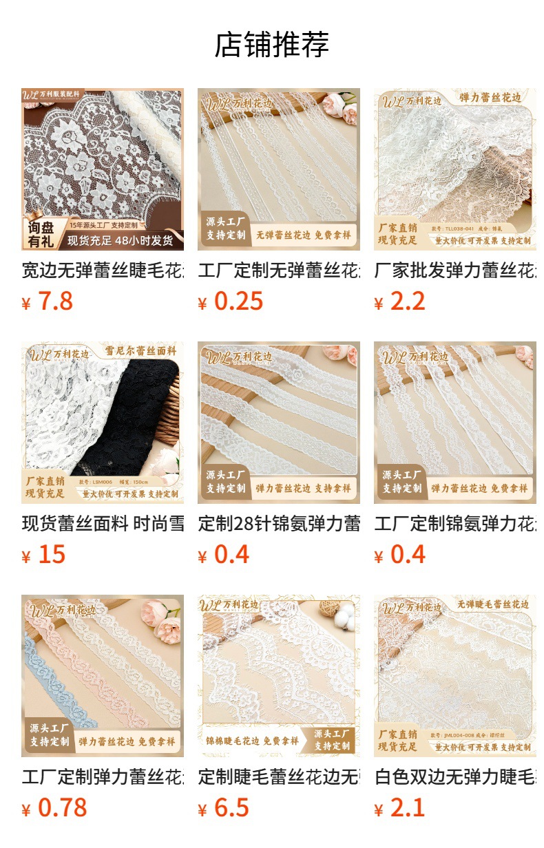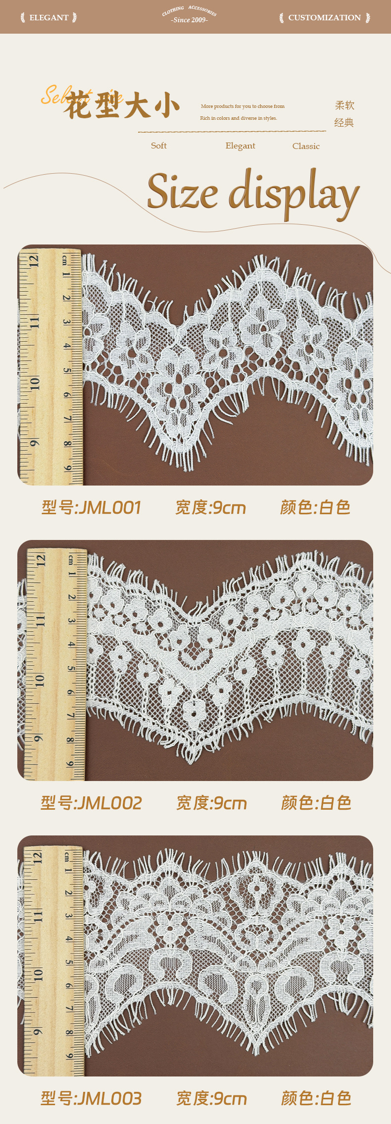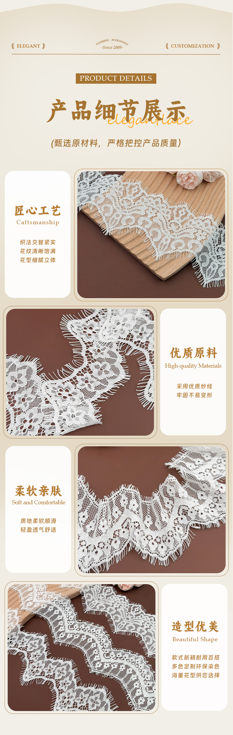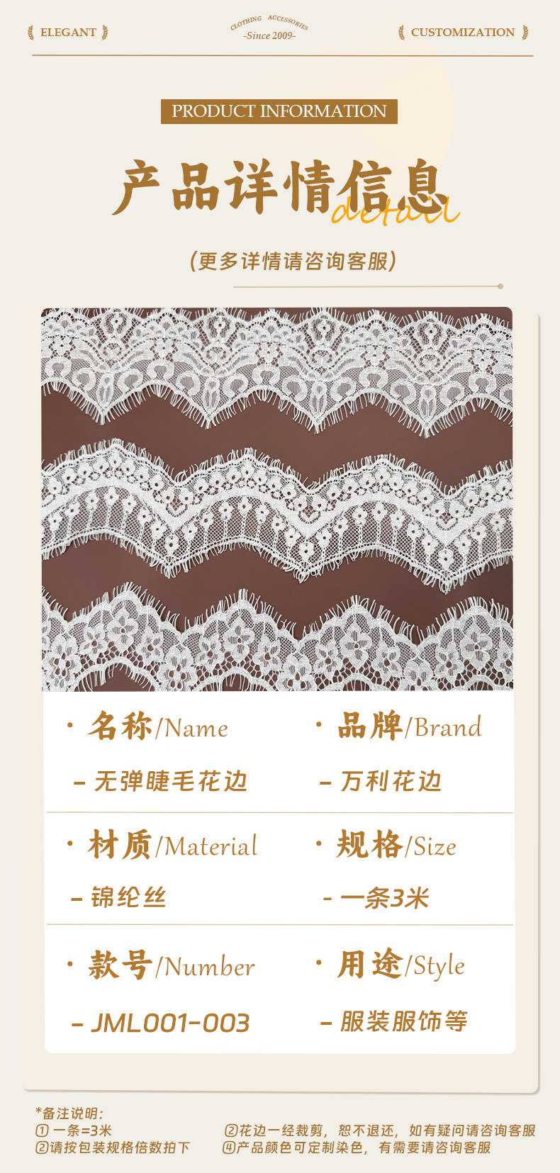재고 도매 흰색 속눈썹 레이스 장식 부자재 부드러운 브로케이드 면 양면 레이스 무탄성 소매 레이스 장식 부자재스토어 가기