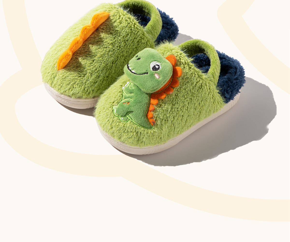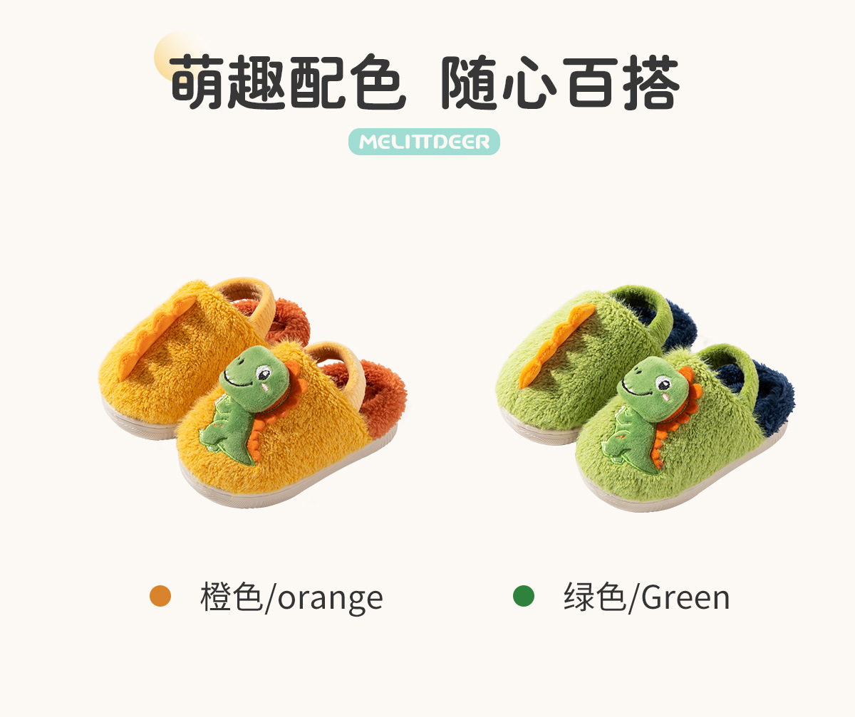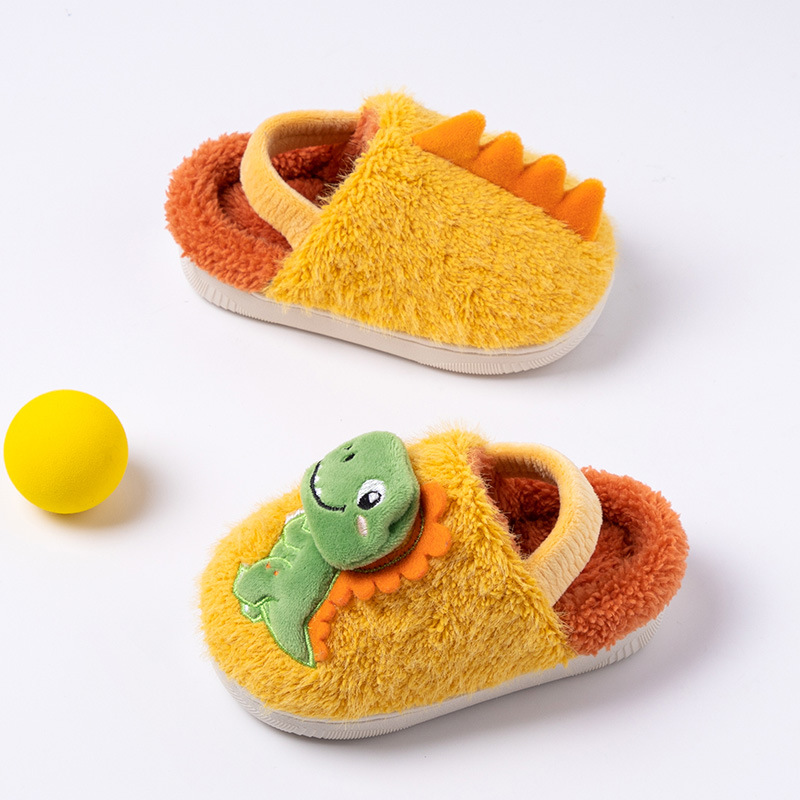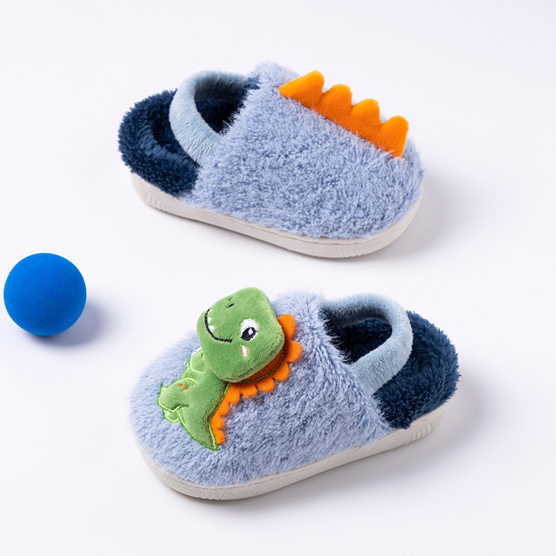 Fawn Millie 어린이 만화 공룡 스트랩 면화 슬리퍼 도매 따뜻한 어린이 아기 집 미끄럼 방지 면화 신발 겨울스토어 가기