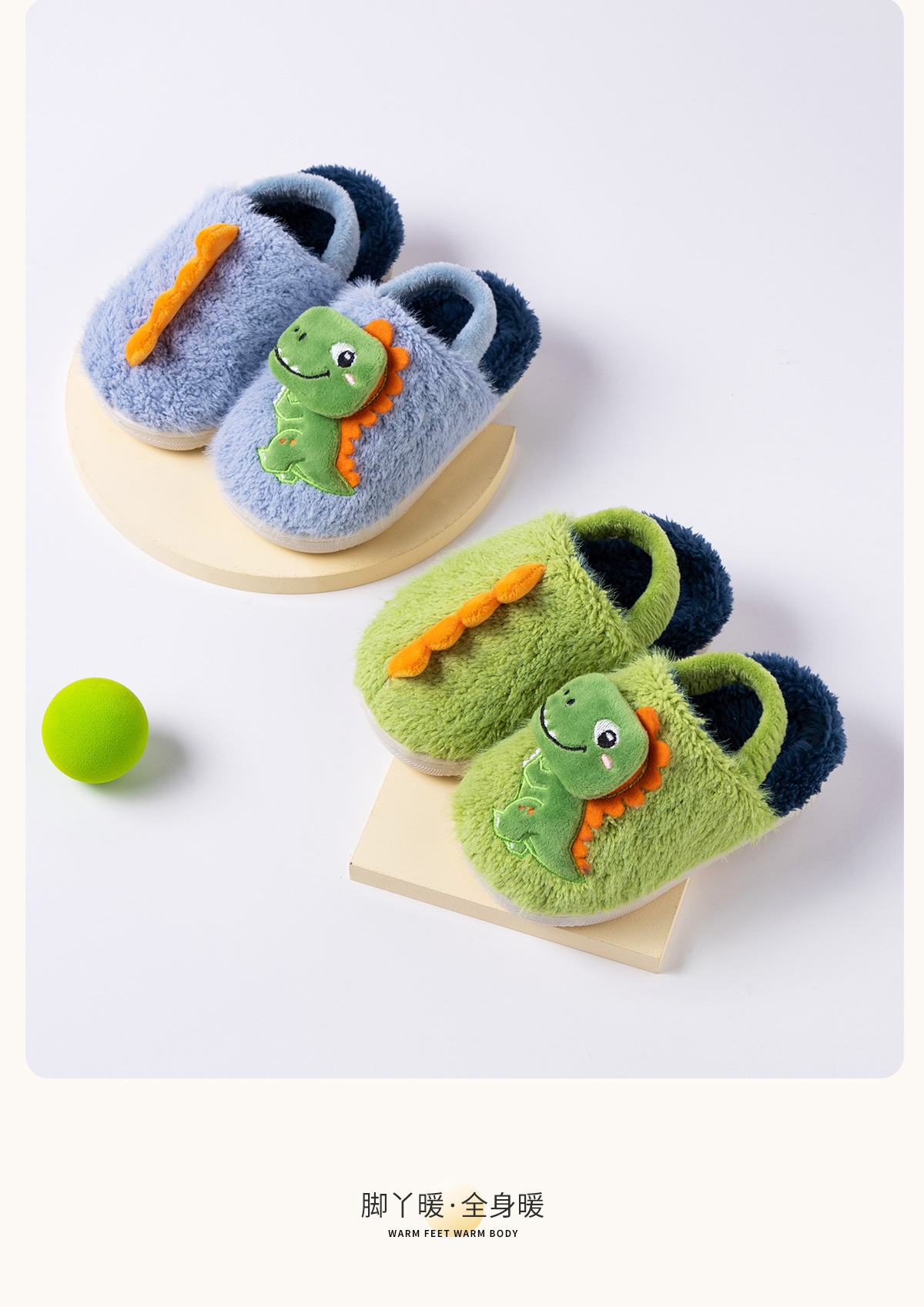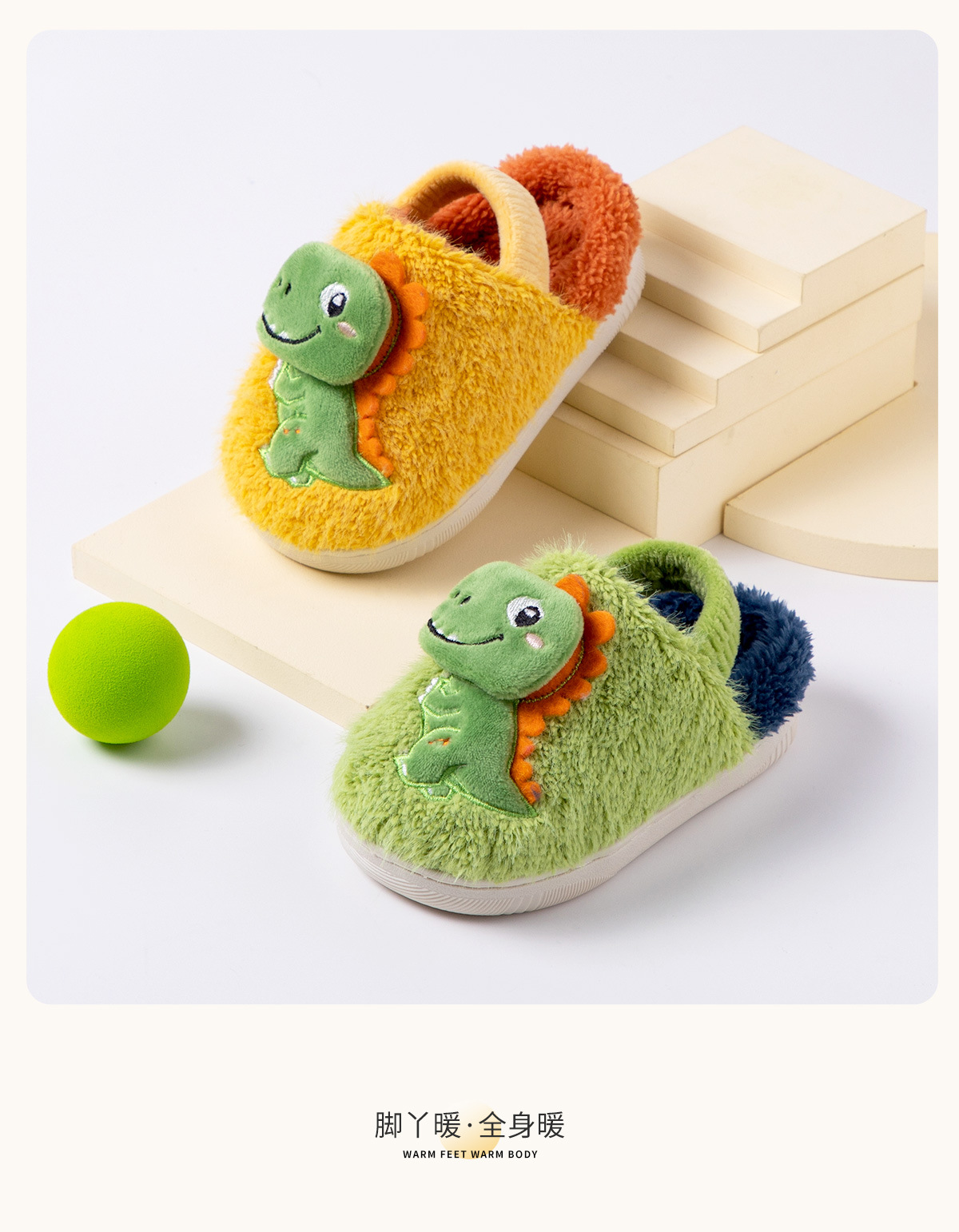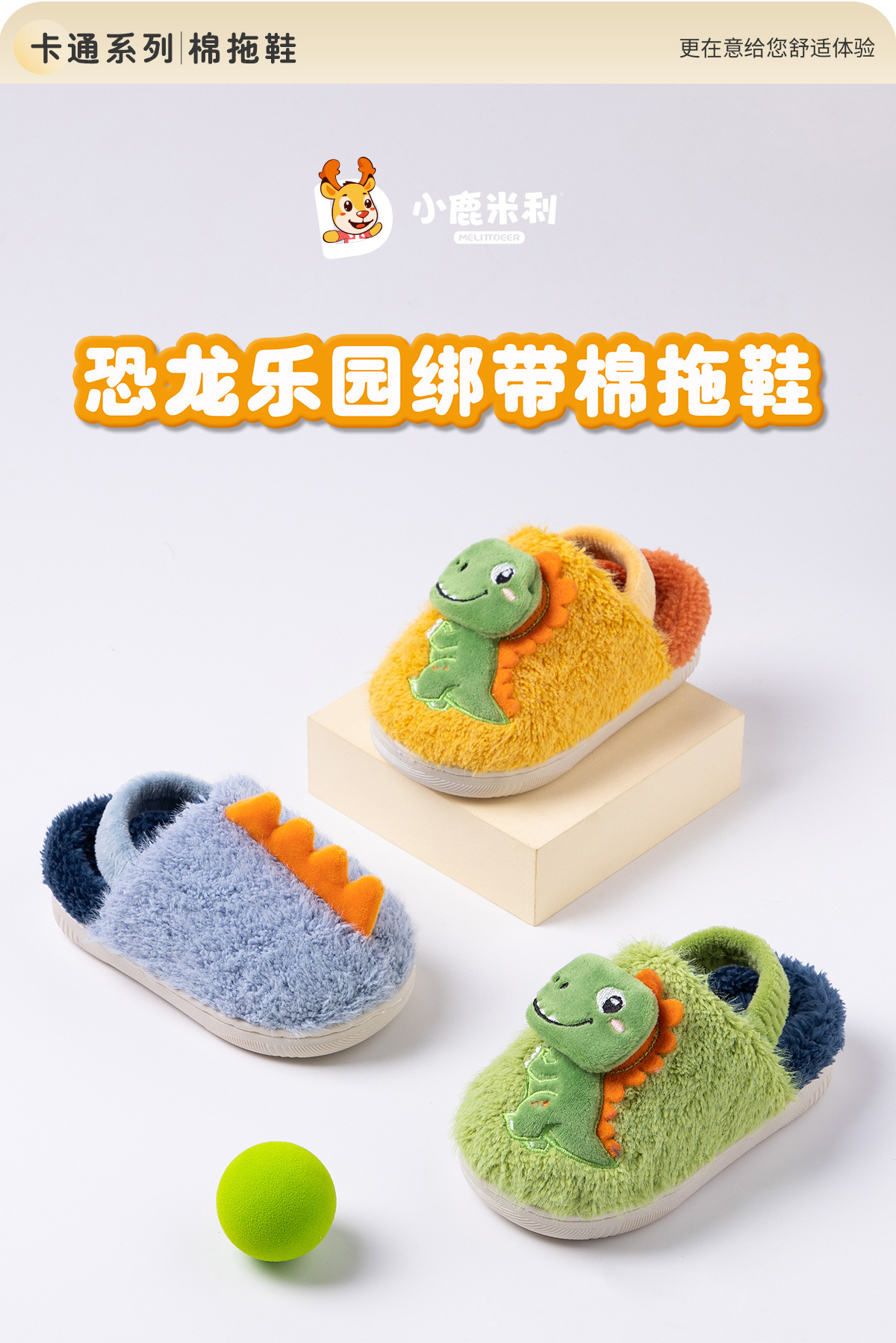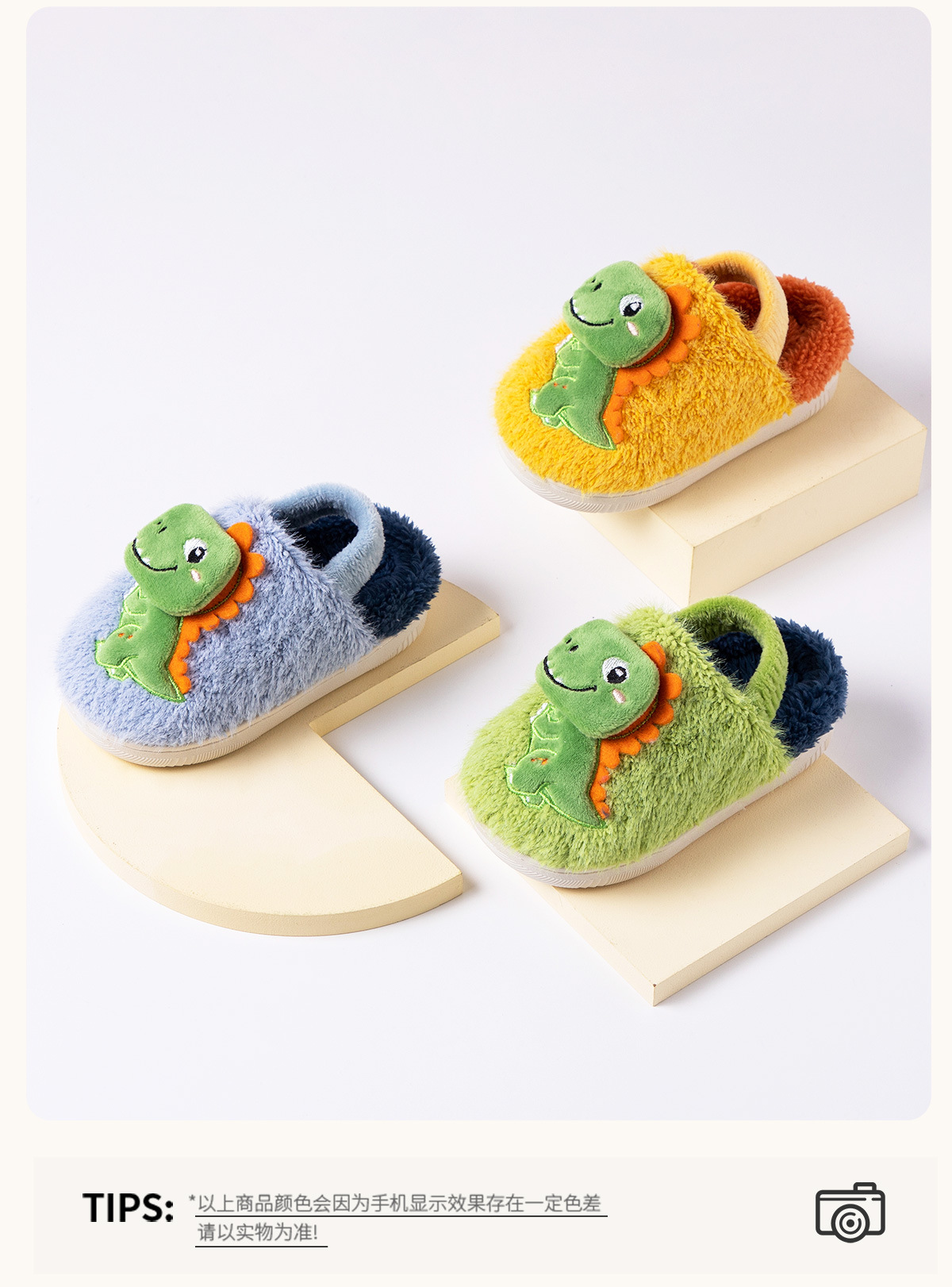 Fawn Millie 어린이 만화 공룡 스트랩 면화 슬리퍼 도매 따뜻한 어린이 아기 집 미끄럼 방지 면화 신발 겨울스토어 가기