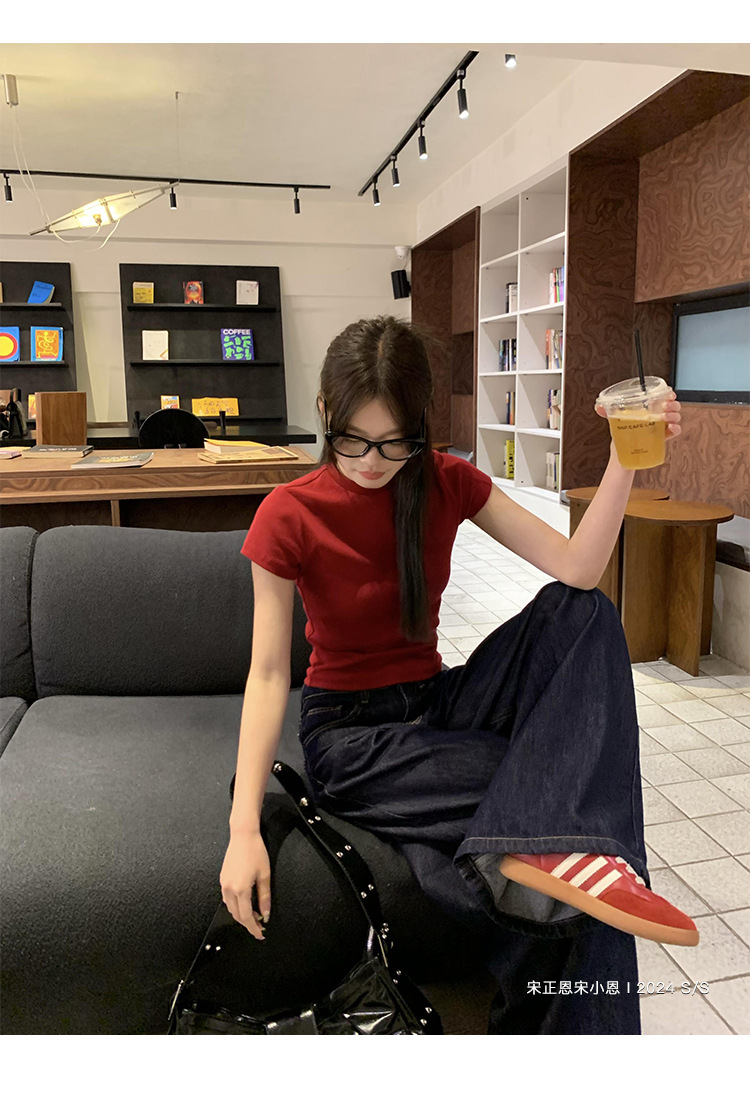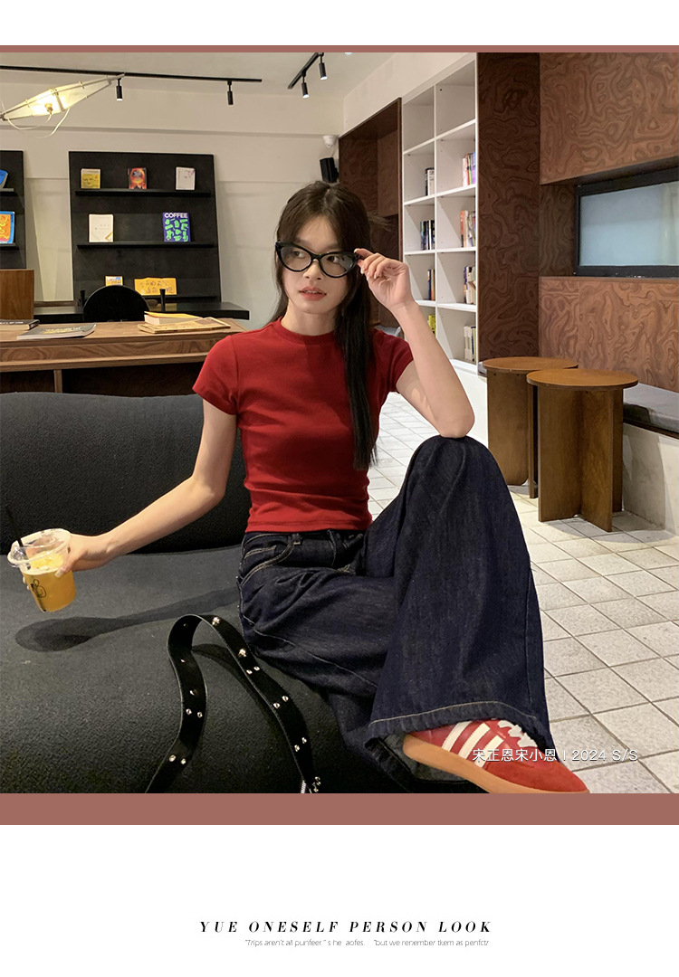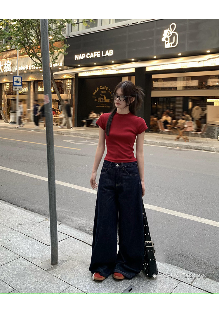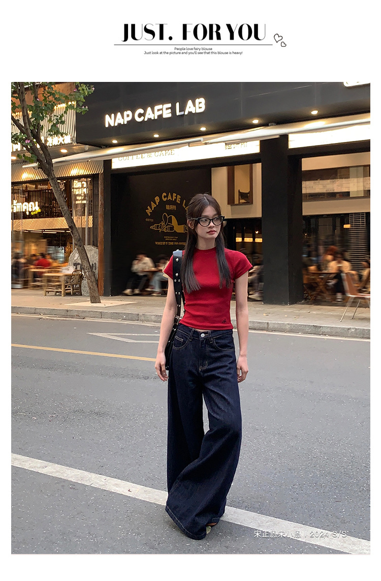 여성을 위한 데님 블루 스트레이트 청바지 봄, 가을 새로운 스타일 루즈하고 다재다능한 캐주얼 와이드 레그 복고풍 바닥 길이 바지 여성용 트렌디