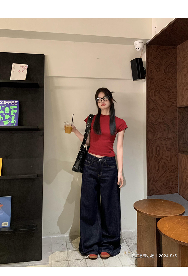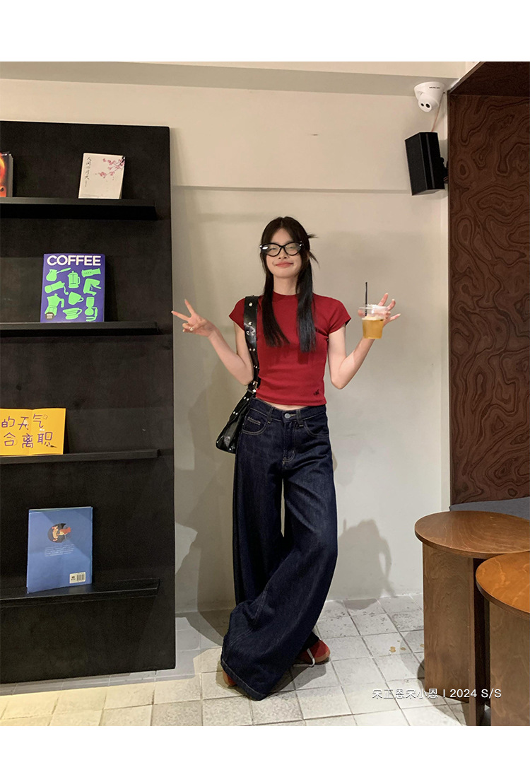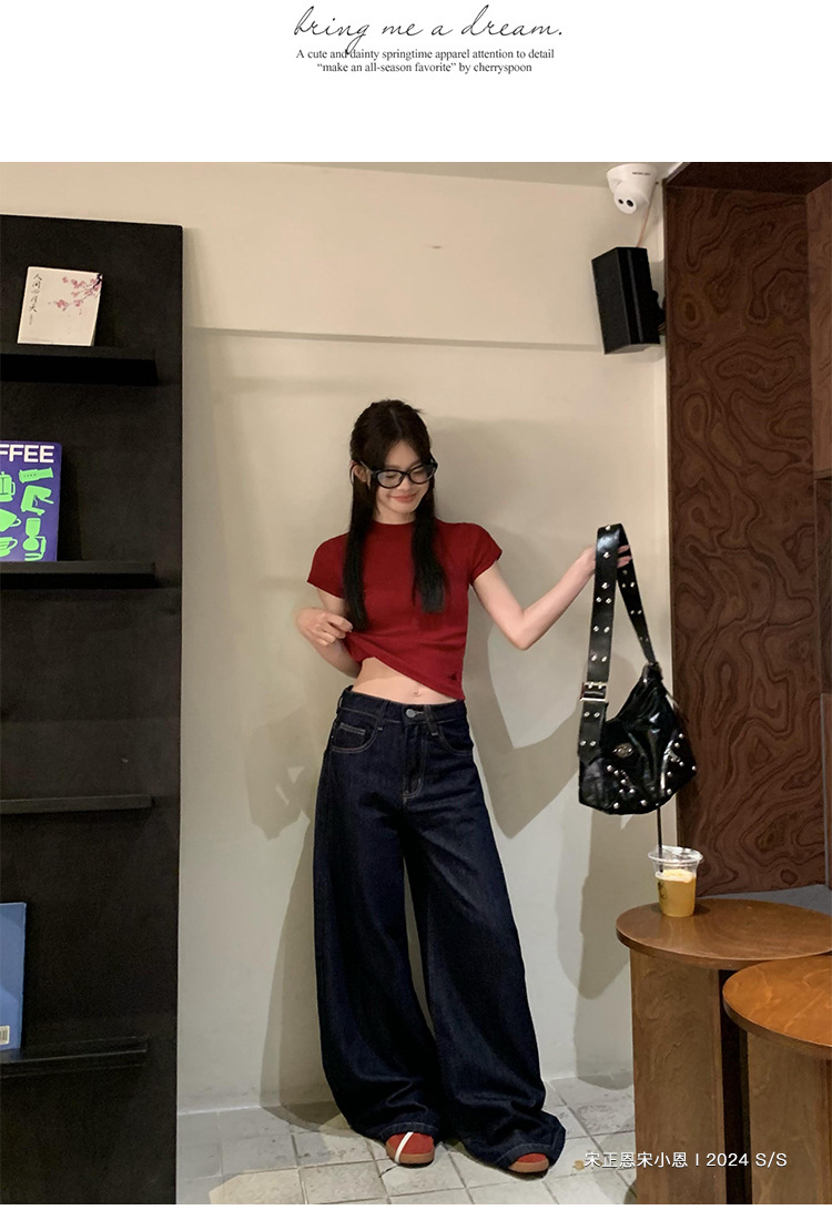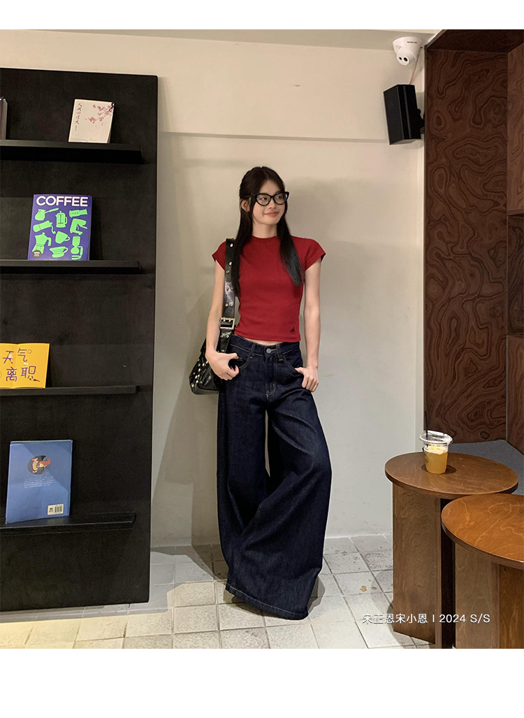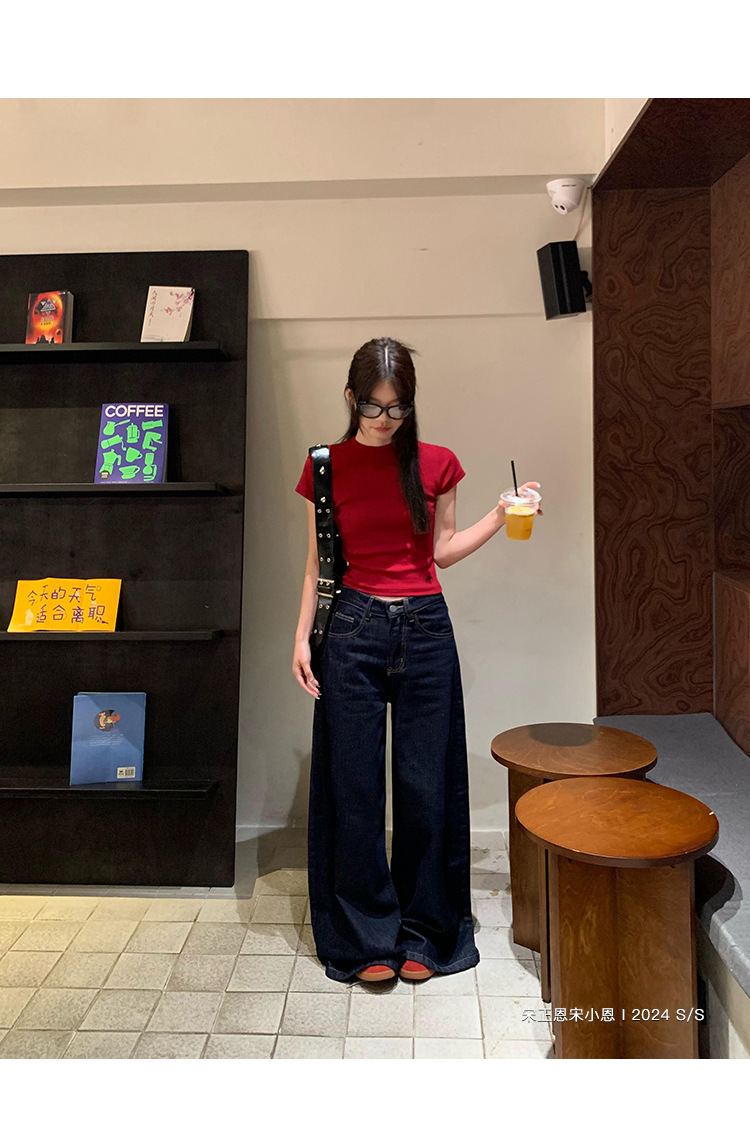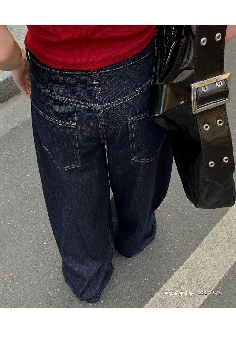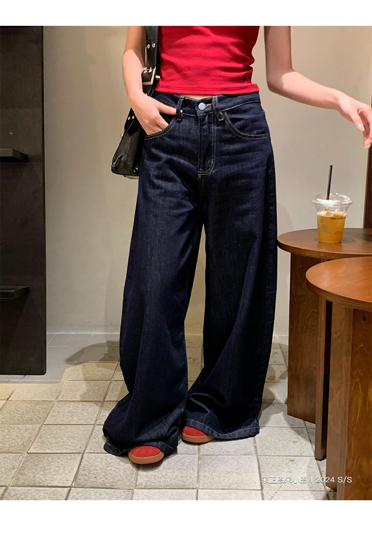 여성을 위한 데님 블루 스트레이트 청바지 봄, 가을 새로운 스타일 루즈하고 다재다능한 캐주얼 와이드 레그 복고풍 바닥 길이 바지 여성용 트렌디스토어 가기
