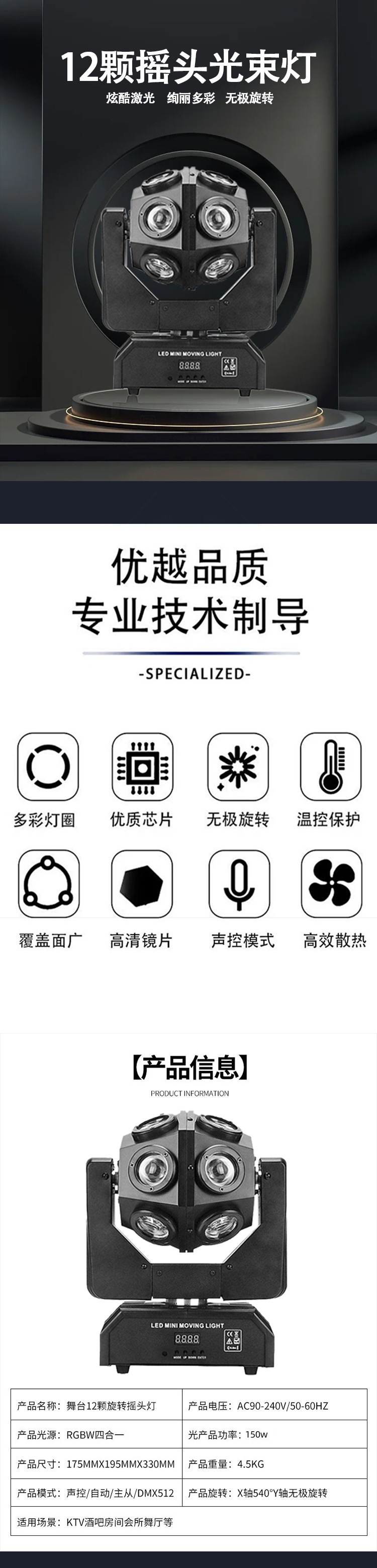 12개의 진동 빔 라이트, 롤링 볼 라이트, 회전식 음성 제어 바, KTV 플래시 디스코 라이트, LED 매직 볼 라이트