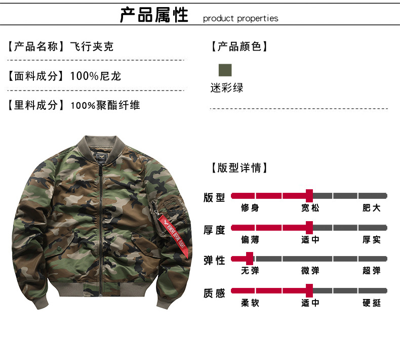 가을 겨울 위장무늬 재킷 생방송 직판【패딩/얇은】공군 MA1 파일럿 재킷 남성용 야외 활동용스토어 가기