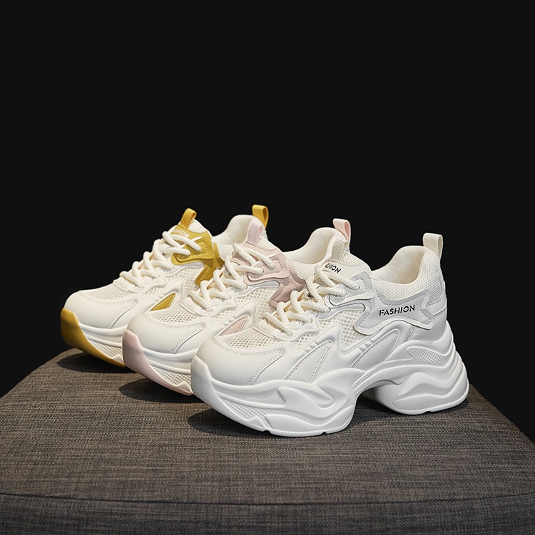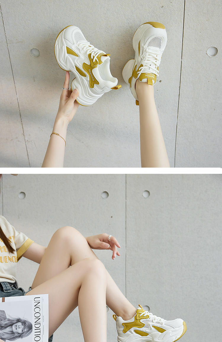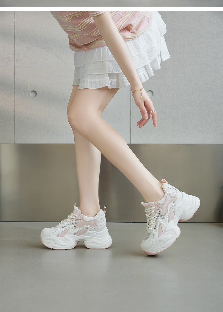 여성용 메쉬 아빠 신발 2025 여름 새로운 스타일 작은 키가 큰 여성 신발 캐주얼 웨지 플랫폼 두꺼운 밑창 메쉬 신발스토어 가기