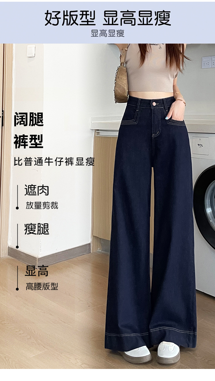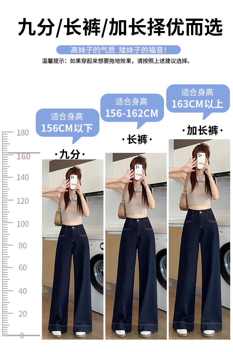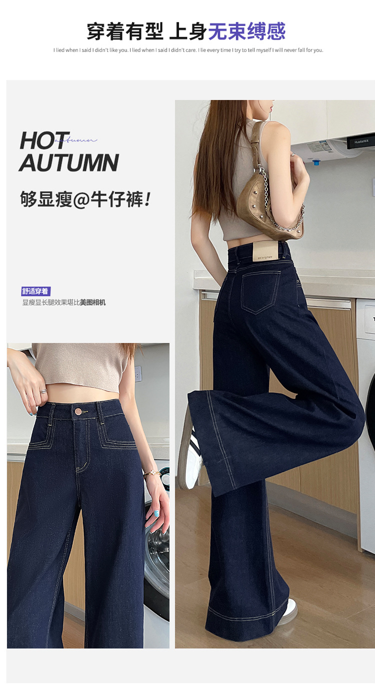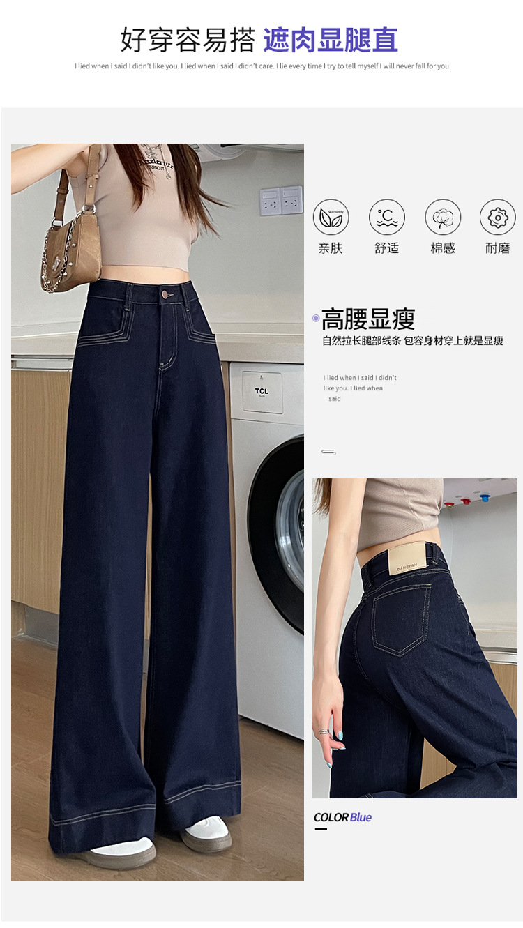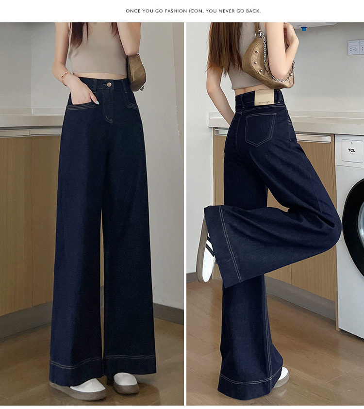 데님 블루 스트레이트 레그 청바지 여성용 봄/가을 2026 신상 하이웨이스트 루즈핏 스트레치 롱 와이드 팬츠 여성용 겨울스토어 가기