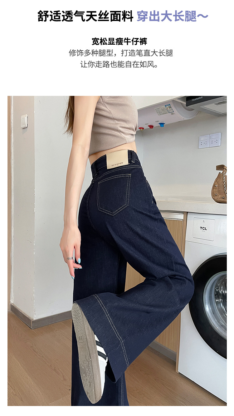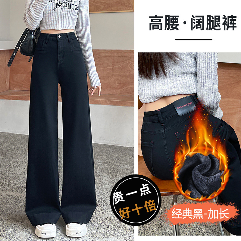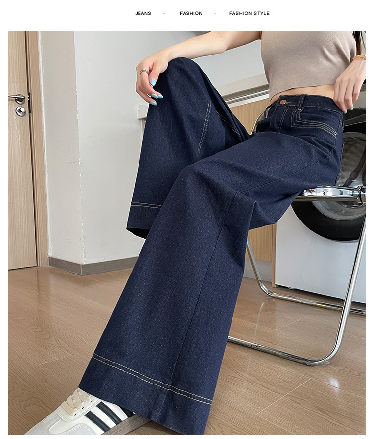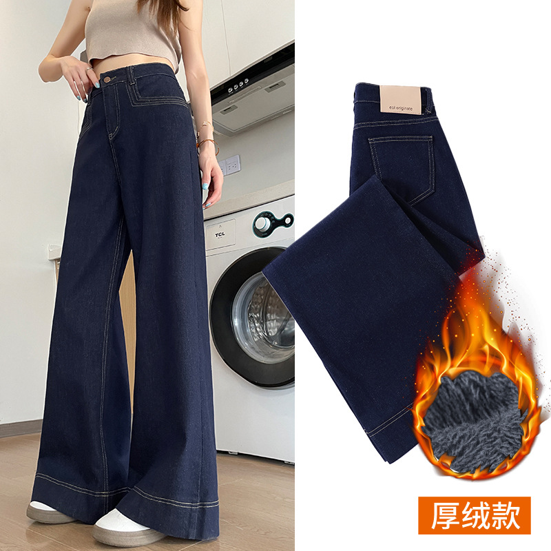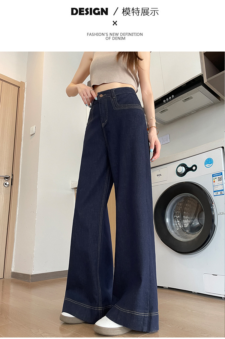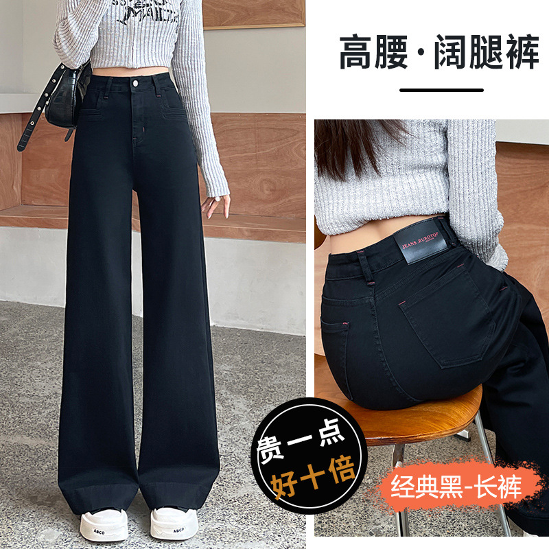 데님 블루 스트레이트 레그 청바지 여성용 봄/가을 2026 신상 하이웨이스트 루즈핏 스트레치 롱 와이드 팬츠 여성용 겨울스토어 가기