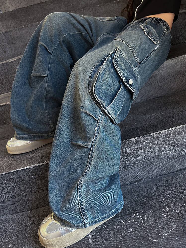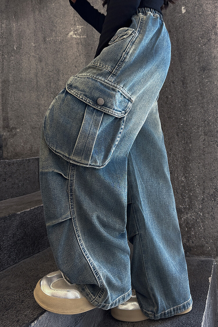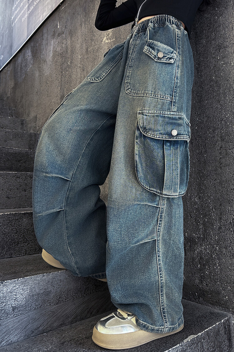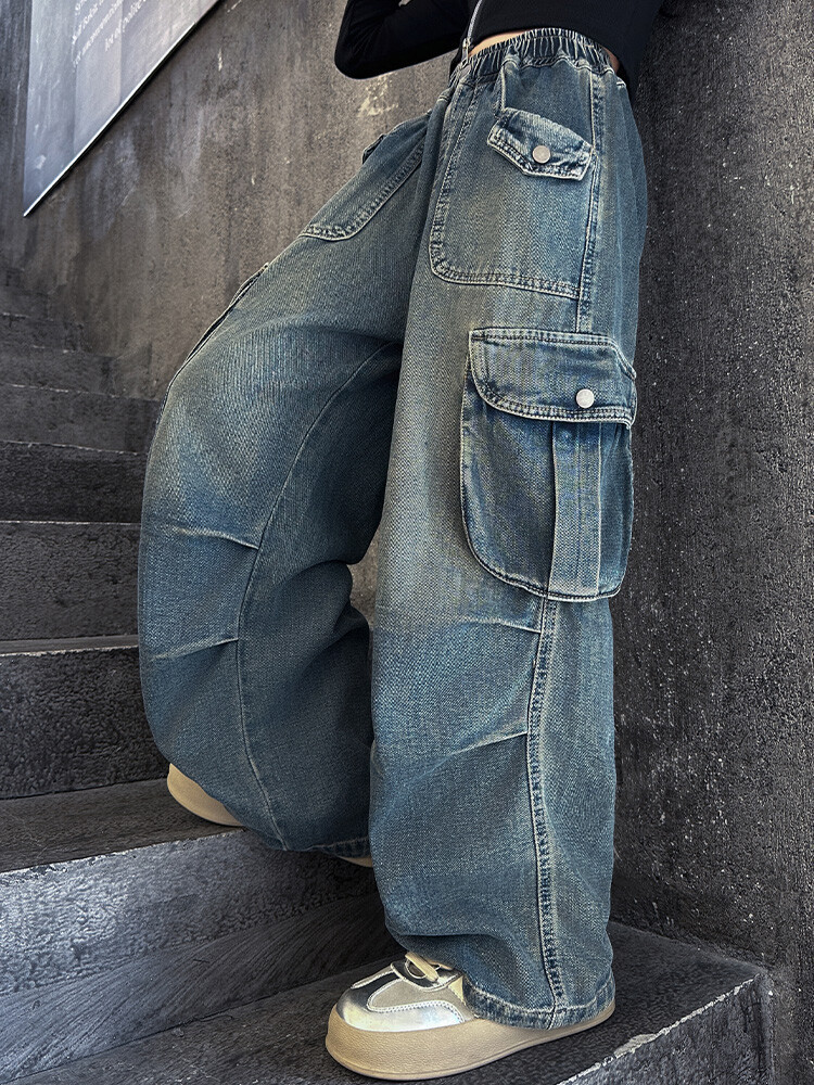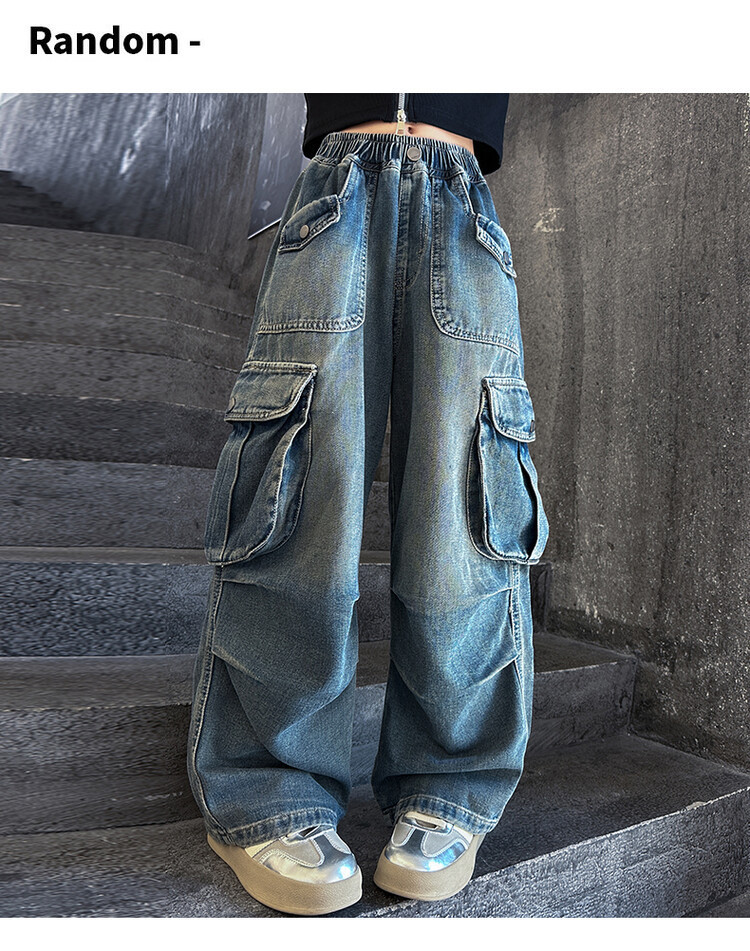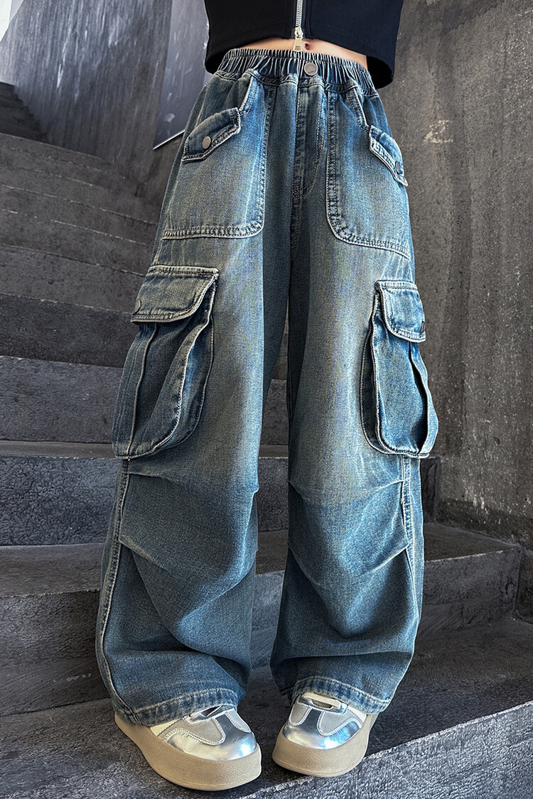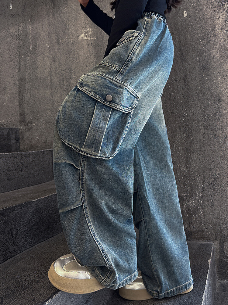 2025년 봄 가을 여아용 크로스보더 데님 팬츠, 중대형 아동용 트렌디하고 멋진 스트릿 댄스 바지, 여아용 와이드 팬츠 도매스토어 가기