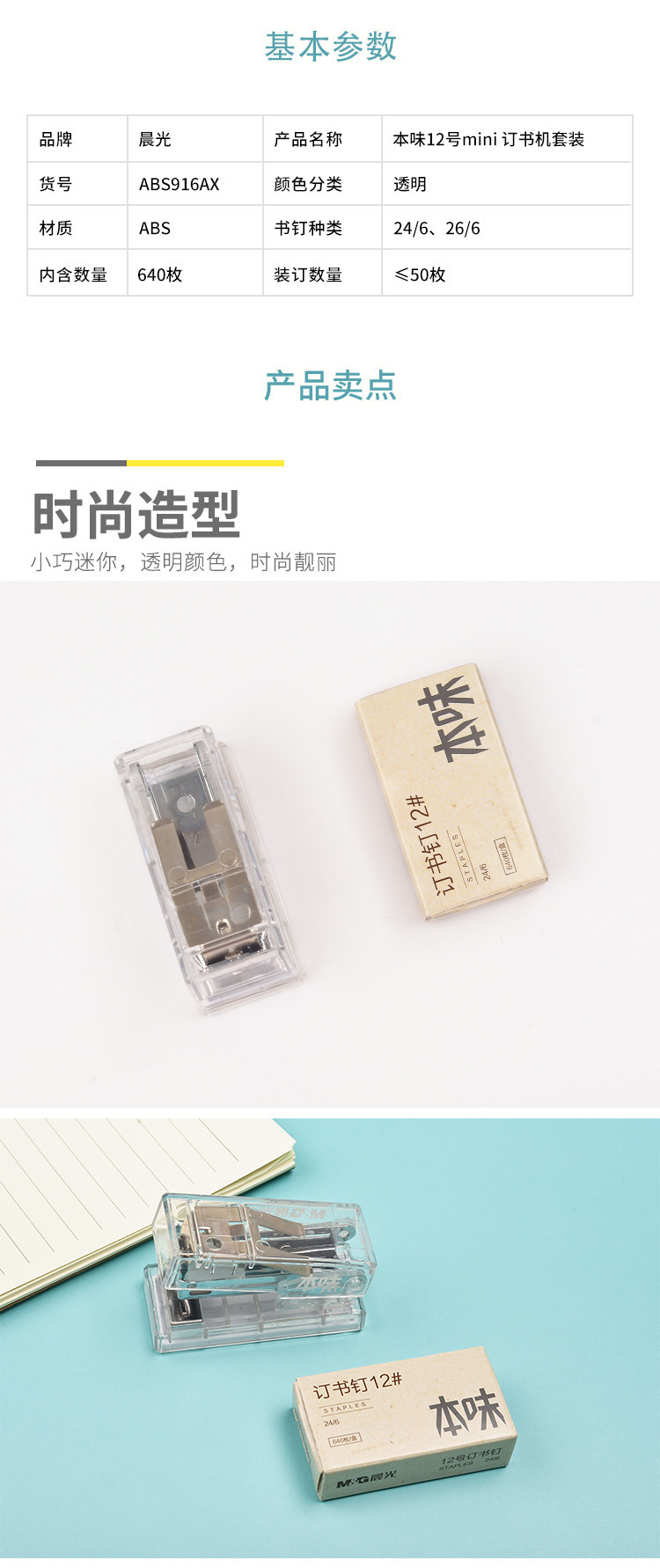 Chenguang 12 스테이플러 ABS916AX 미니 미니 오피스 스테이플러 간단한 20 페이지