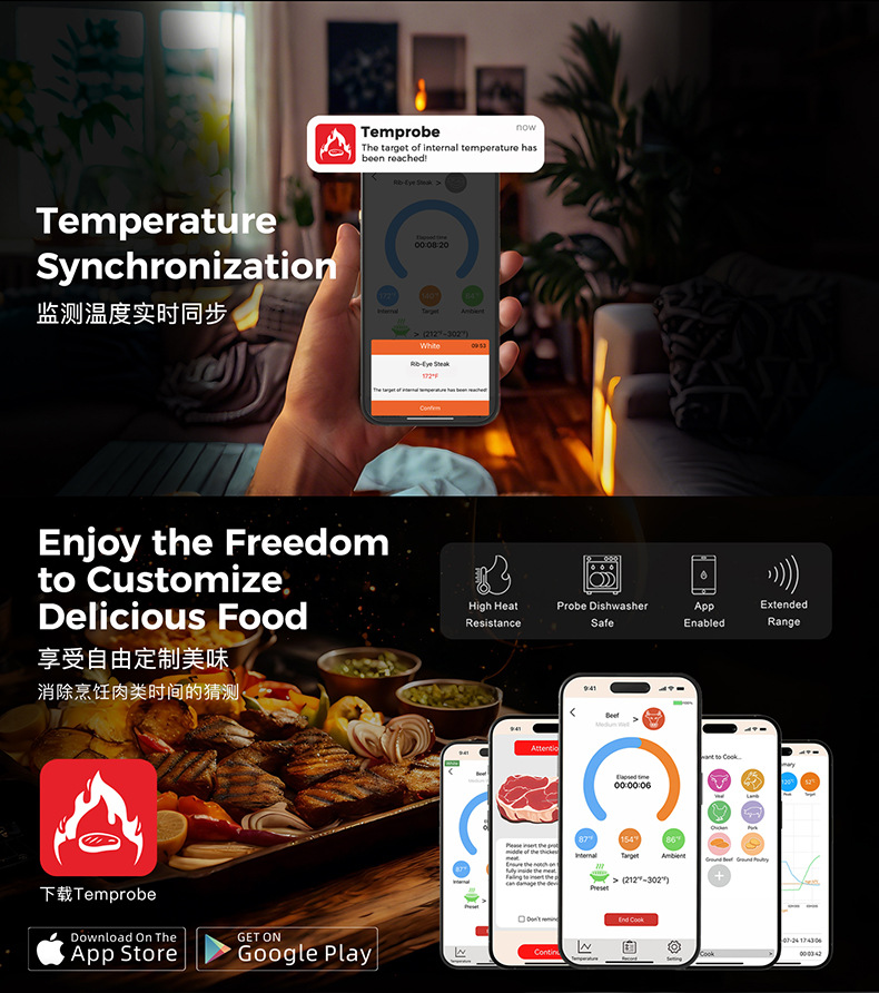 새로운 블루투스 바베큐 온도계 스마트 앱 디지털 온도계 주방 음식 전자 온도계스토어 가기