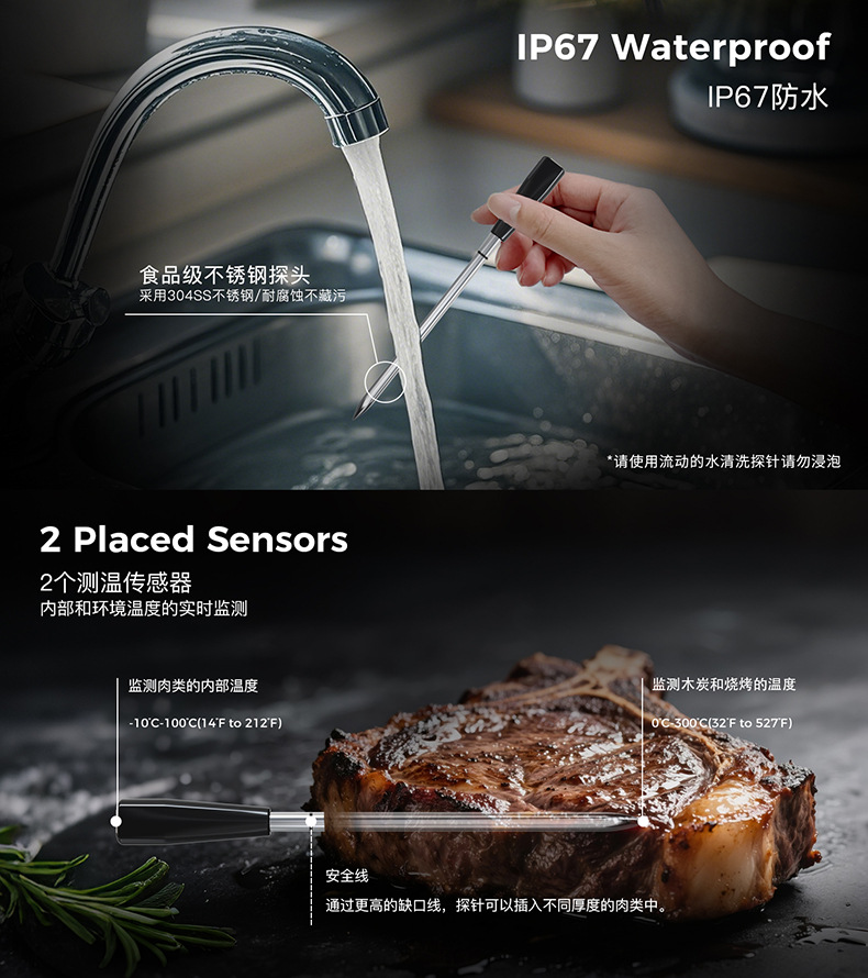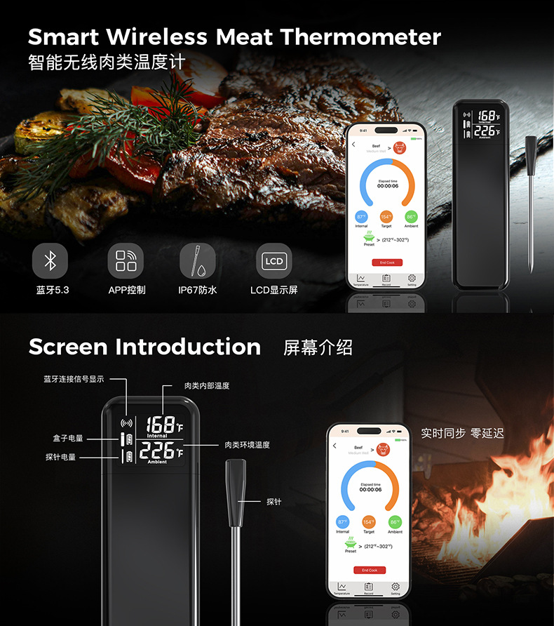 새로운 블루투스 바베큐 온도계 스마트 앱 디지털 온도계 주방 음식 전자 온도계