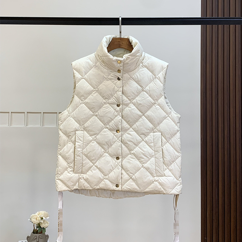 최대 여자 겨울 화이트 거위 아래로 마름모 칼라 재킷 민소매 스웨터 리본 짧은 봄과 가을 여자 조끼 재킷