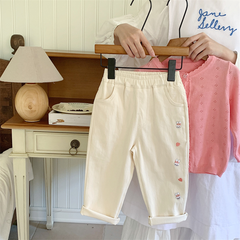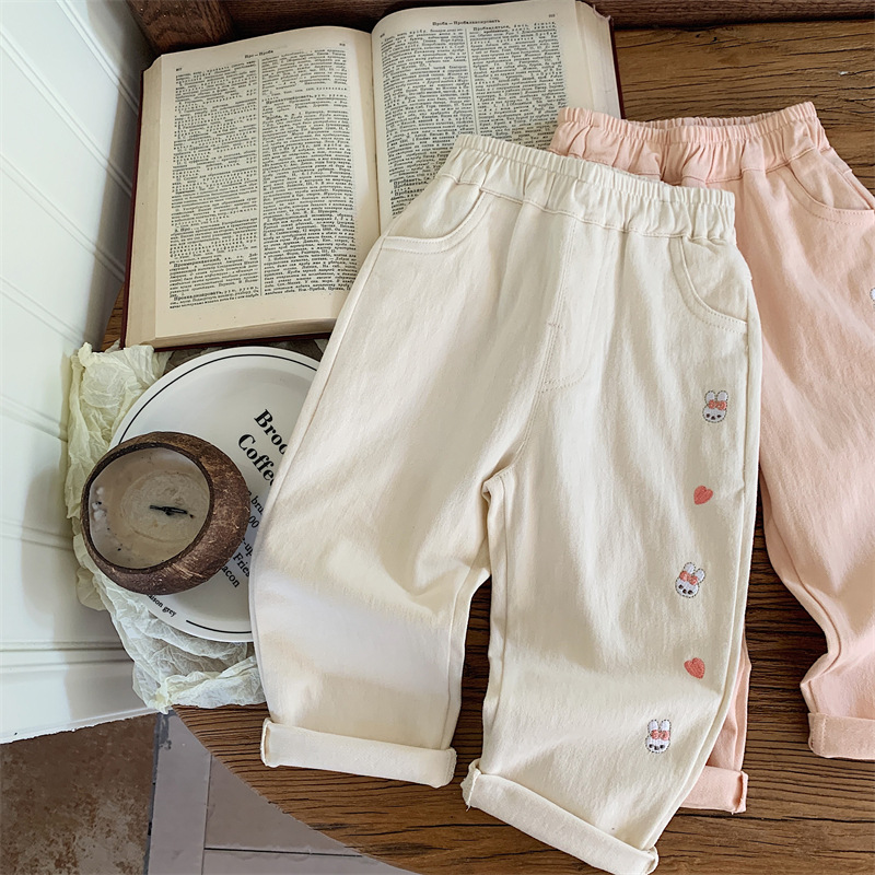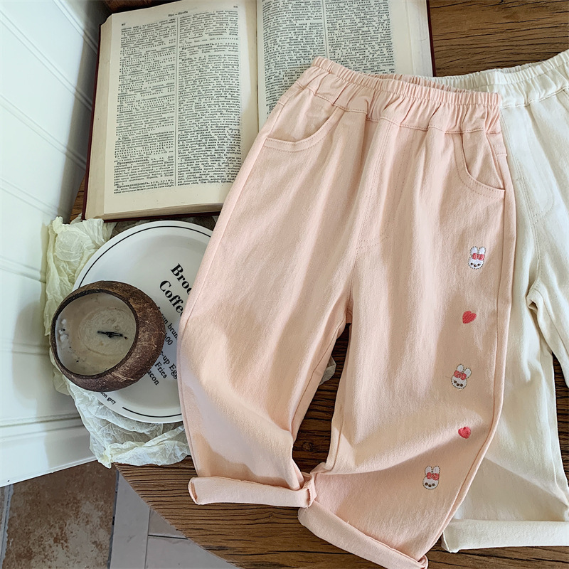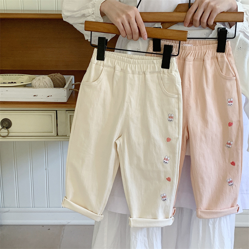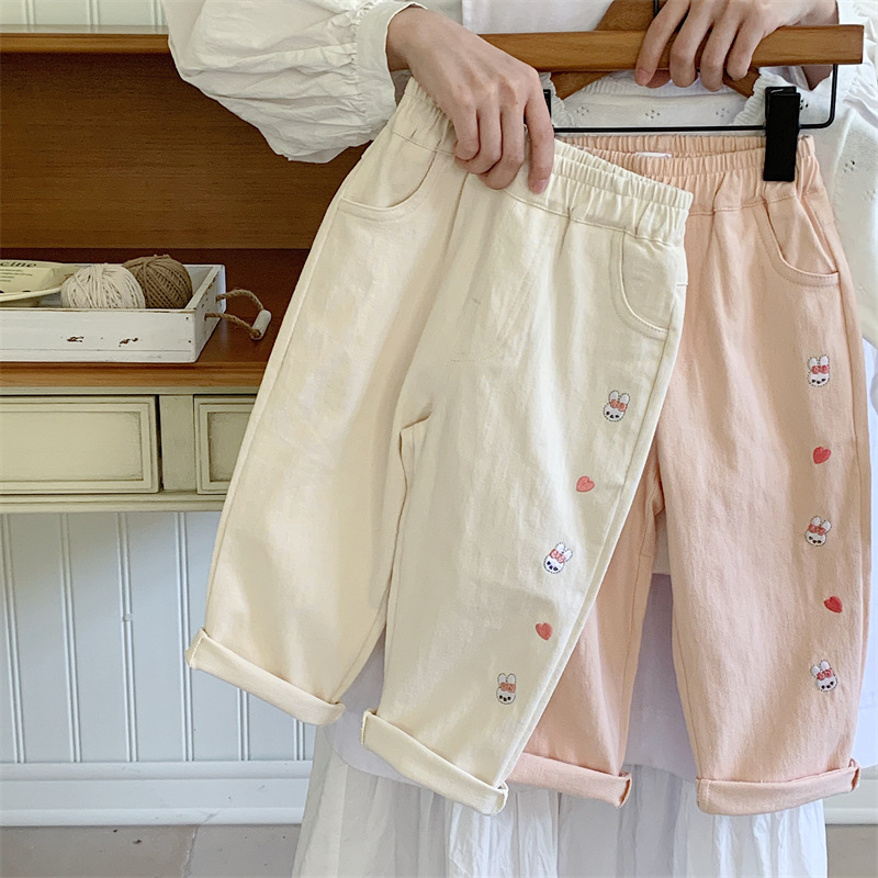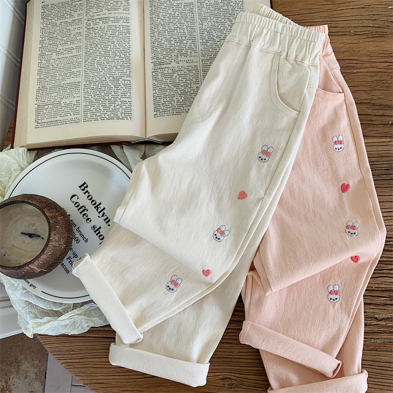 [핑크 하우스] 얇은 귀여운 바지 큰엉덩이 소녀 토끼 사랑 자수 캐주얼 하렘 바지 바지스토어 가기