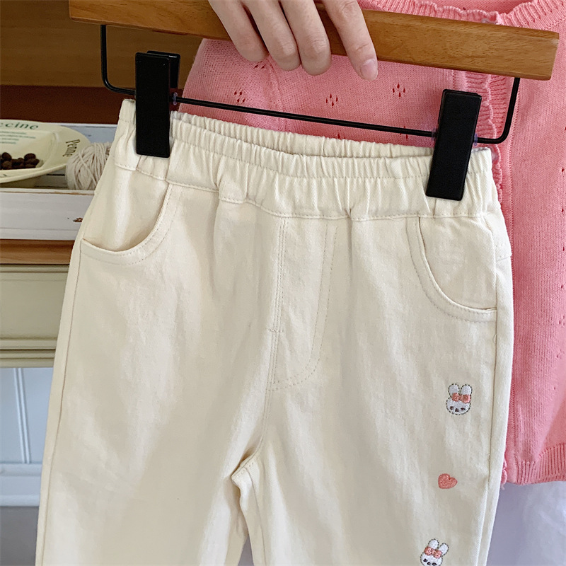 [핑크 하우스] 얇은 귀여운 바지 큰엉덩이 소녀 토끼 사랑 자수 캐주얼 하렘 바지 바지