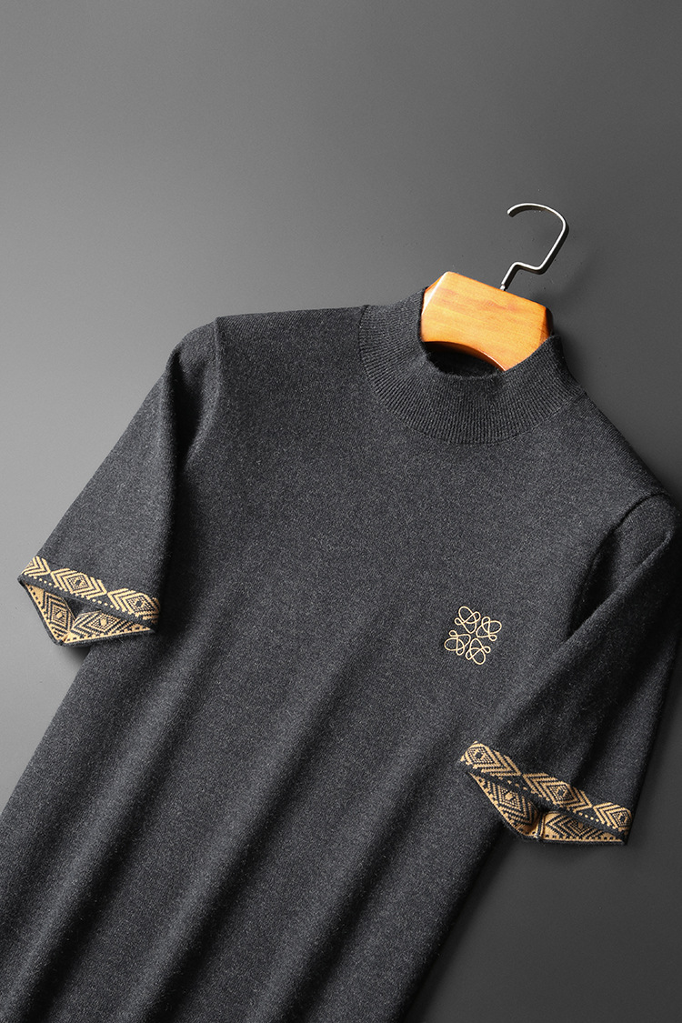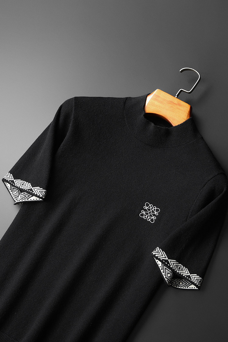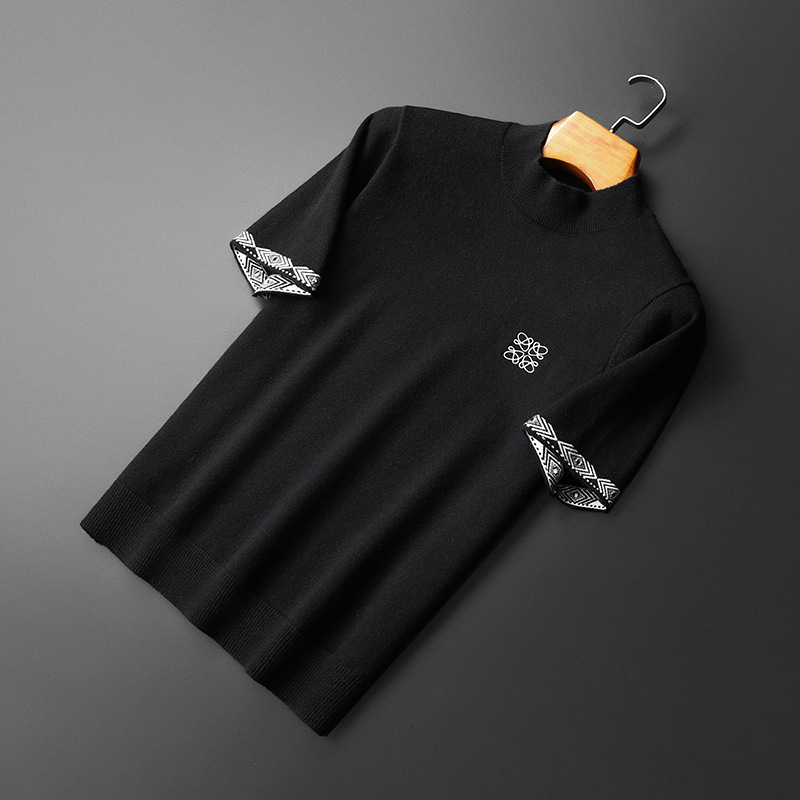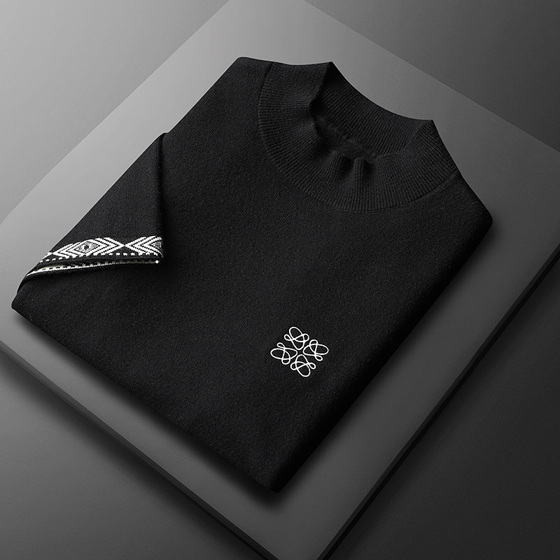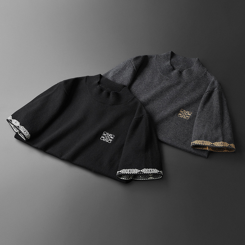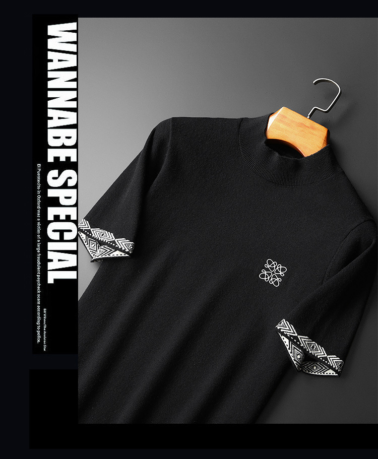 유럽 역 2024 새로운 가을과 겨울 남자 자수 모직 스웨터 라운드 넥 하프 슬리브 두꺼운 스웨터 니트 보텀링