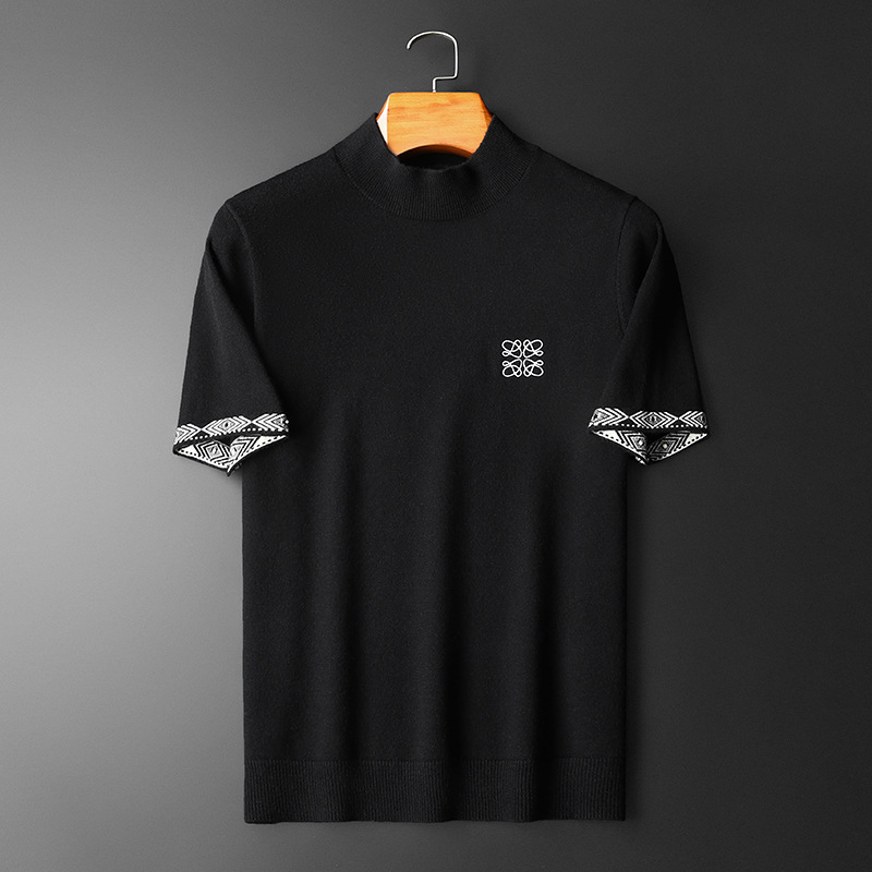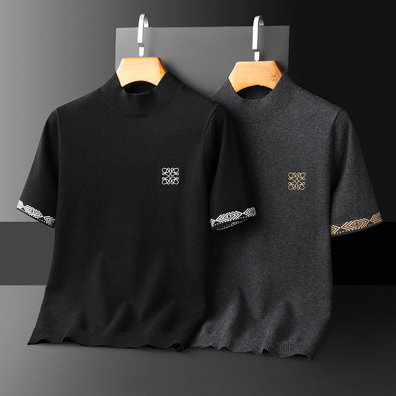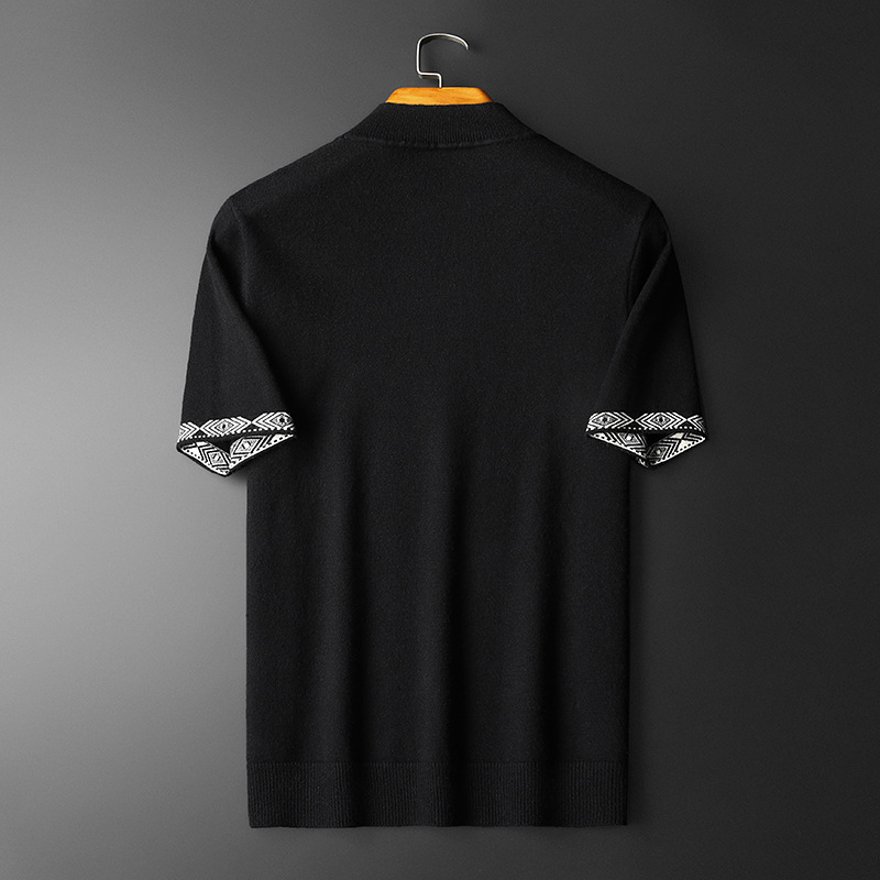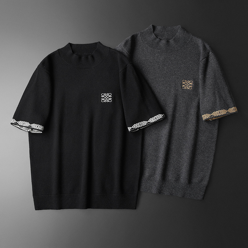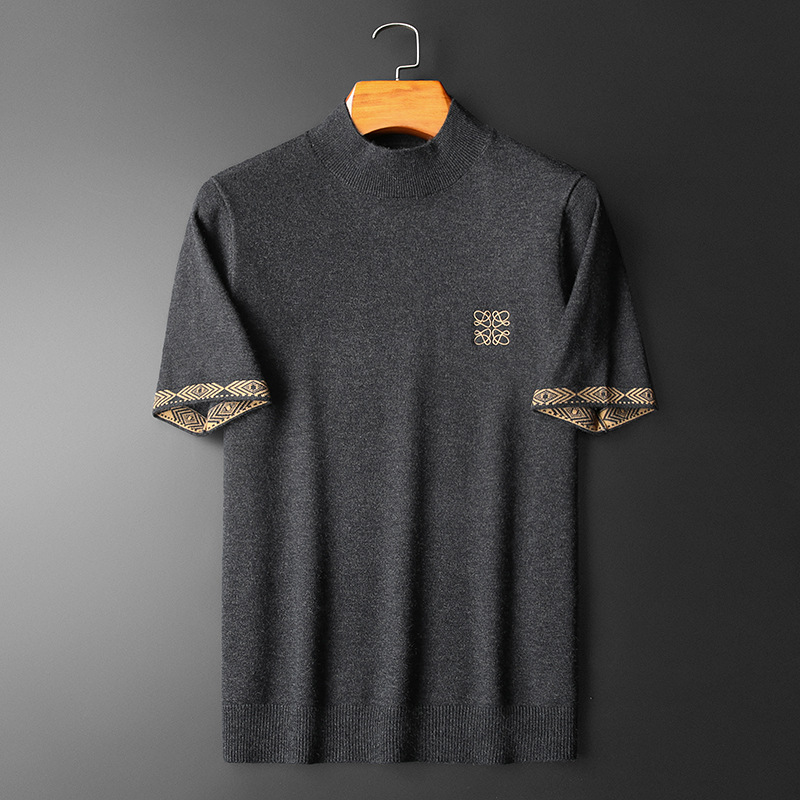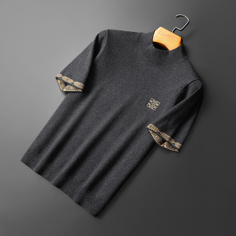 유럽 역 2024 새로운 가을과 겨울 남자 자수 모직 스웨터 라운드 넥 하프 슬리브 두꺼운 스웨터 니트 보텀링