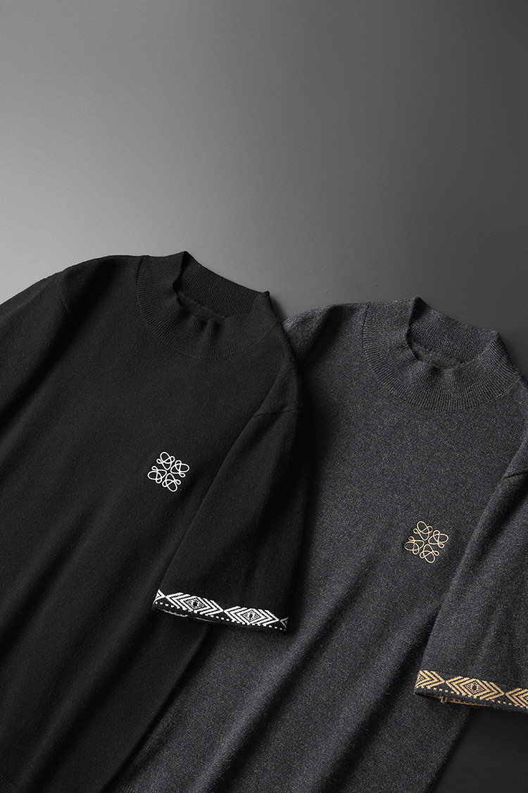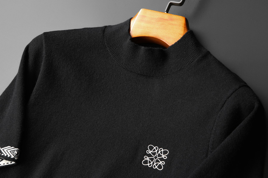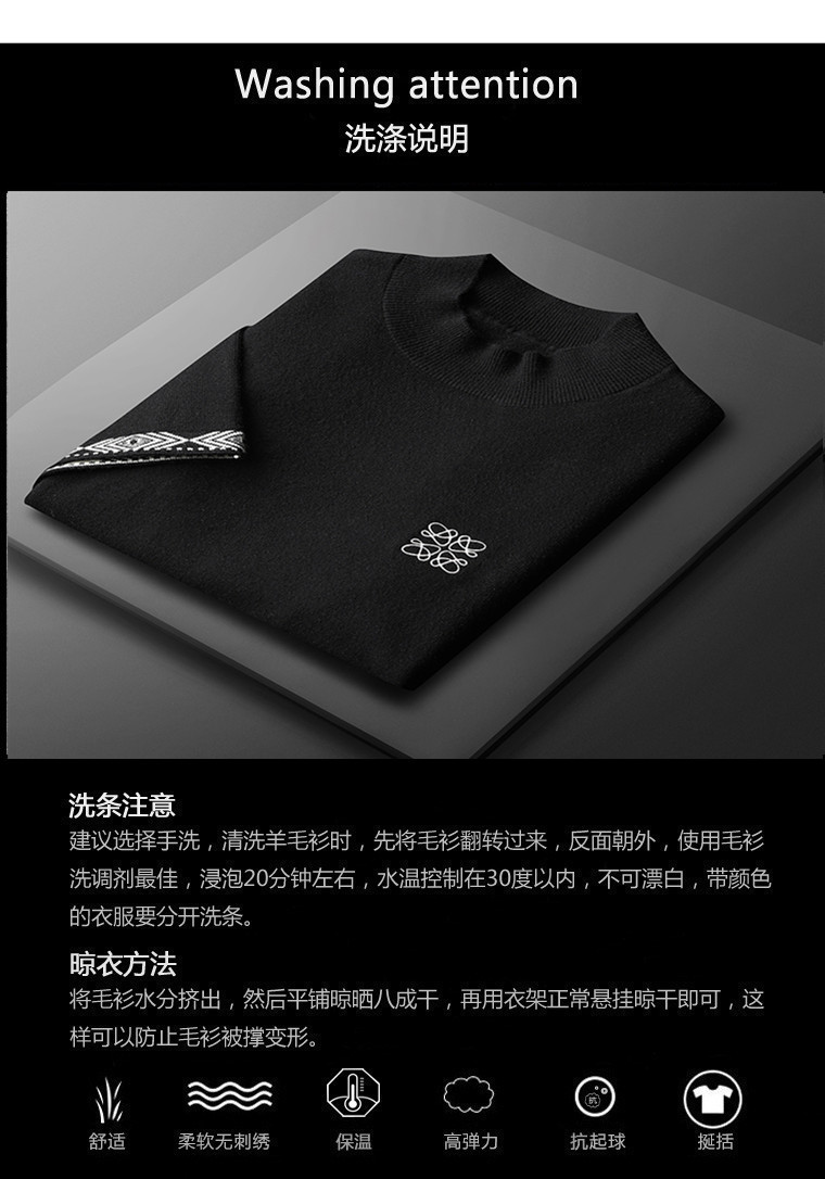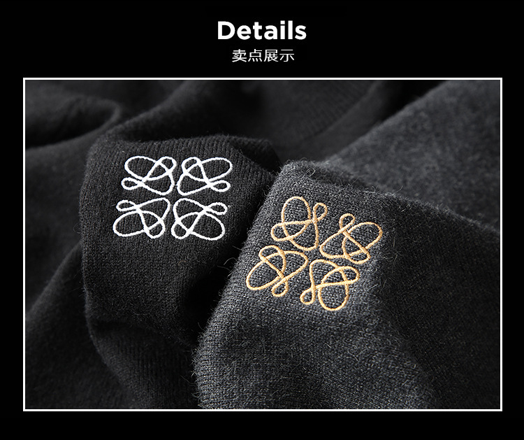 유럽 역 2024 새로운 가을과 겨울 남자 자수 모직 스웨터 라운드 넥 하프 슬리브 두꺼운 스웨터 니트 보텀링스토어 가기