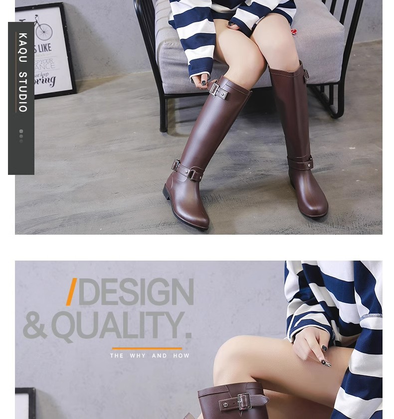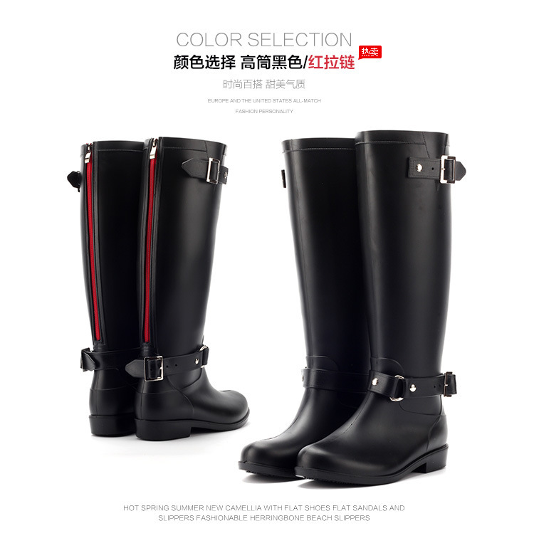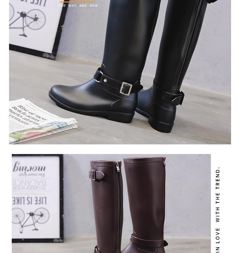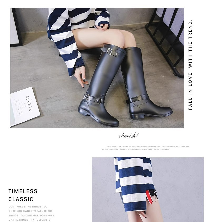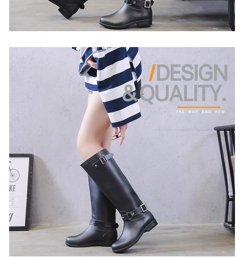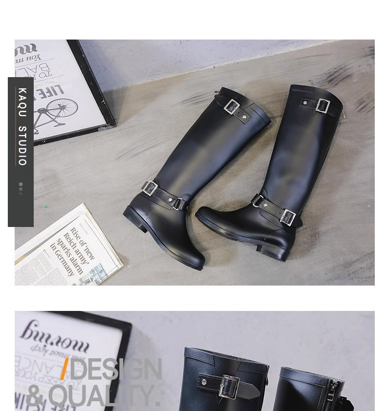 증가 된 슬림 룩 오토바이 부츠 여성 패션 장화 긴 튜브 물 신발 방수 미끄럼 방지 하이 비 신발 영국 스타일 마틴 부츠