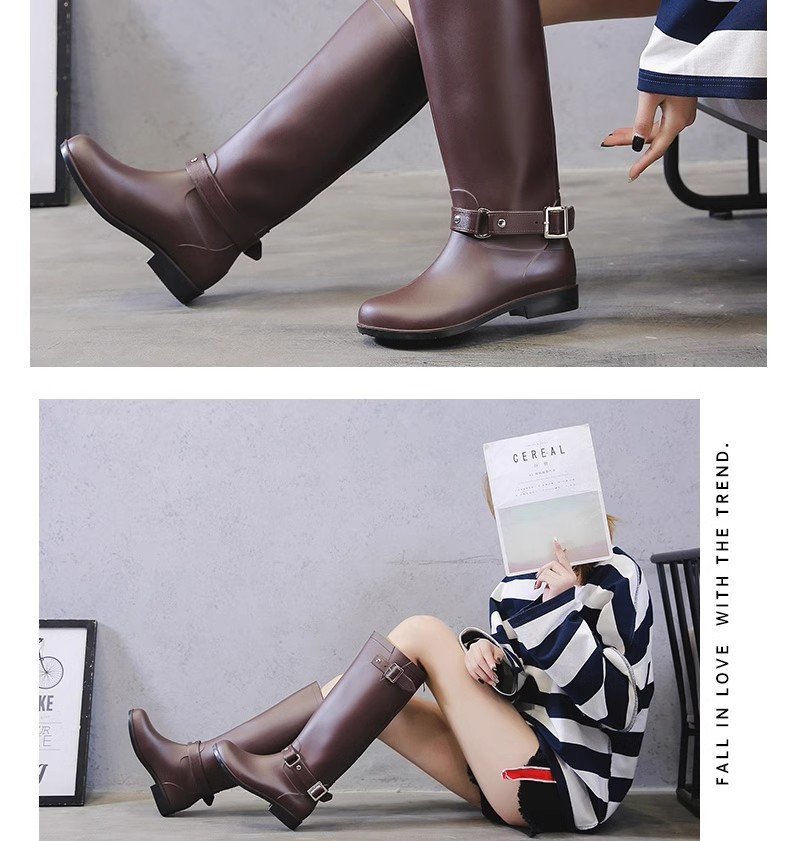 증가 된 슬림 룩 오토바이 부츠 여성 패션 장화 긴 튜브 물 신발 방수 미끄럼 방지 하이 비 신발 영국 스타일 마틴 부츠스토어 가기