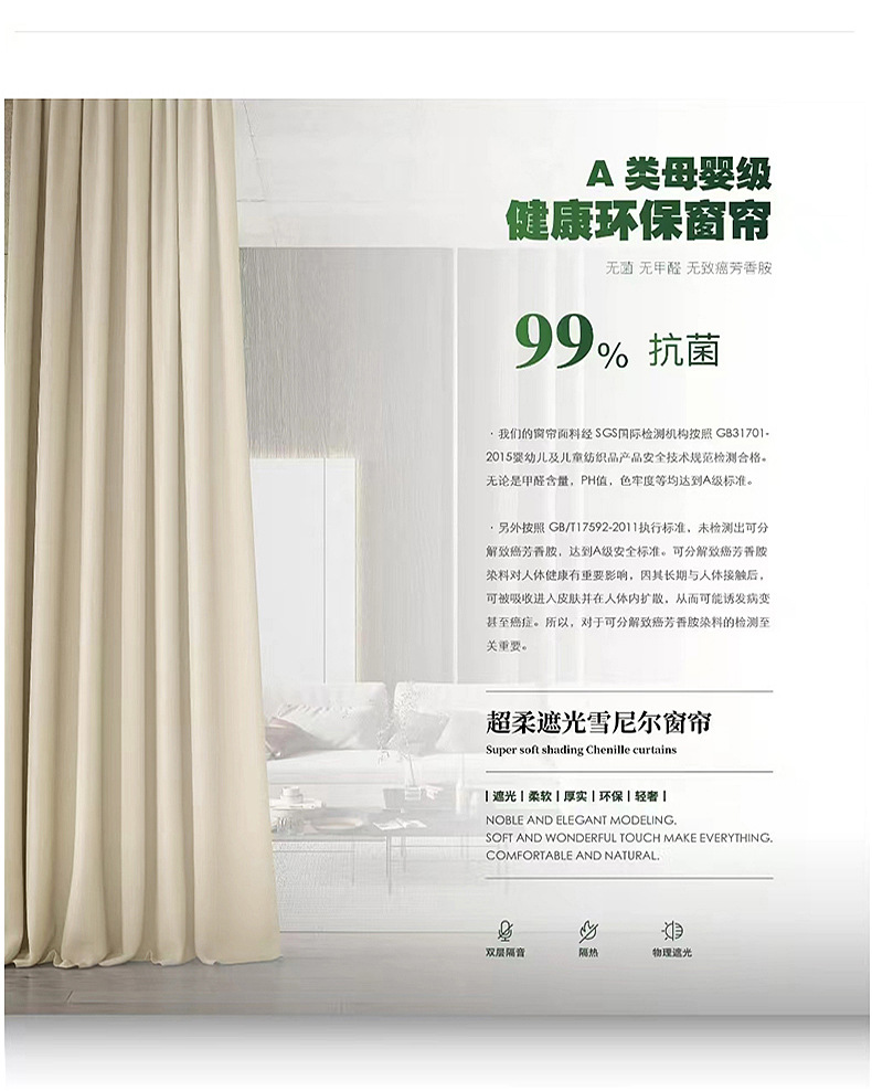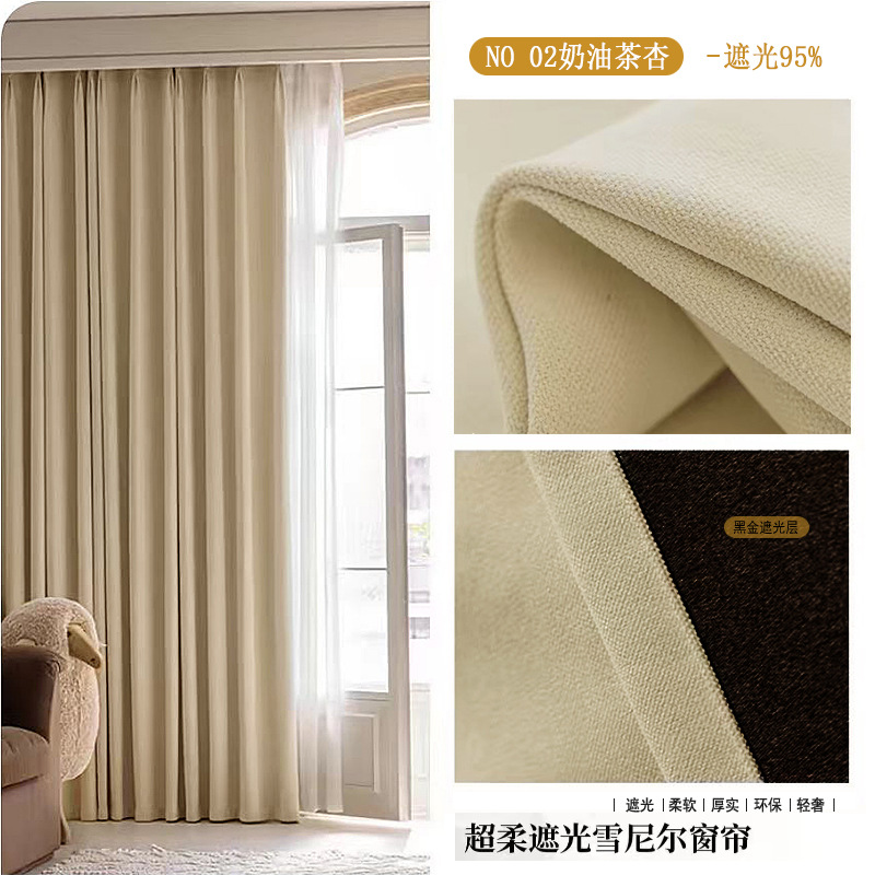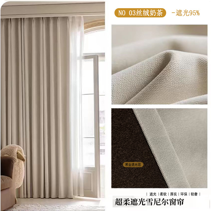 모성 및 유아 등급 슈퍼 소프트 하이 쉐이딩 체닐 커튼 두껍게 빛 럭셔리 크림 스타일 쉐오싱 Keqiao 단열 커튼 완료