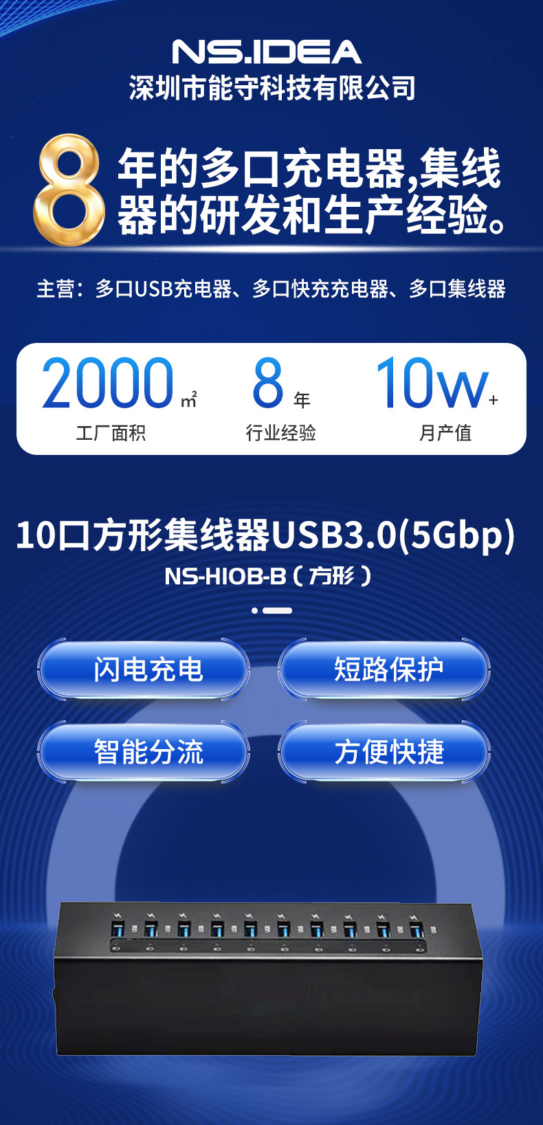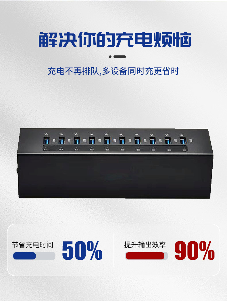 10 포트 스퀘어 허브 USB3.0 전원 공급 장치 멀티 인터페이스 5GPB 확장 휴대 전화 컴퓨터 멀티 포트 충전기