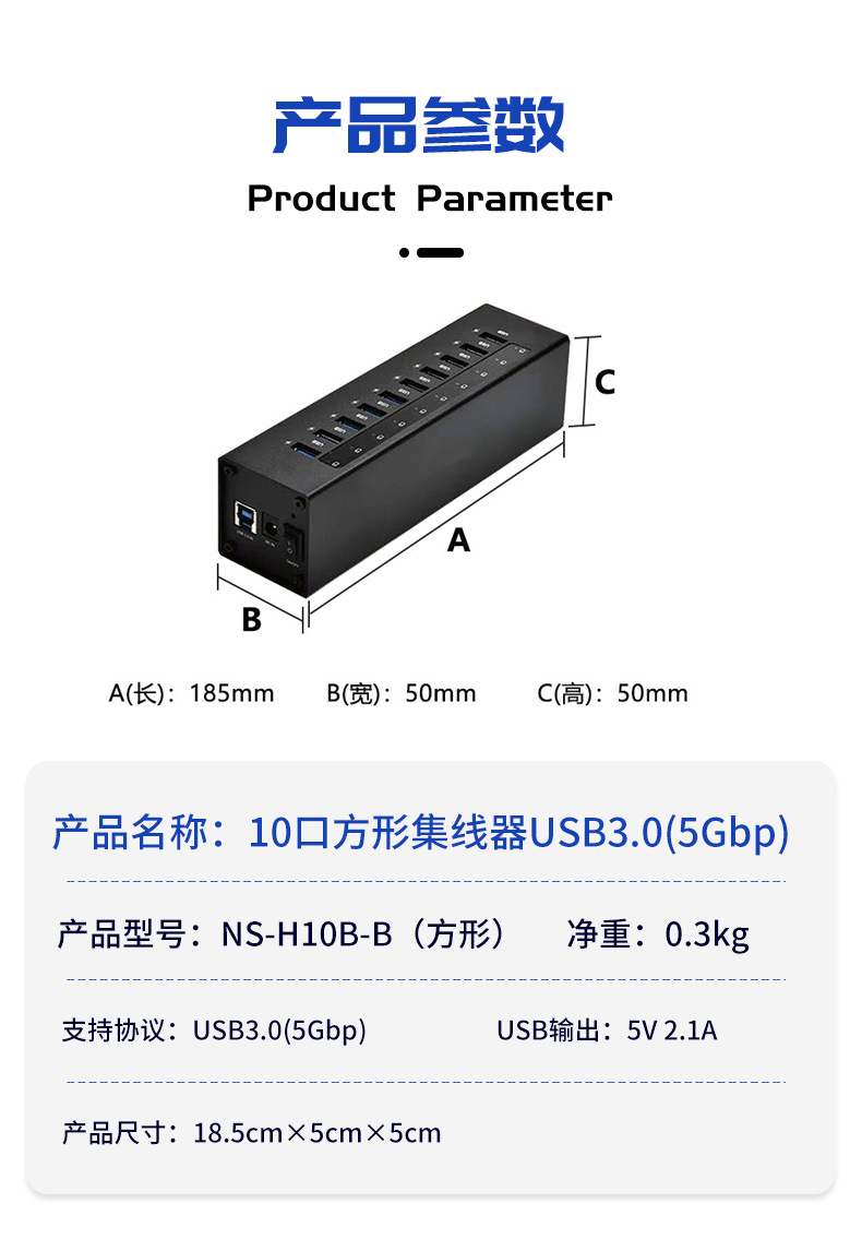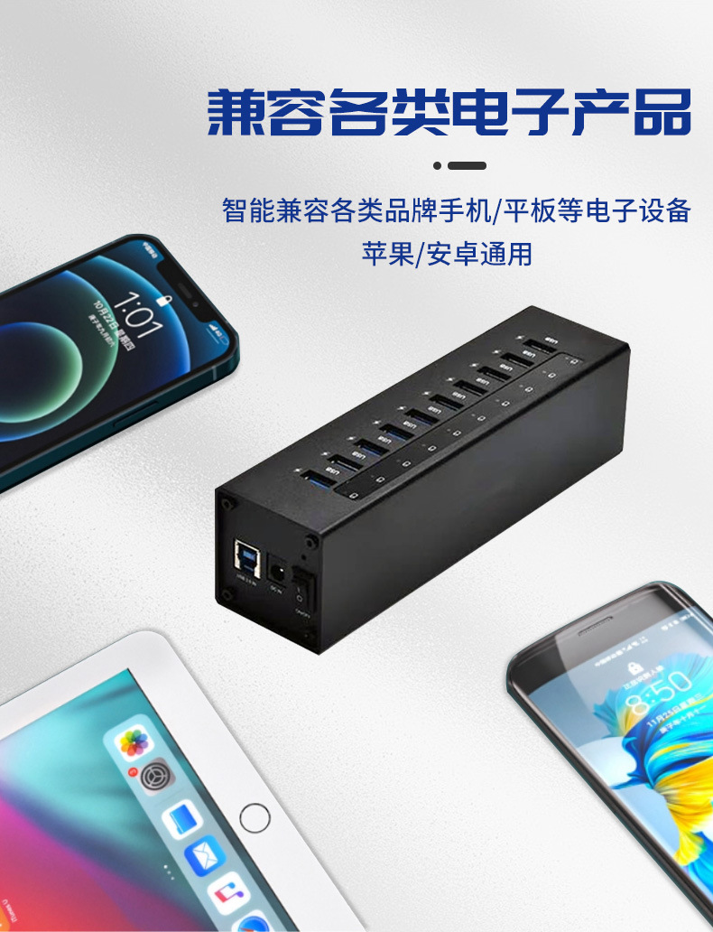 10 포트 스퀘어 허브 USB3.0 전원 공급 장치 멀티 인터페이스 5GPB 확장 휴대 전화 컴퓨터 멀티 포트 충전기스토어 가기
