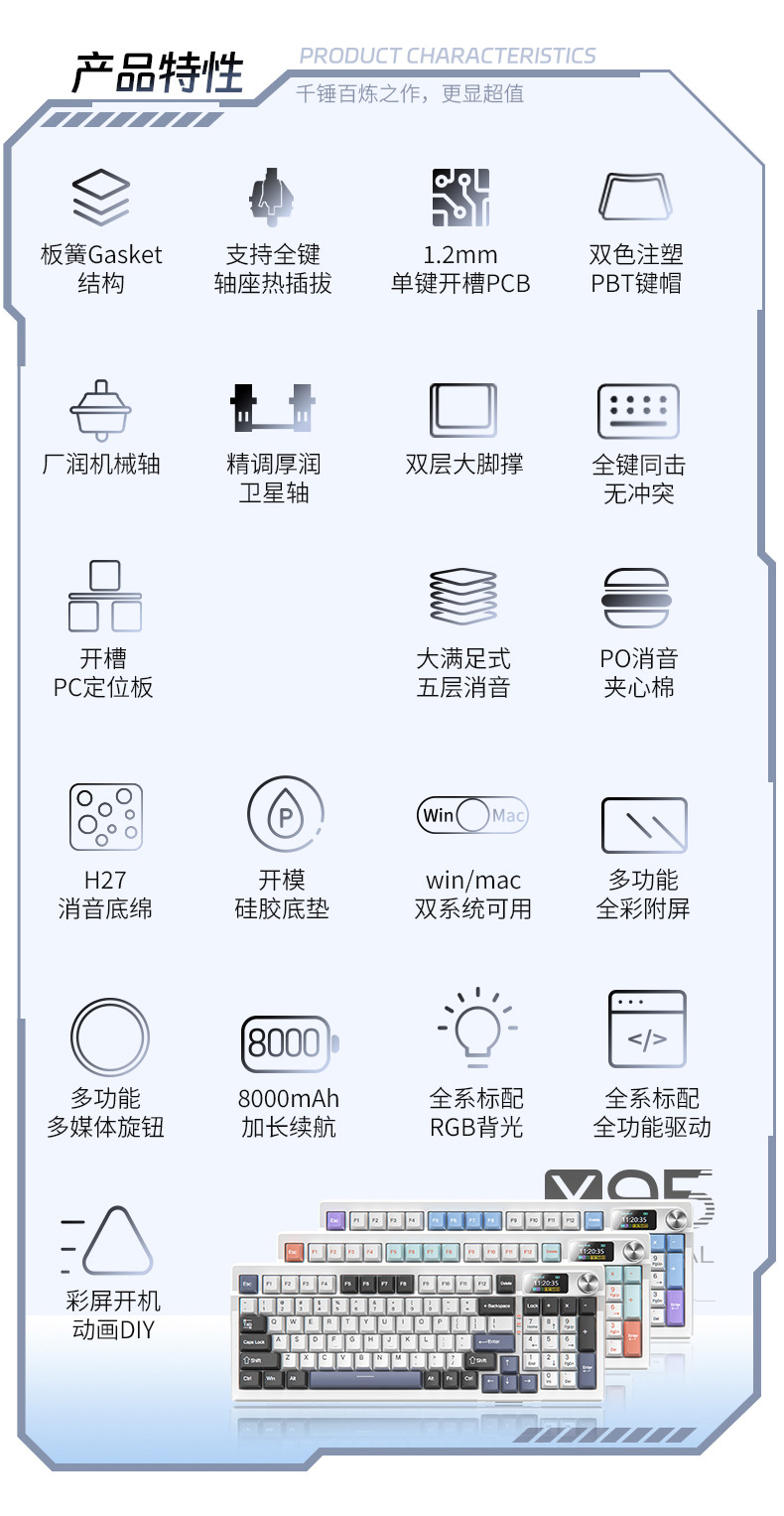 실버 조각 Y95 RGB 유선 게임 개스킷 키트와 맞춤형 무선 블루투스 3 모드 기계식 키보드 98